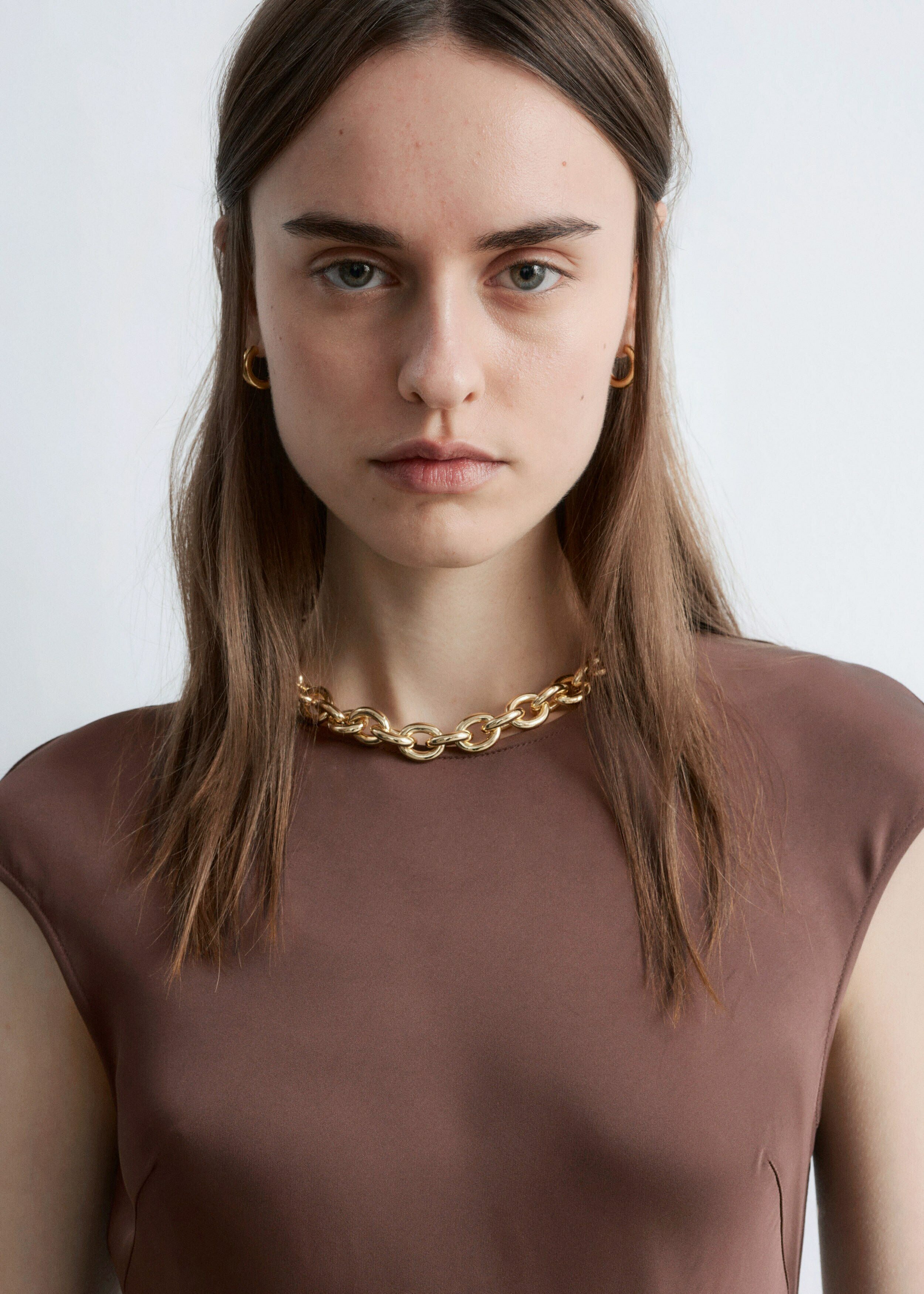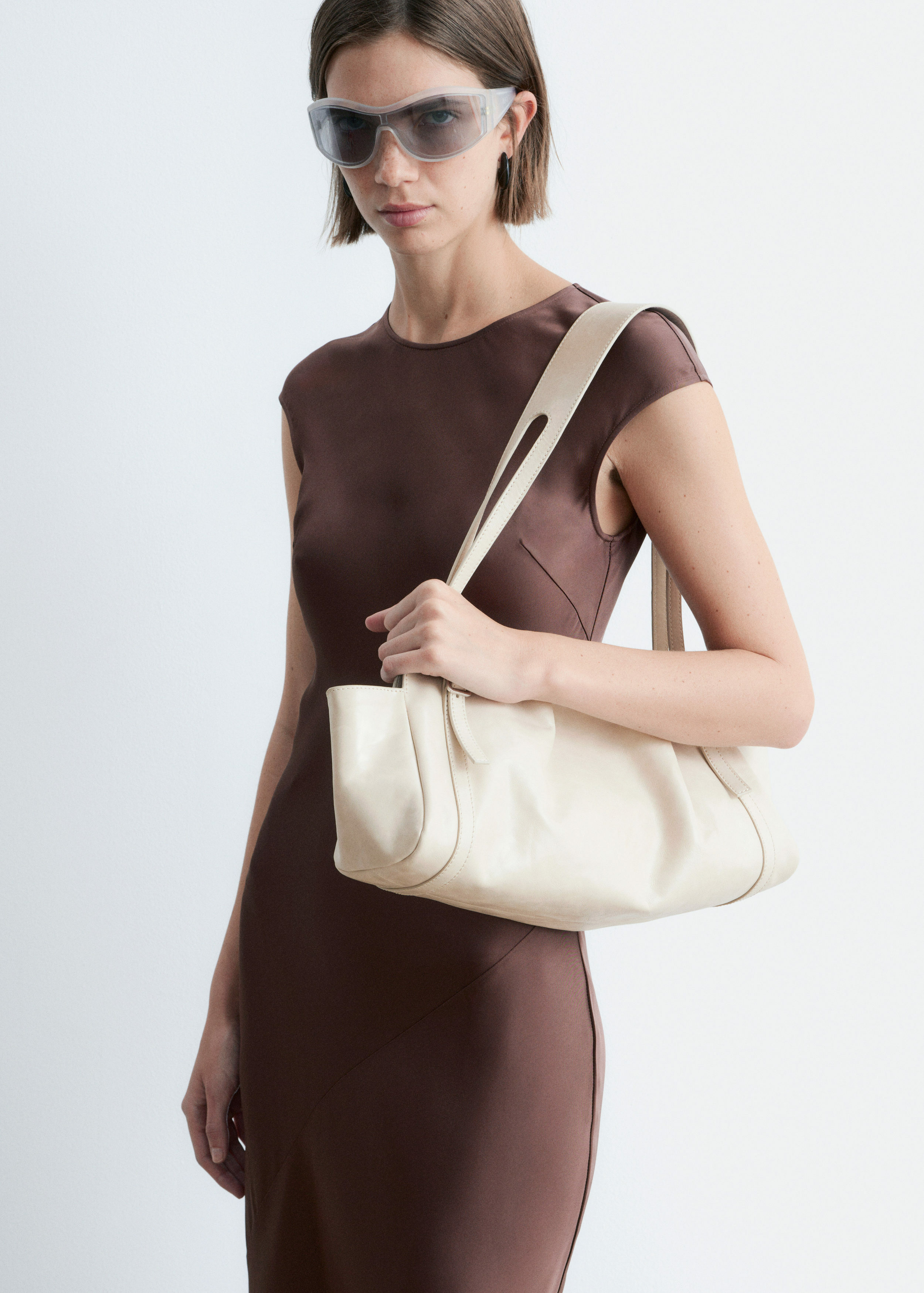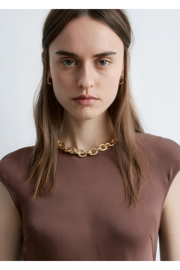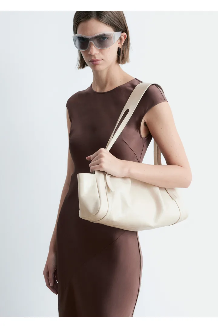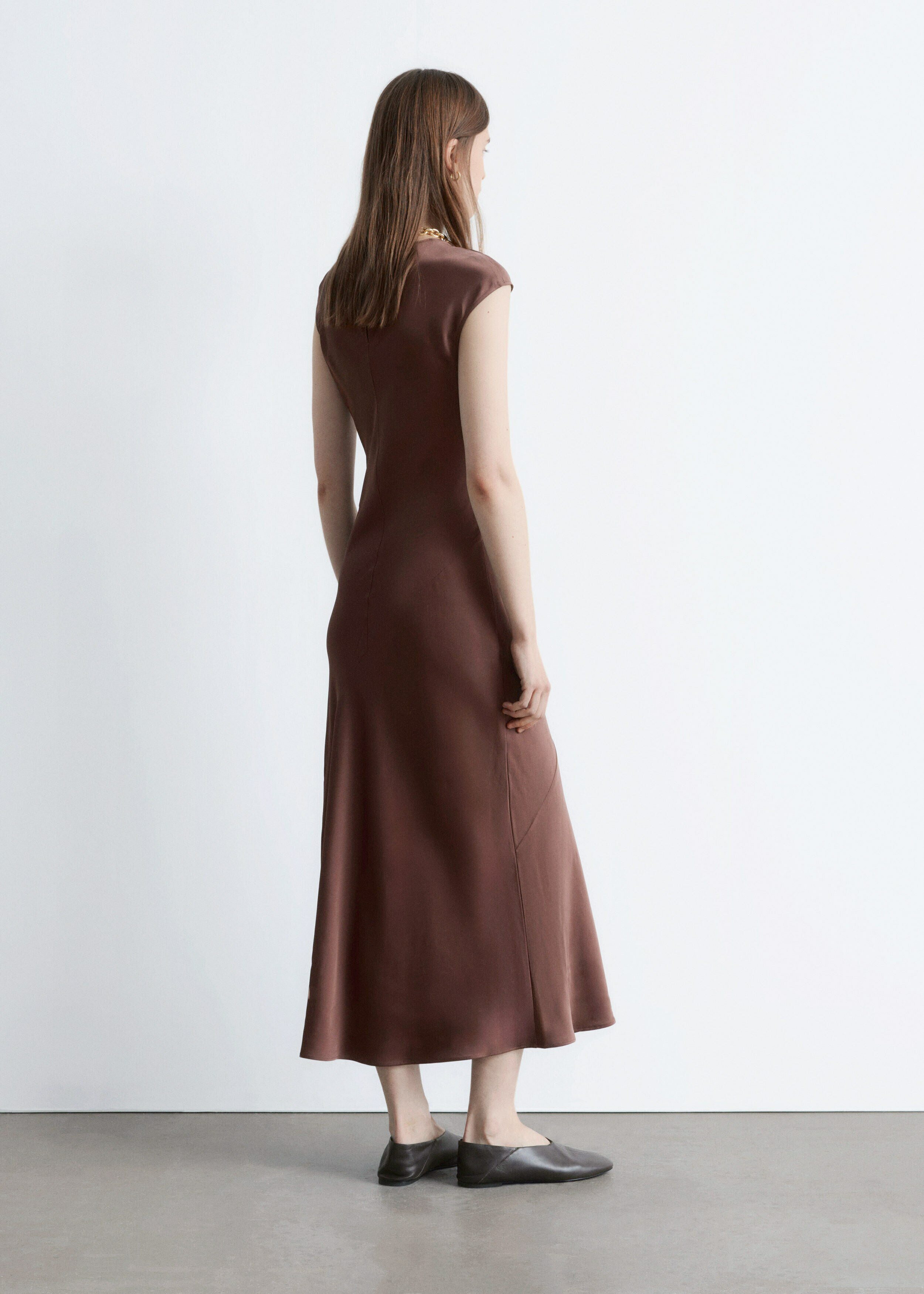 우아하게 흐르는 비스코스 새틴으로 탄생한 맥시 드레스예요. 라운드 네크라인, 캡 슬리브, 그리고 뒷면의 키홀 오프닝과 버튼 & 루프 클로저가 자리해 있어요. 슬림한 핏이 멋스러운 제품으로, 가슴 다트와 사선의 커트라인 솔기가 특징이랍니다.