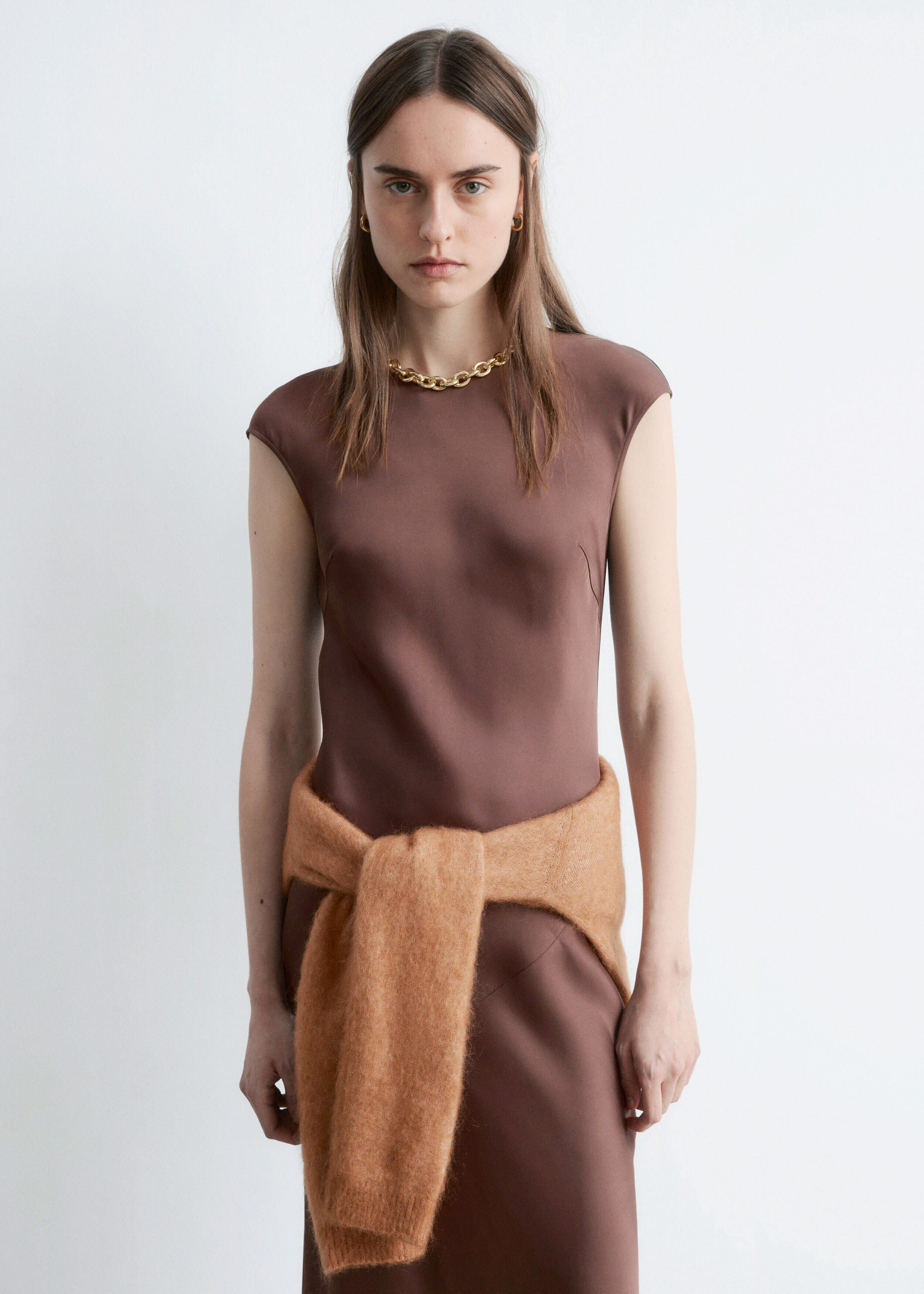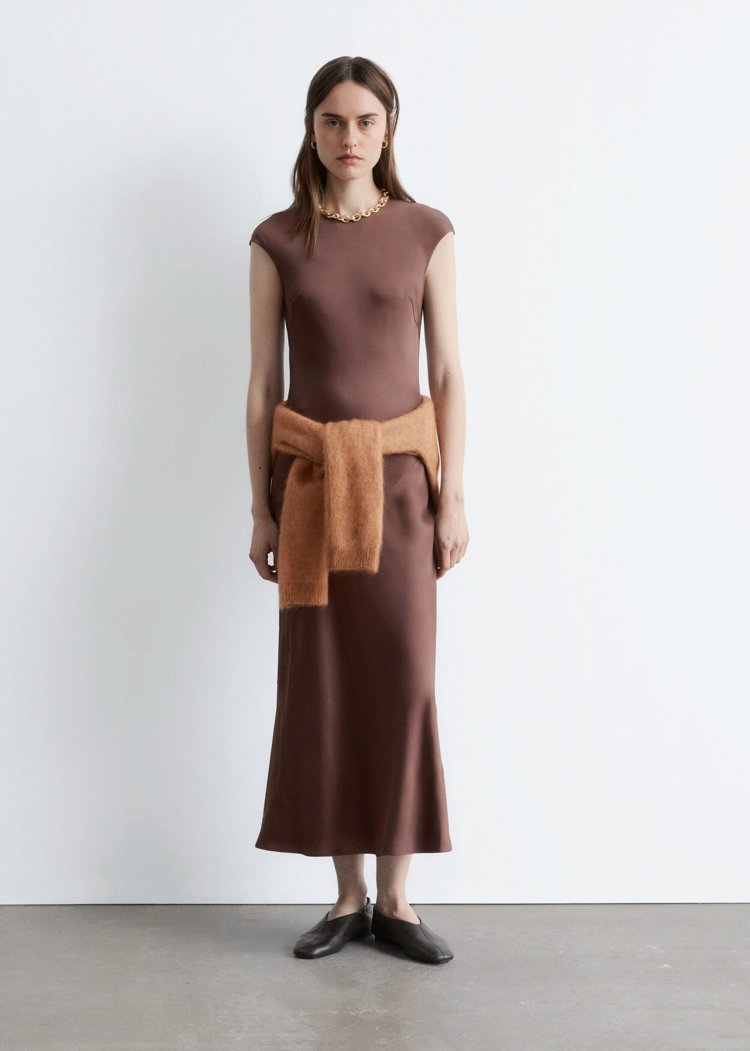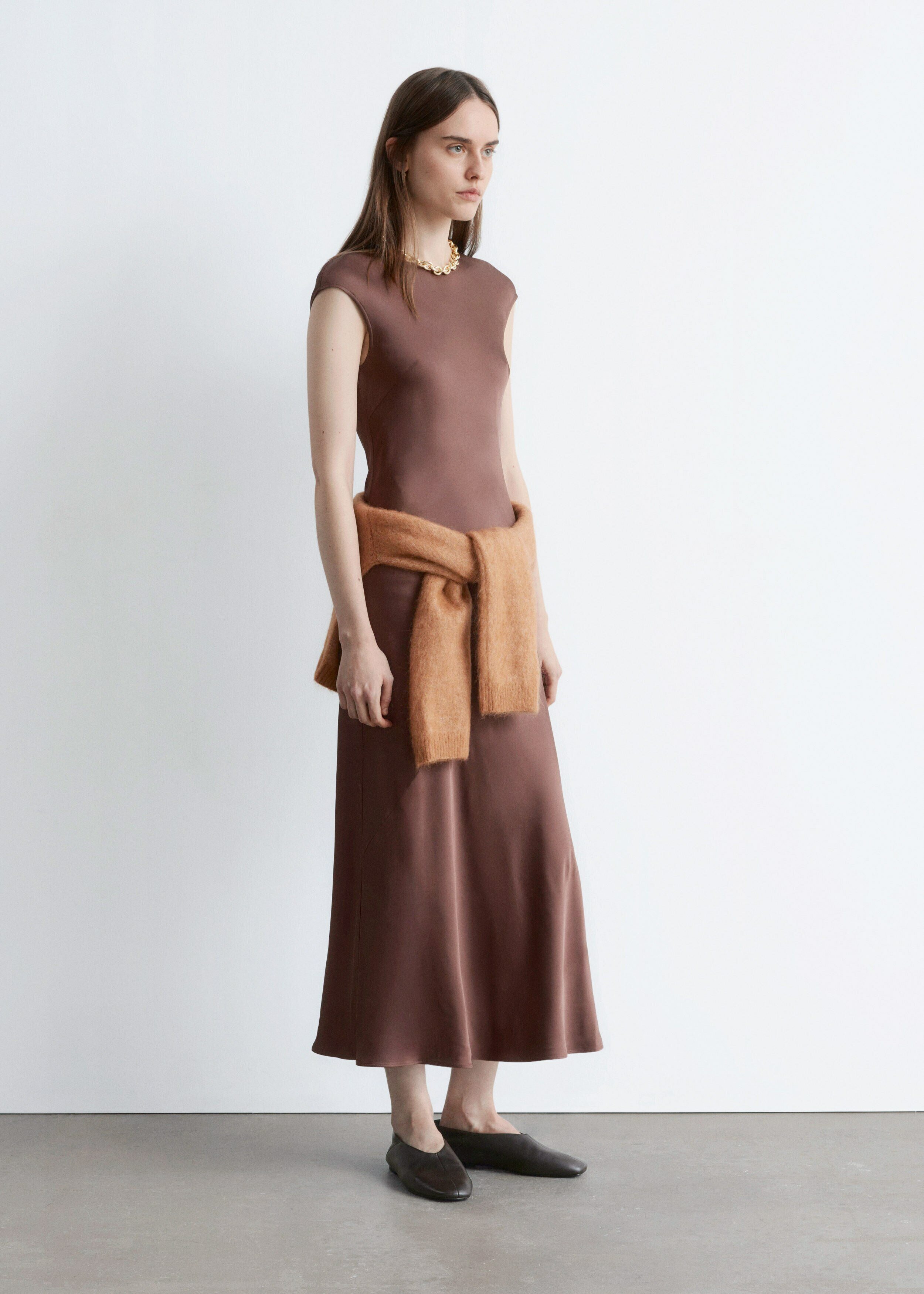 피티드 새틴 맥시 드레스