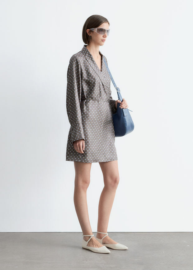 100% 멀베리 실크 소재의 랩 미니 드레스예요. 유려하게 흐르는 실루엣과 부드러운 숄 카라가 특징이며, 롱 슬리브가 자리해 있어요. 허리를 강조하는 랩 스타일 디자인이 세련되고 구조적인 쉐입을 연출하며, 미니 기장감으로 현대적인 무드가 느껴진답니다.