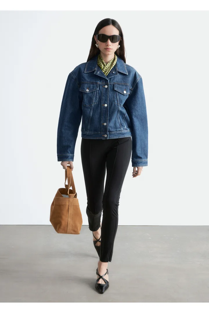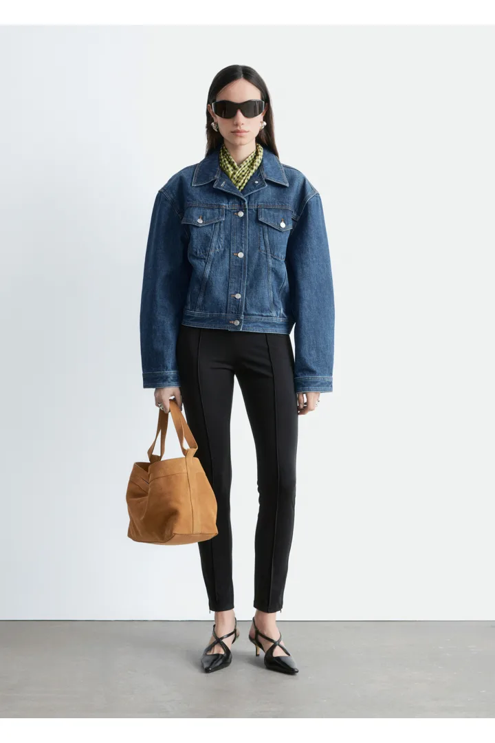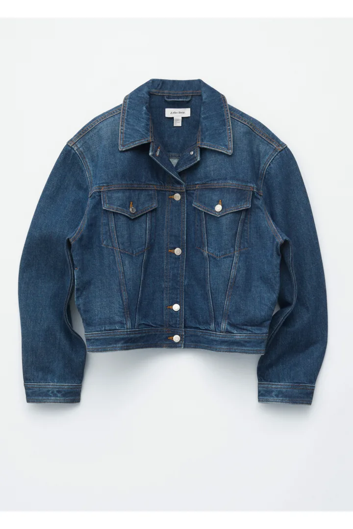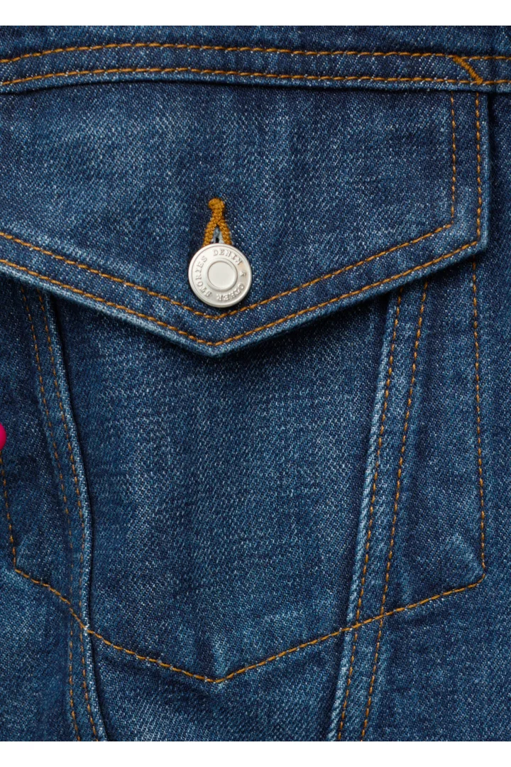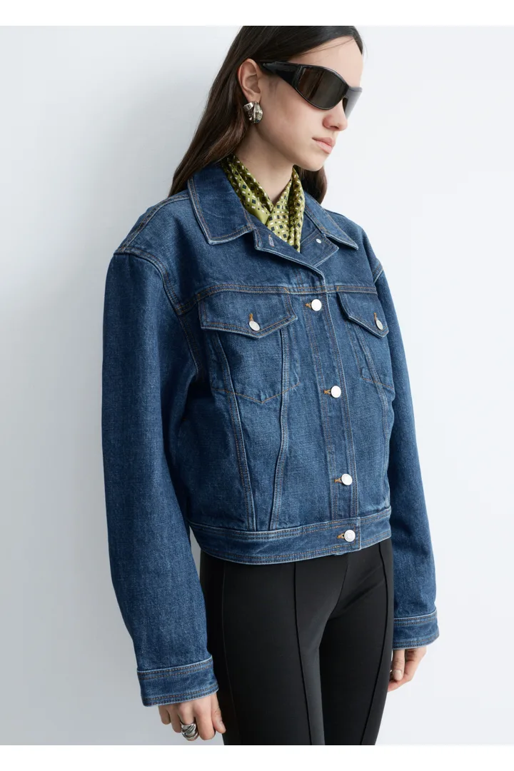 탄탄한 데님 소재의 자켓이에요. 구조적인 크롭 실루엣이 멋스러운 아이템으로, 버튼 패치 포켓과 탑스티치 솔기가 자리해 있답니다. 세트 디자인의 데님 진과 함께 멋스러운 셋업 룩을 연출해 보세요.