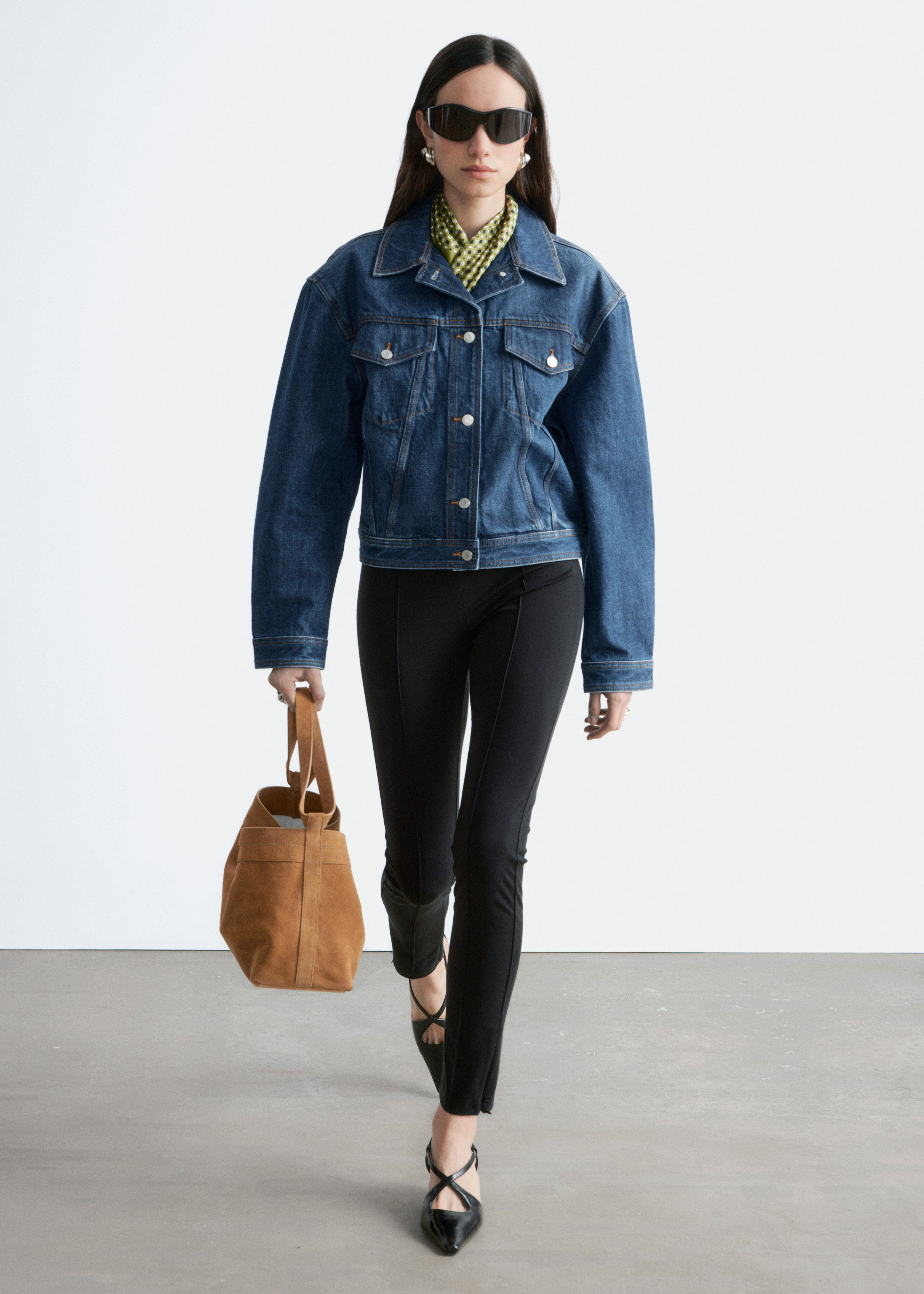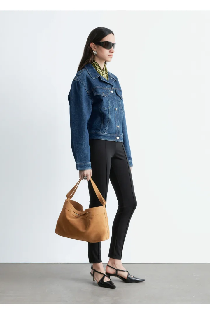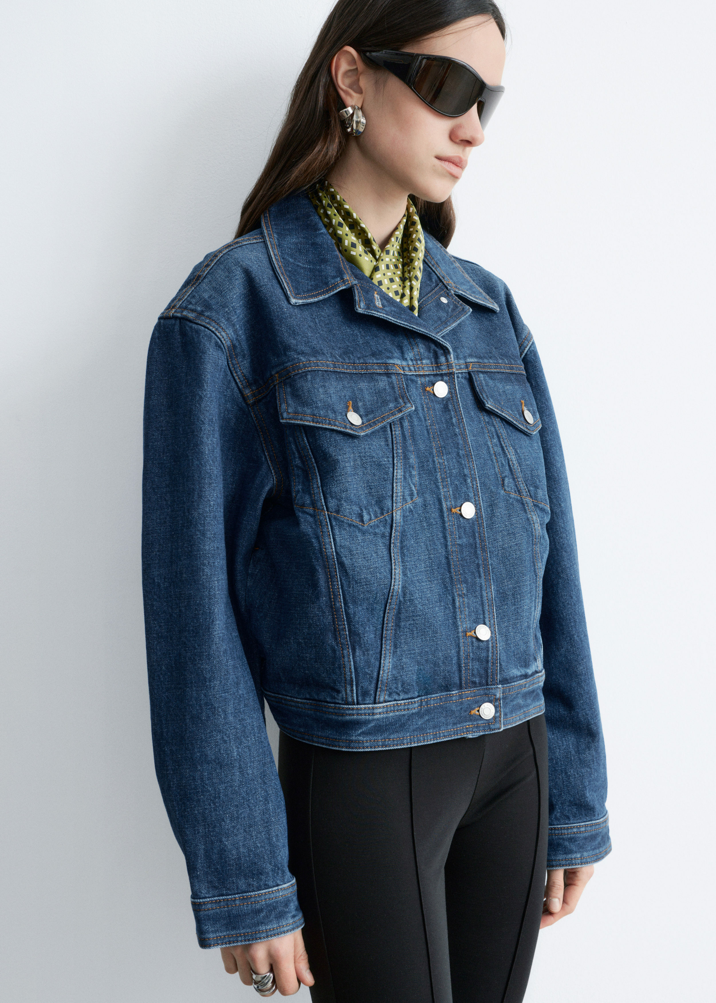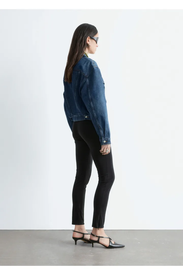탄탄한 데님 소재의 자켓이에요. 구조적인 크롭 실루엣이 멋스러운 아이템으로, 버튼 패치 포켓과 탑스티치 솔기가 자리해 있답니다. 세트 디자인의 데님 진과 함께 멋스러운 셋업 룩을 연출해 보세요.