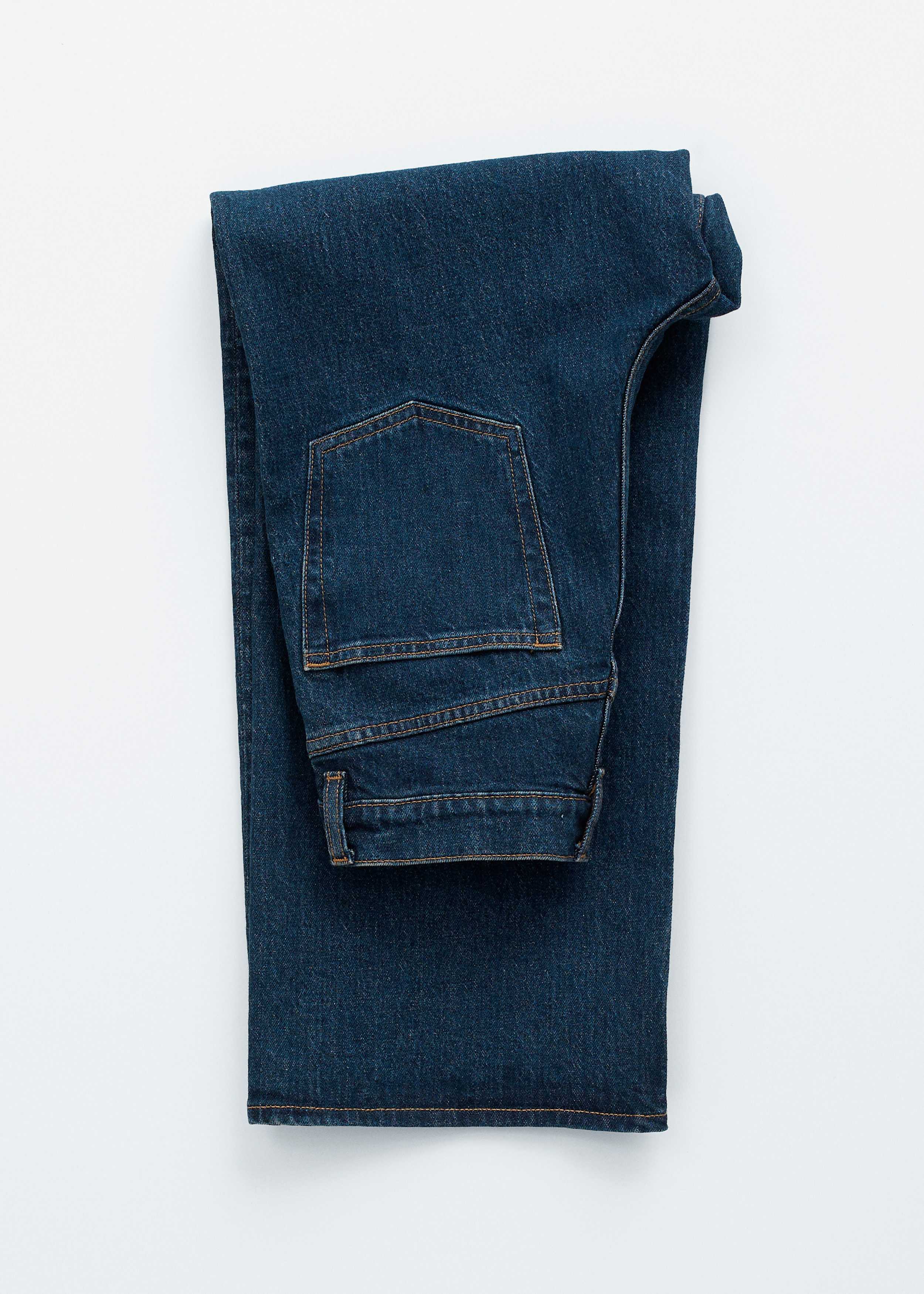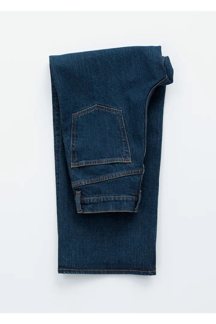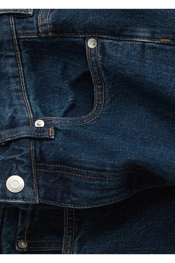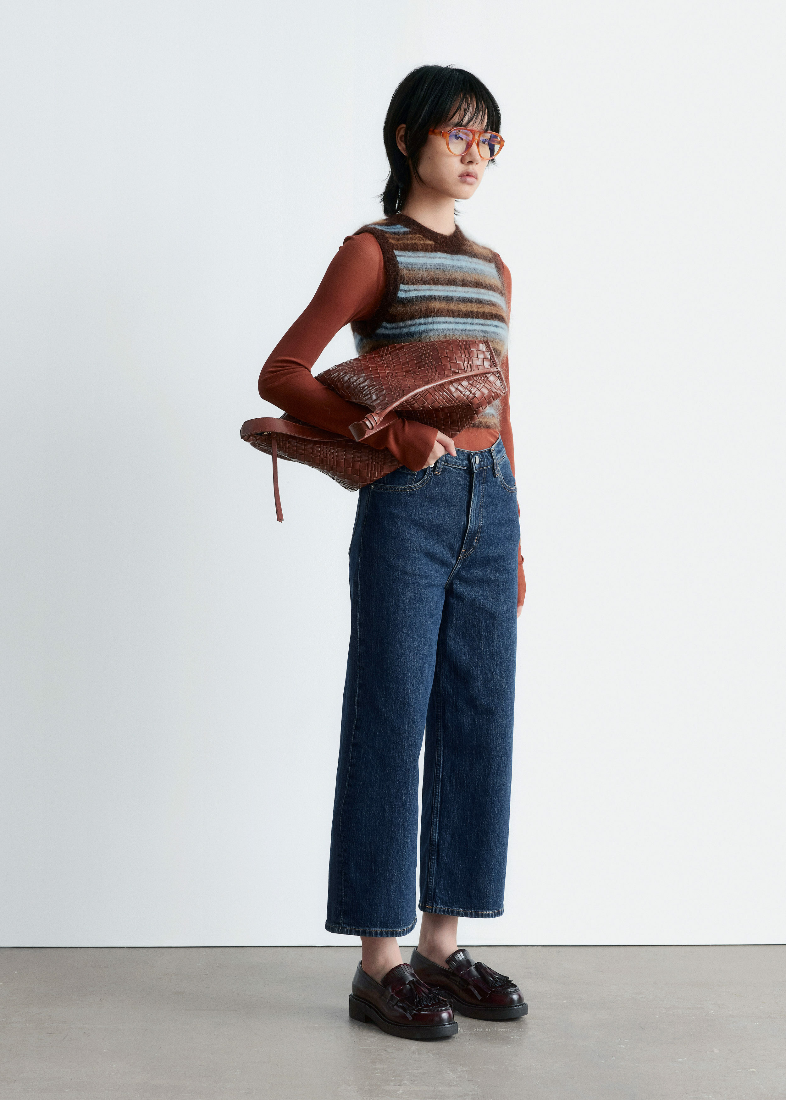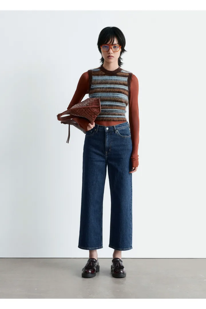 하이 웨이스트의 진이에요. 클래식한 5 포켓 디자인, 그리고 너비감 있는 크롭 레그가 특징이랍니다.