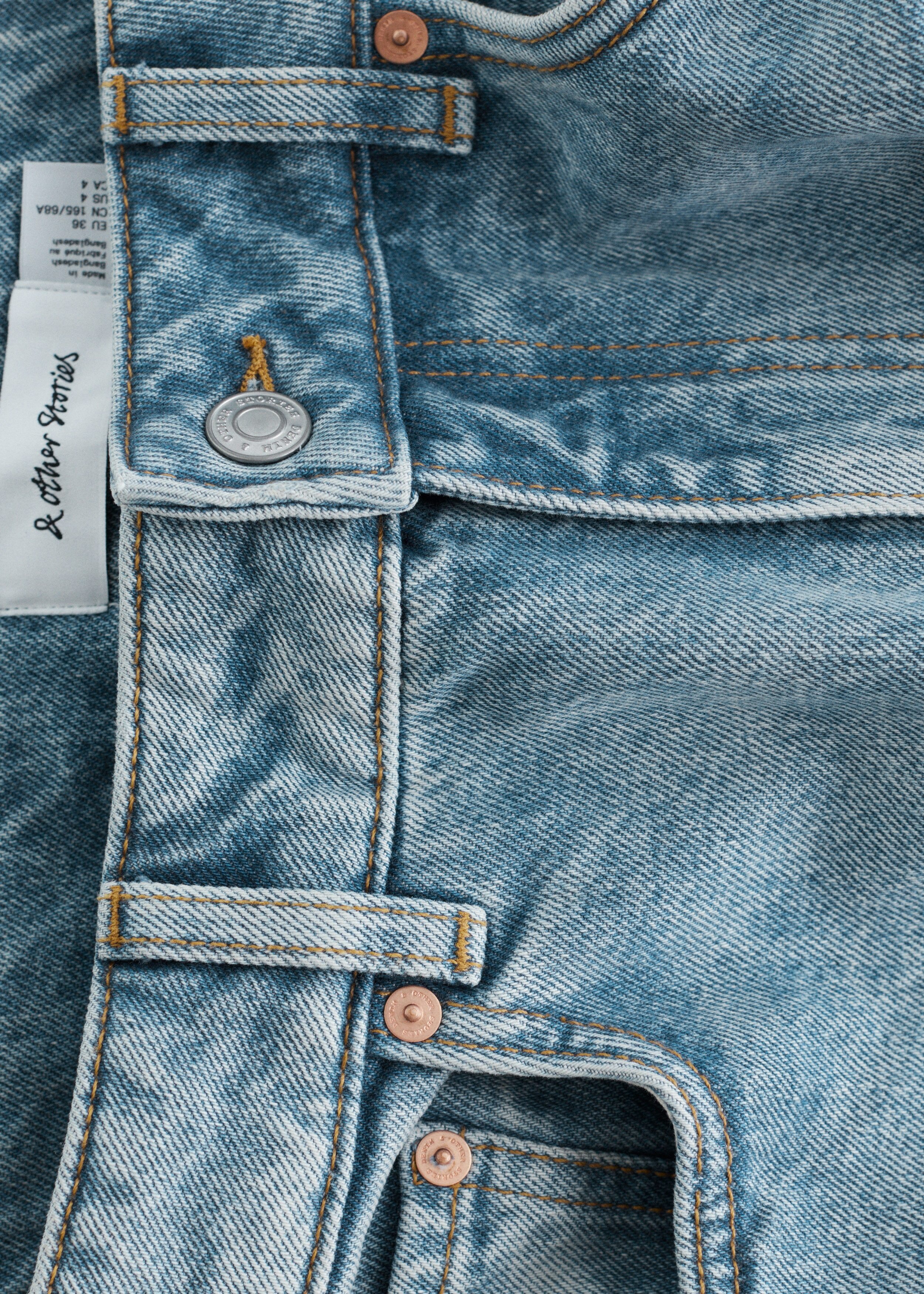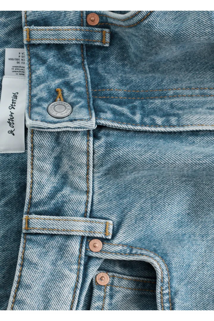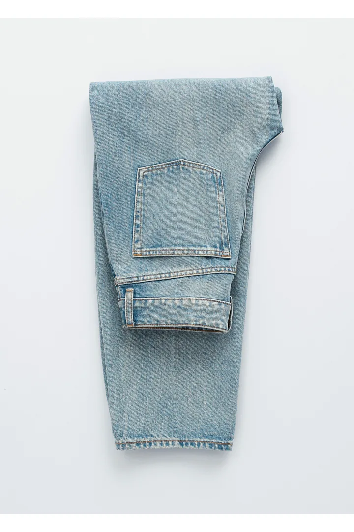 5 포켓 스타일의 데님 진이에요. 레귤러 웨이스트, 그리고 날렵한 프레스 크리스가 자리한 테이퍼드 레그가 특징이에요. 지퍼 플라이와 단추가 자리해 있답니다.