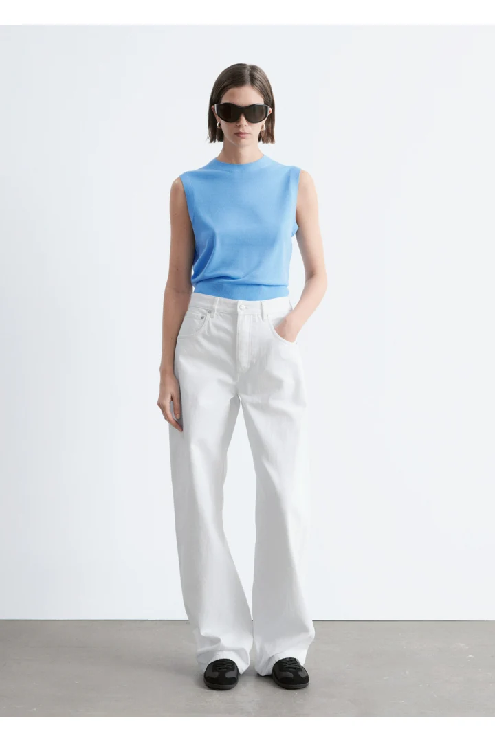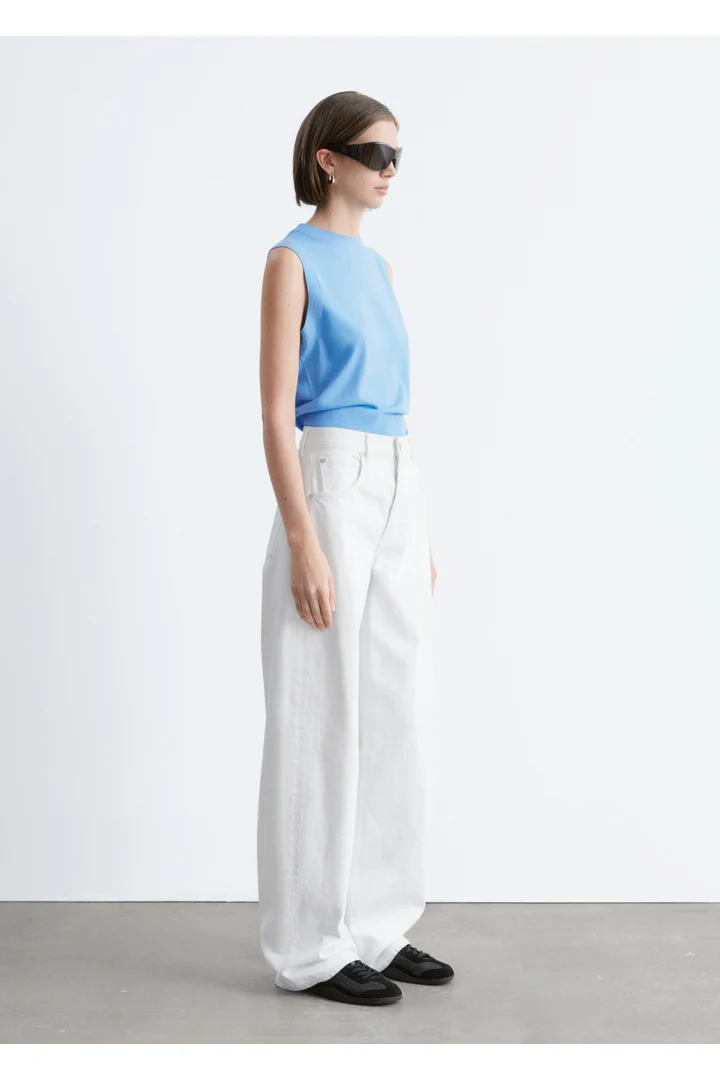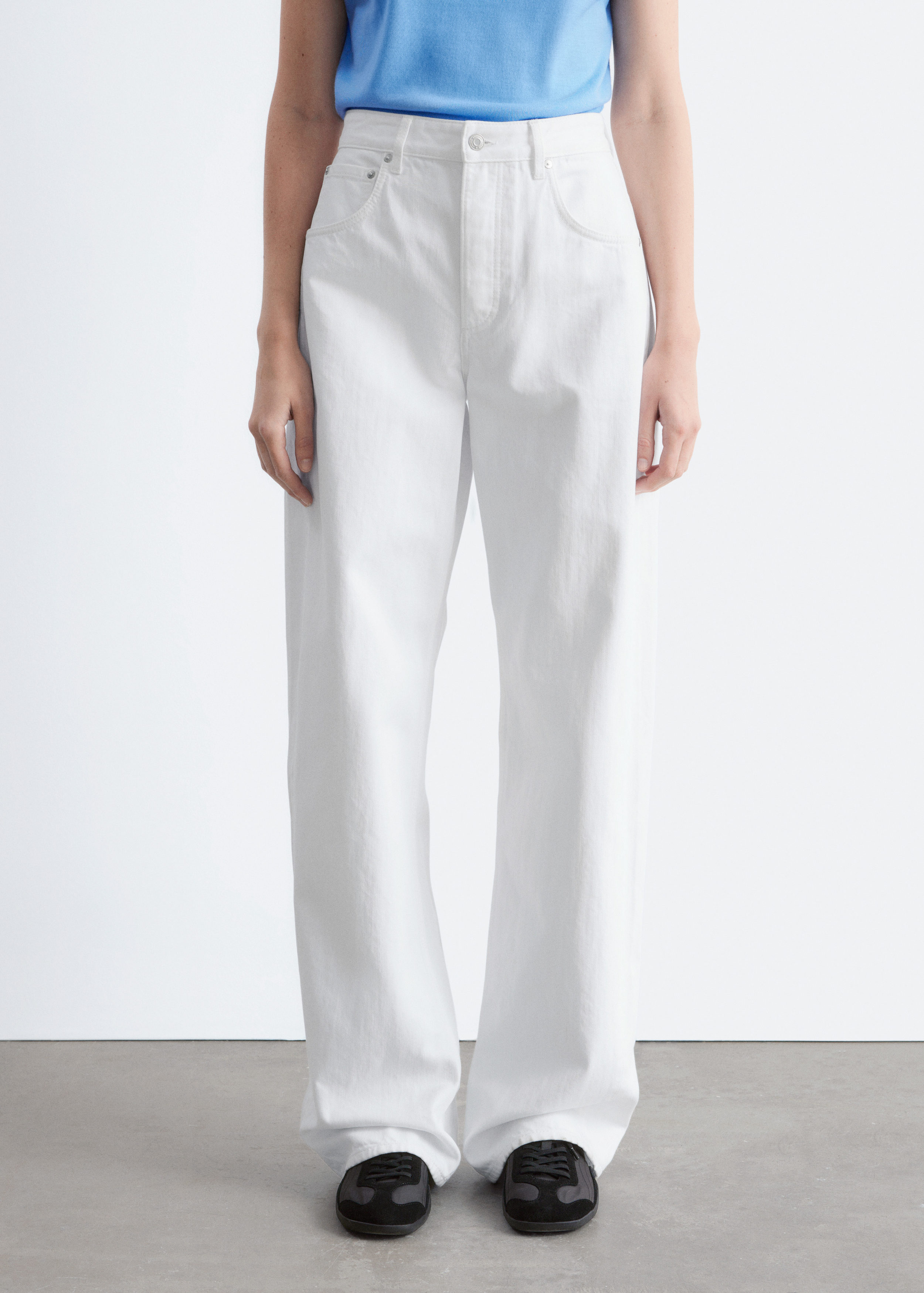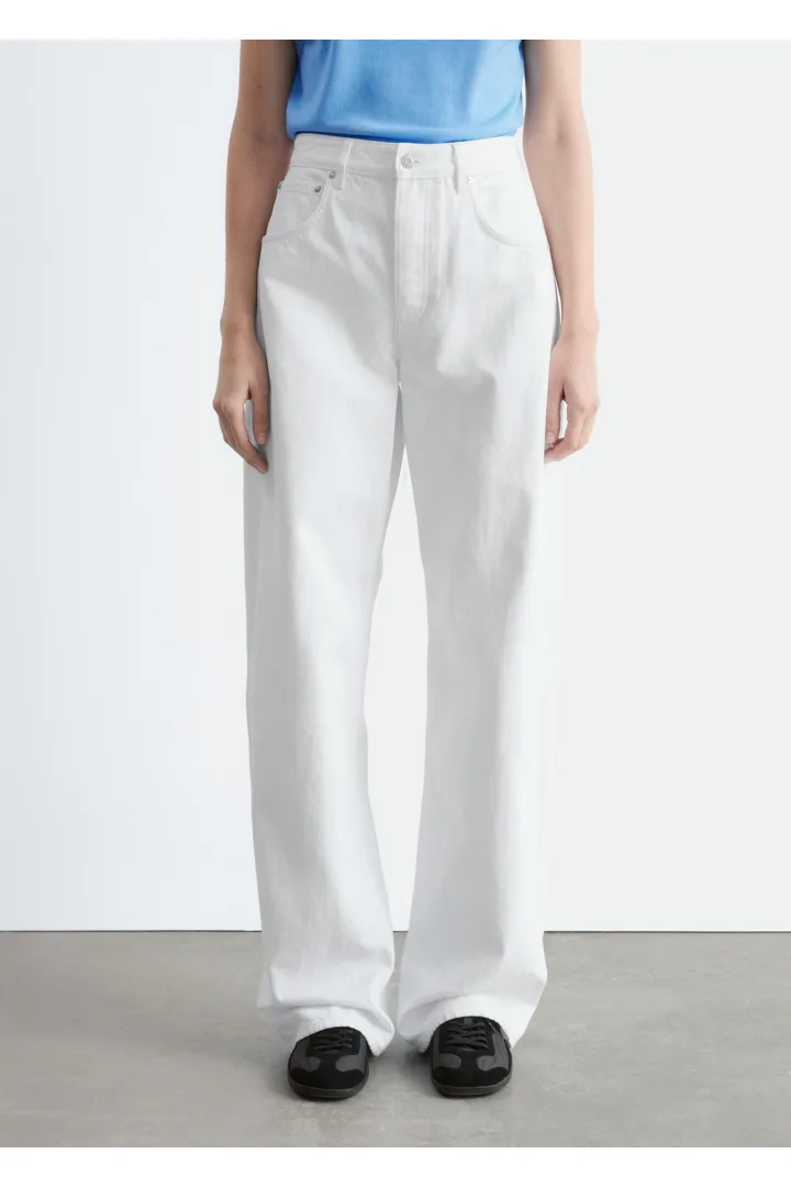 클래식한 5 포켓 디자인의 진이에요. 배럴 쉐입의 엑스트라 롱 레그는 헴라인을 위로 접거나 내려 연출할 수 있답니다.