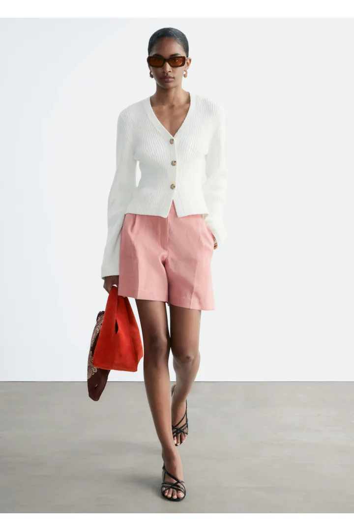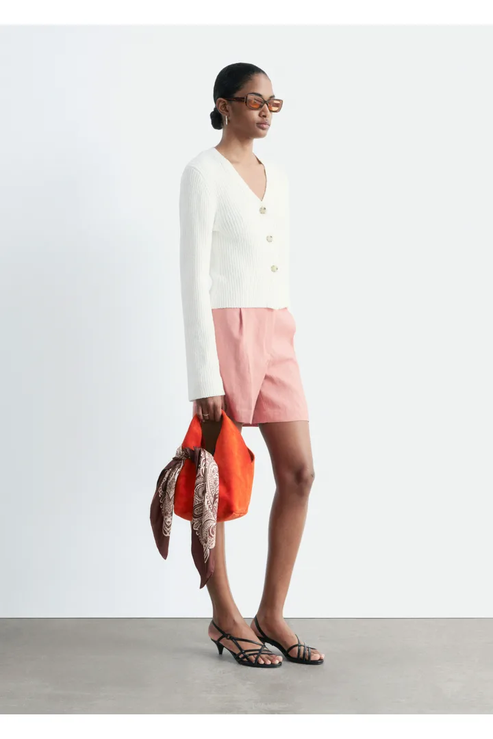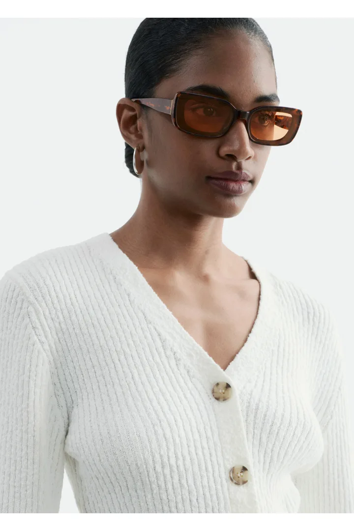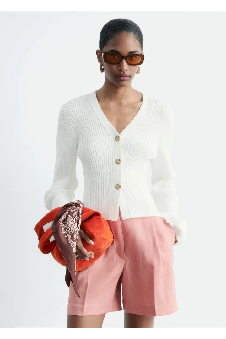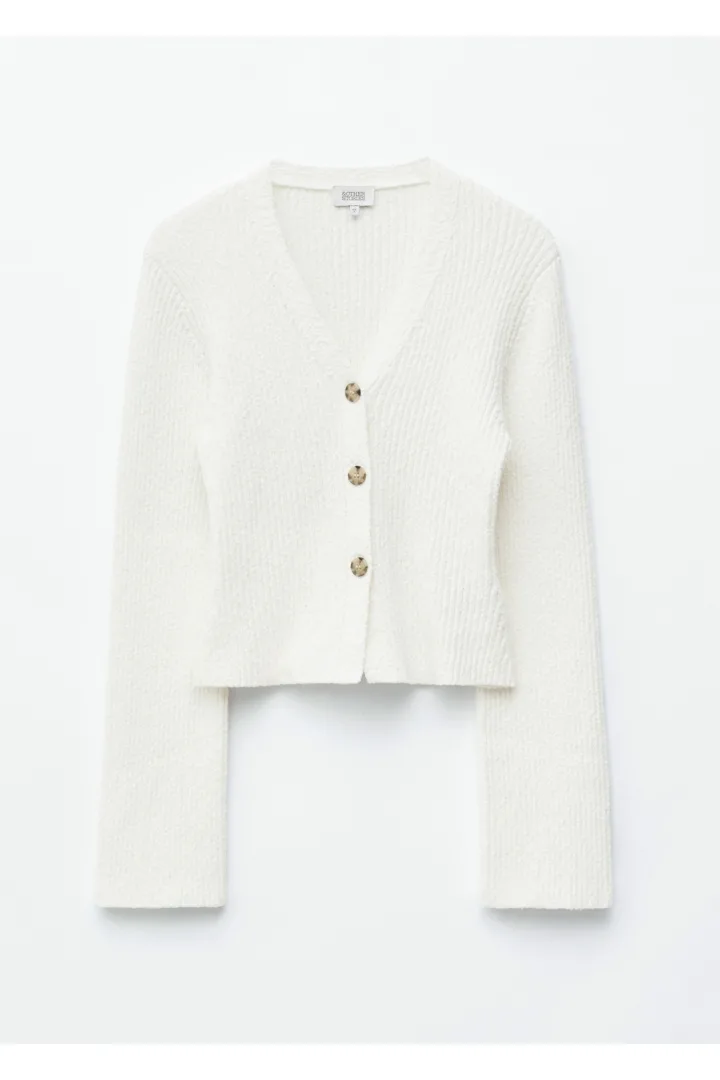 봄날에 가볍게 연출하기 좋은 가디건이에요. 텍스처 코튼 립 소재로 탄생했답니다. V 넥과 깔끔한 립 버튼 플래킷이 은은한 구조감과 입체감을 더해어요. 약간의 크롭 기장으로 편안하고 모던한 실루엣을 연출한답니다.