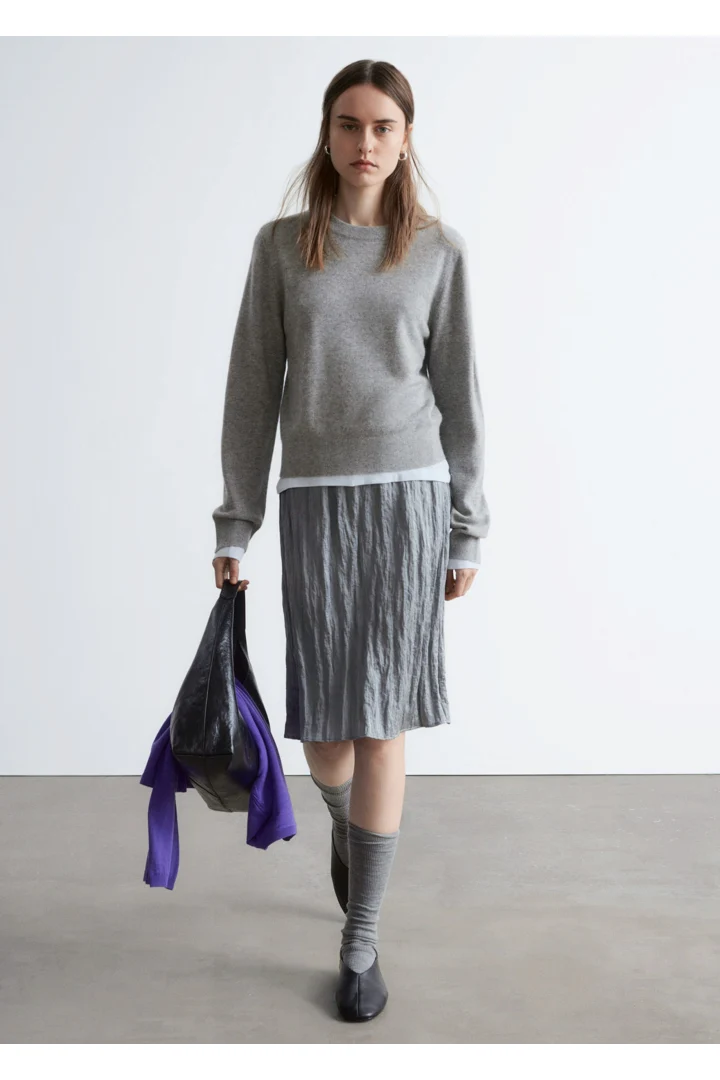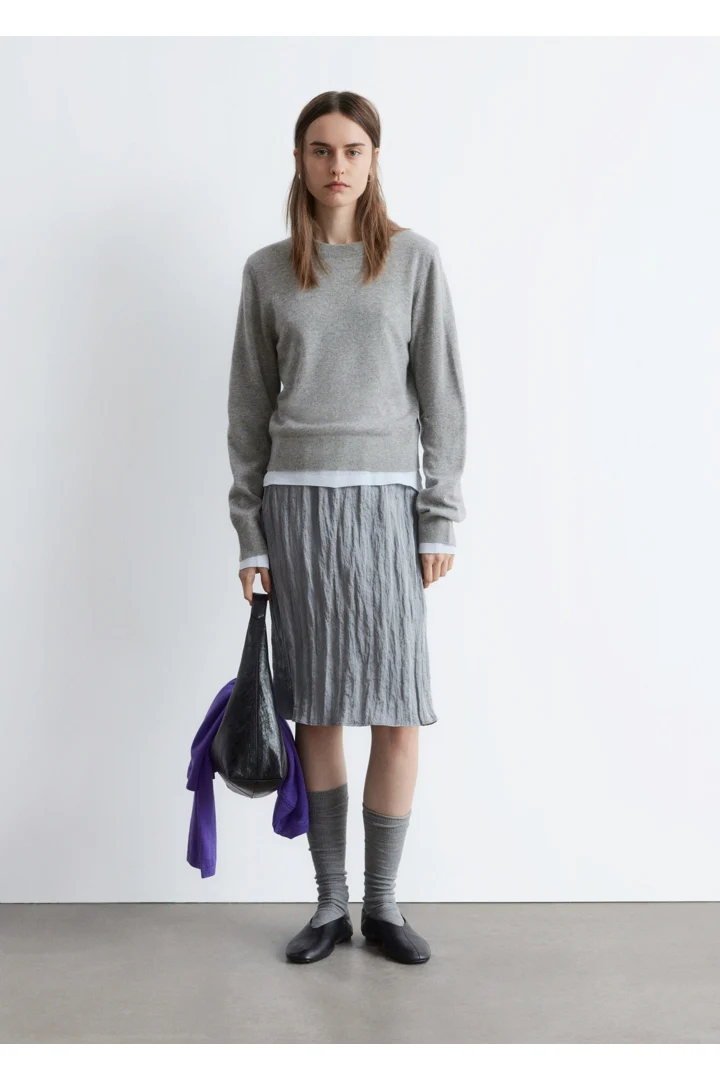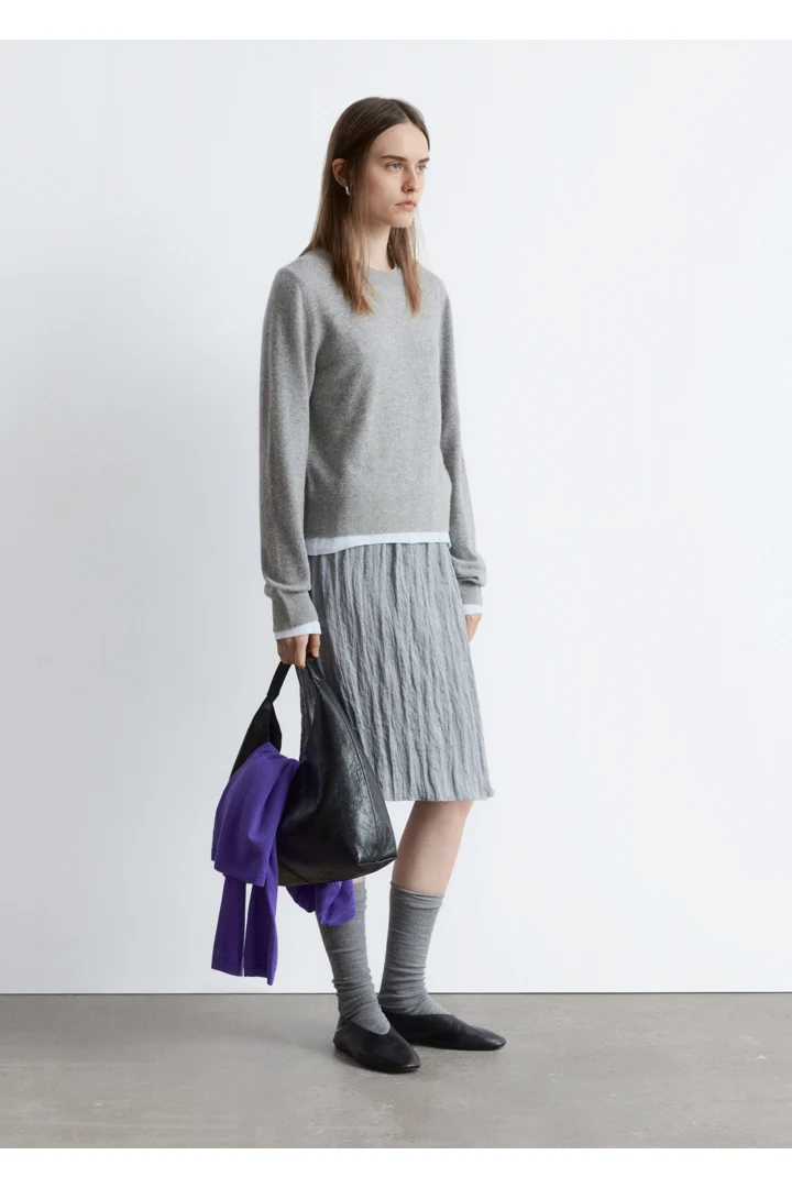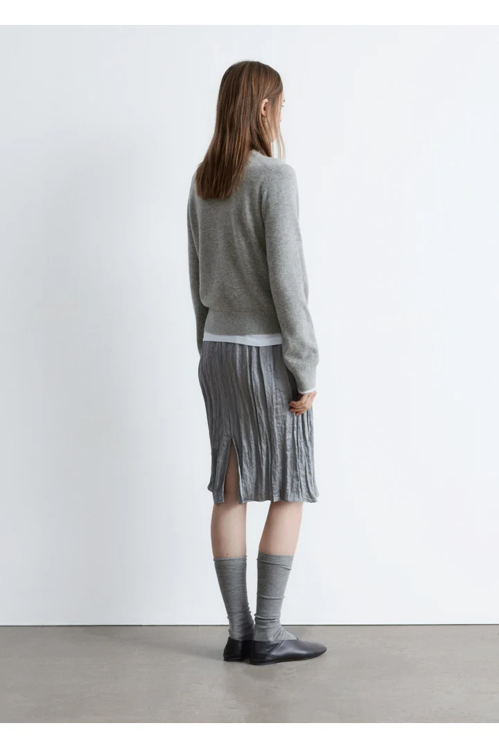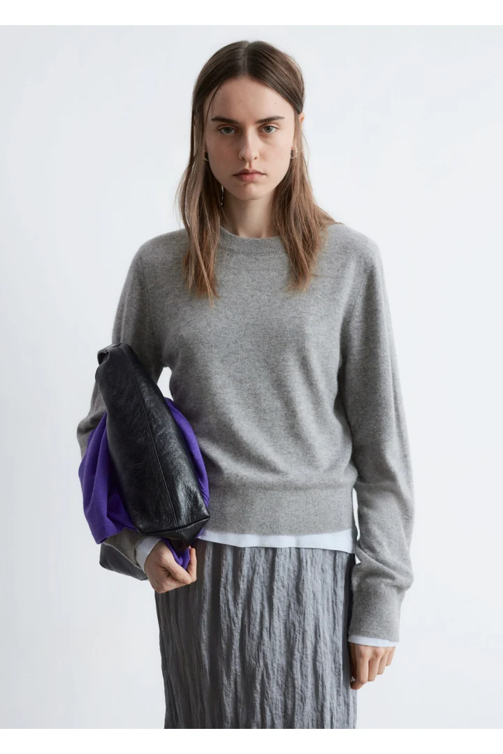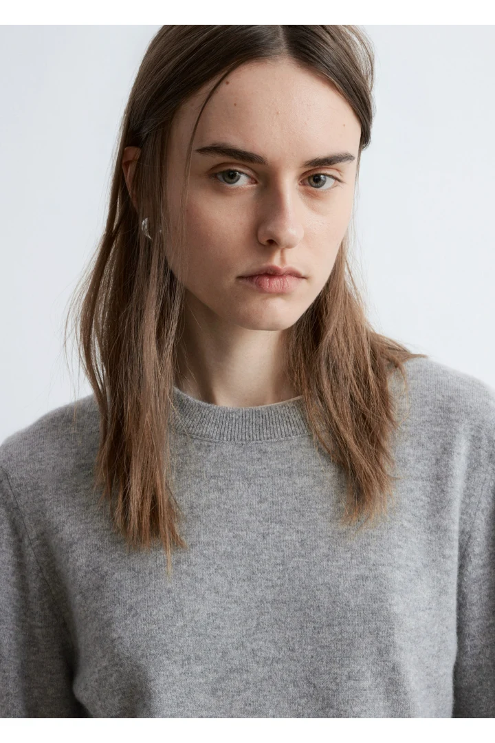 100% 캐시미어 니트로 탄생한 롱 슬리브 스웨터예요. 슬림한 실루엣이 돋보이는 아이템으로 립 트리밍이 자리한 더블 레이어 라운드 네크라인, 그리고 커프스와 헴라인의 립 디테일이 특징이랍니다.