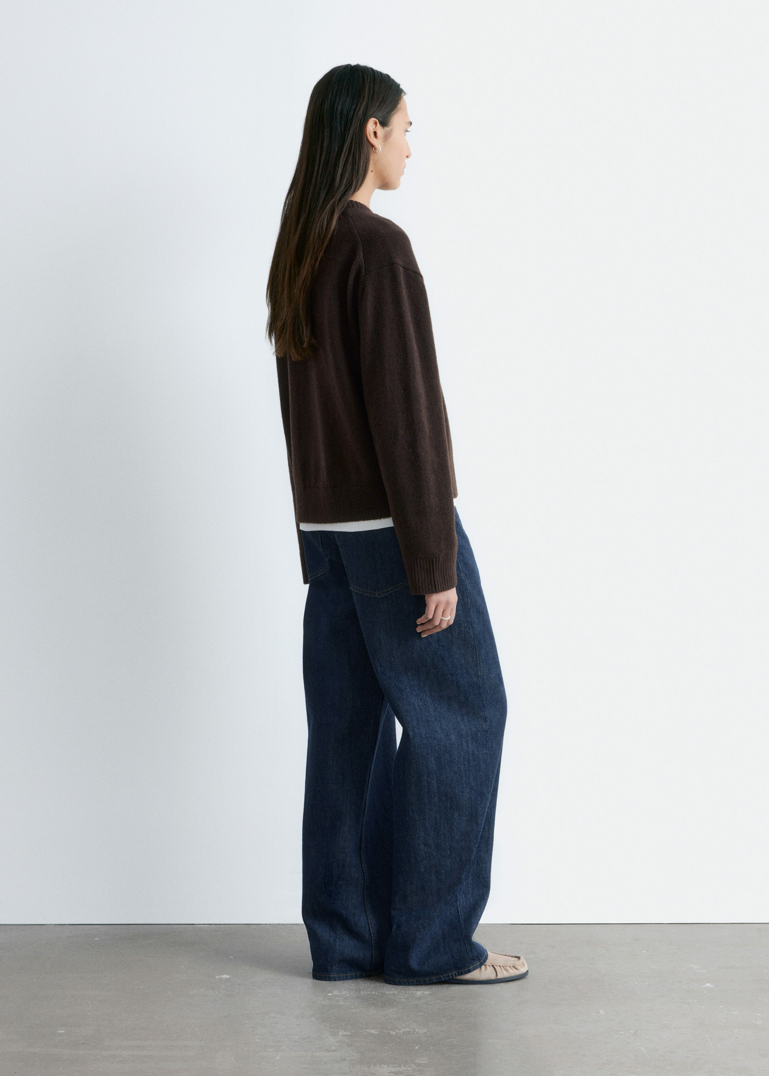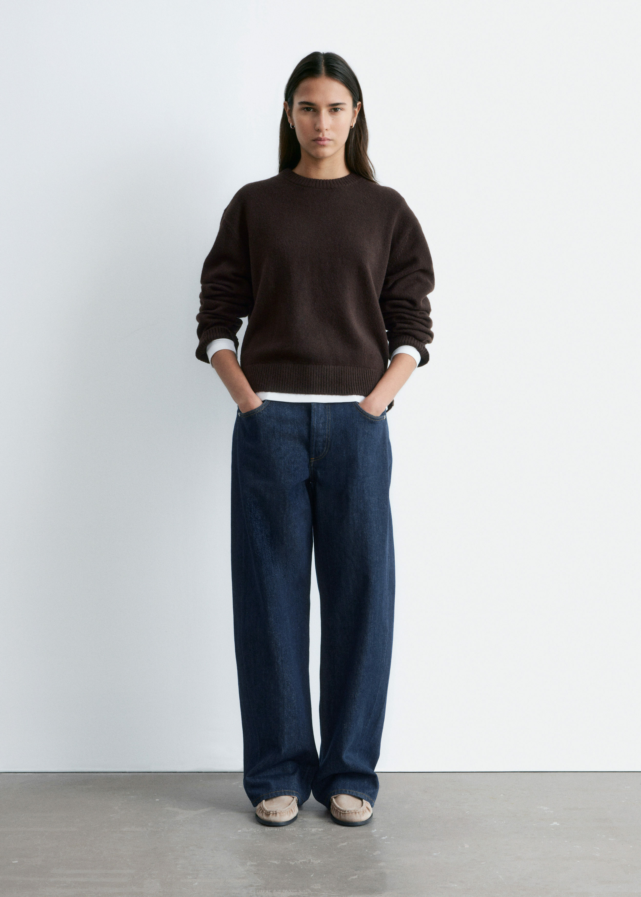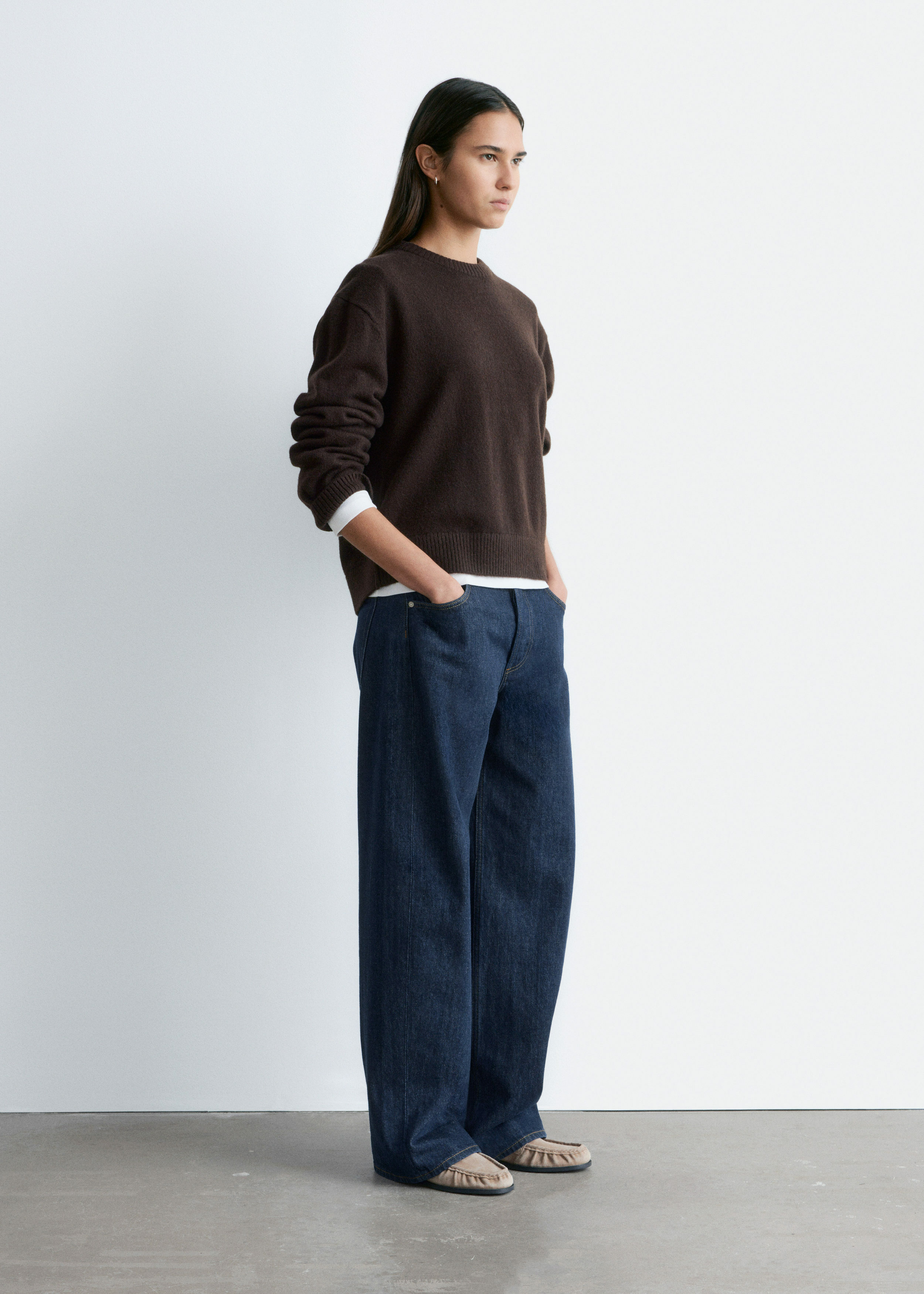 울 & 코튼 혼방 니트 소재의 스웨터예요. 박시 핏, 셋백 숄더, 립 트리밍이 특징이랍니다.
