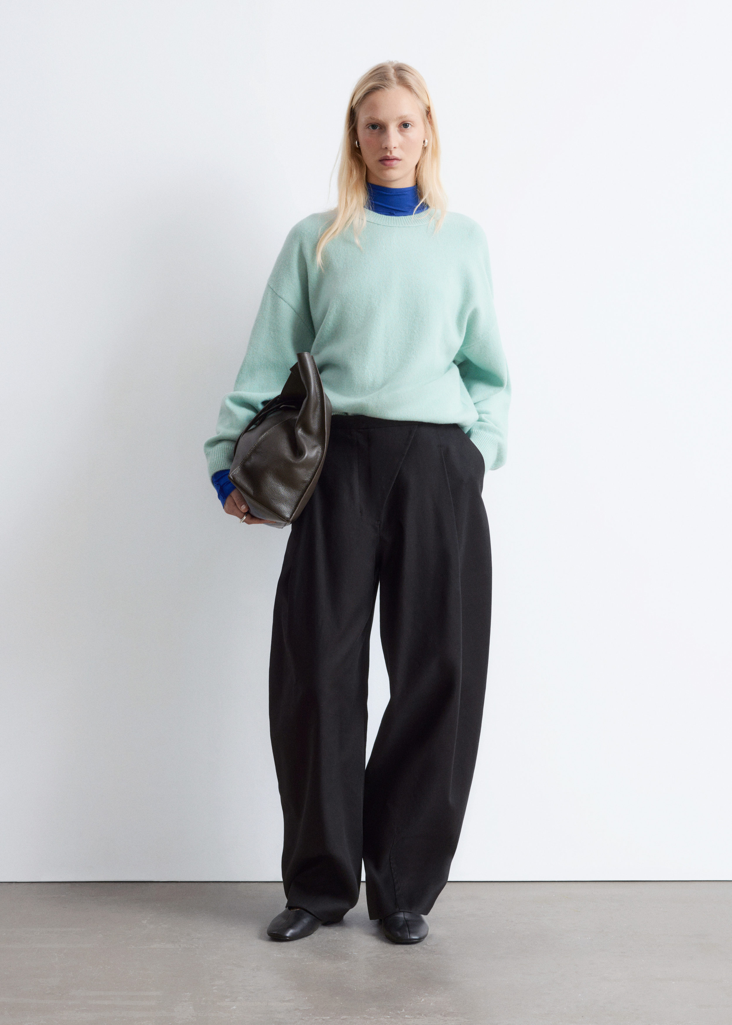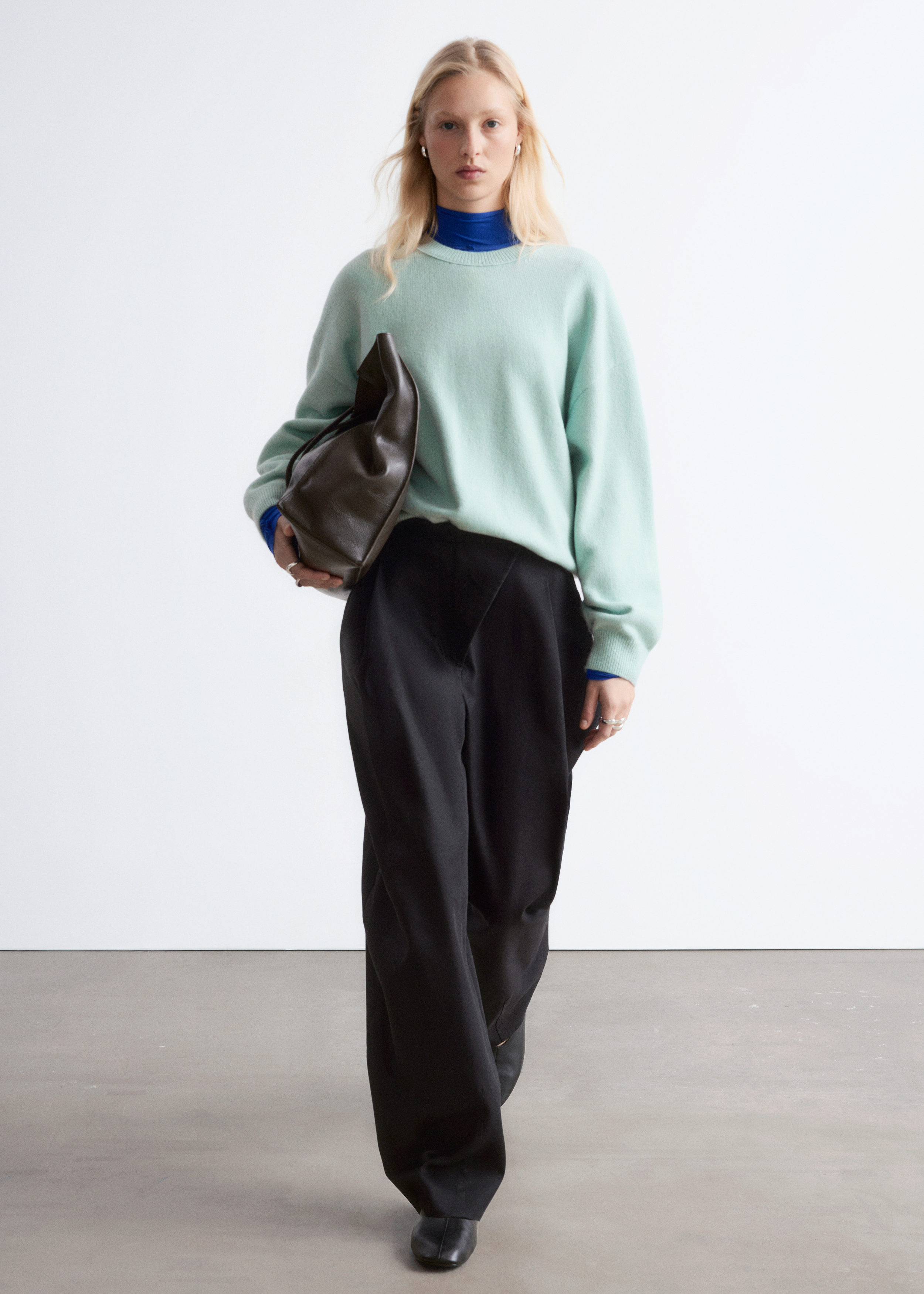 울 & 코튼 혼방 니트로 탄생한 스웨터예요. 오버사이즈 실루엣이 멋스러운 아이템으로 링크 스티치로 둘러 장식된 립 트리밍의 라운드 네크라인, 드롭 숄더, 롱 슬리브가 특징이랍니다. 커프스와 헴라인에 립 디테일이 자리해 있으며, 뒷면의 살짝 더 긴 헴라인으로 여유로운 쉐입을 연출해주어요. 넉넉한 핏이 특징인 제품으로, 몸에 더 맞게 정돈된 실루엣으로 연출하시려면 한 사이즈 작게 주문하시는 것을 추천드립니다.