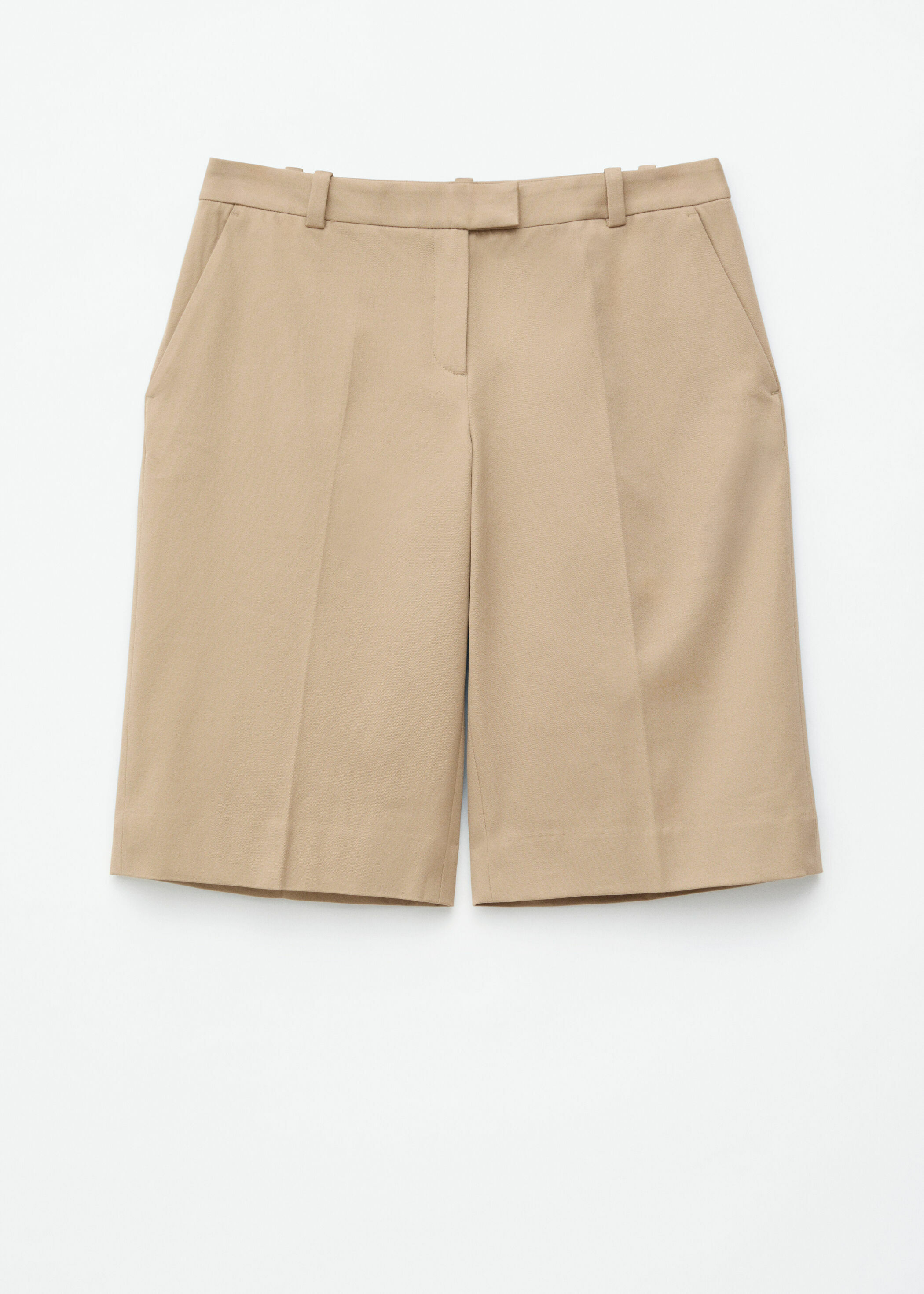 로우 웨이스트의 테일러드 쇼츠예요. 무릎 길이의 슬림한 실루엣이 멋스러운 아이템으로, 앞면과 뒷면의 프레스 주름이 라인을 강조하며, 옆면의 사선 포켓과 뒷면의 웰트 포켓이 특징이랍니다. 지퍼와 후크 앤 바 여밈이 자리해 있어요.