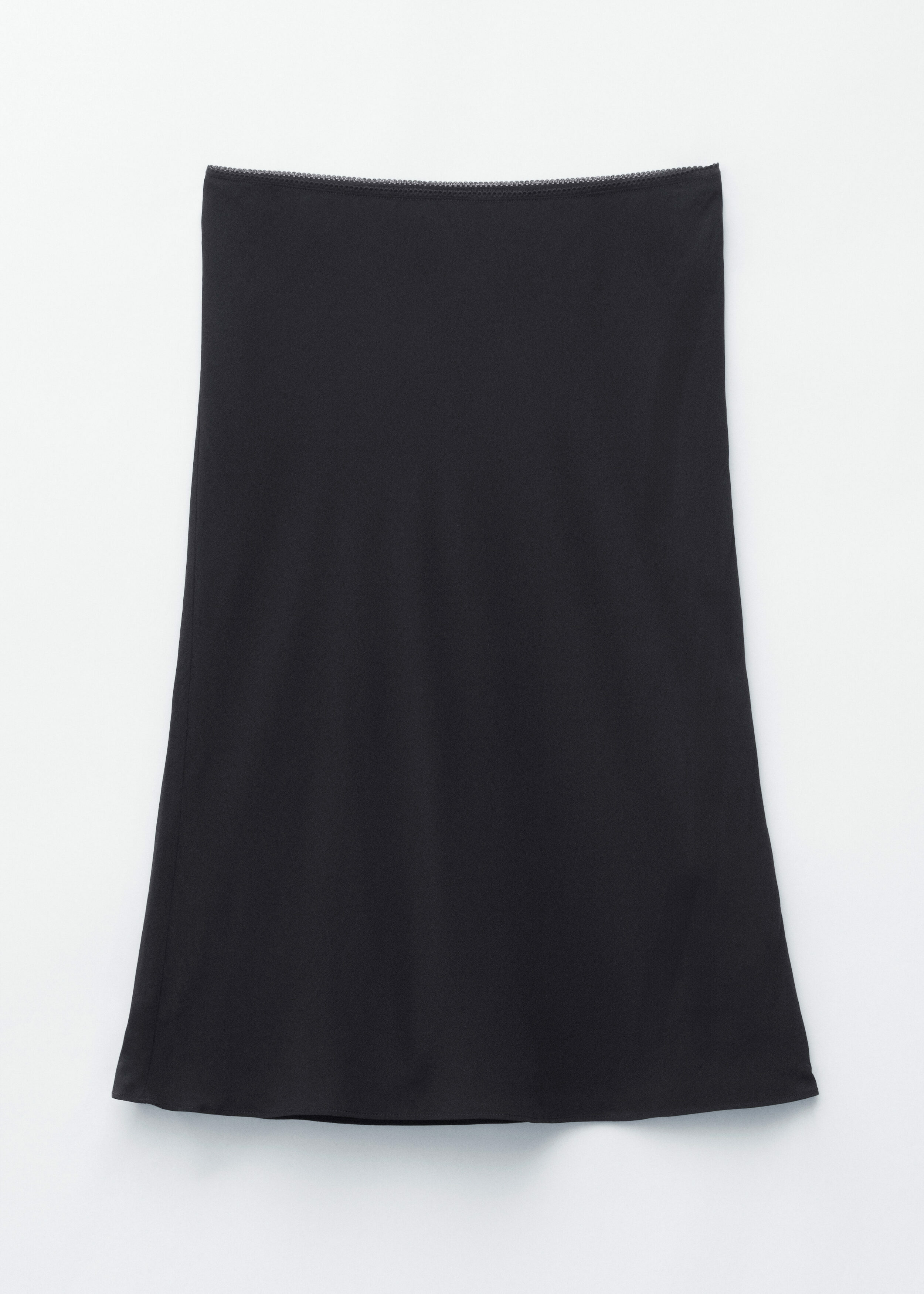 스트레이트 실루엣의 슬립 스커트예요. 무릎 부근의 헴라인에서 부드럽게 퍼지는 디자인이랍니다. 스캘럽 트리밍이 자리한 엘라스틱 웨이스트로 입고 벗기 간편해요.