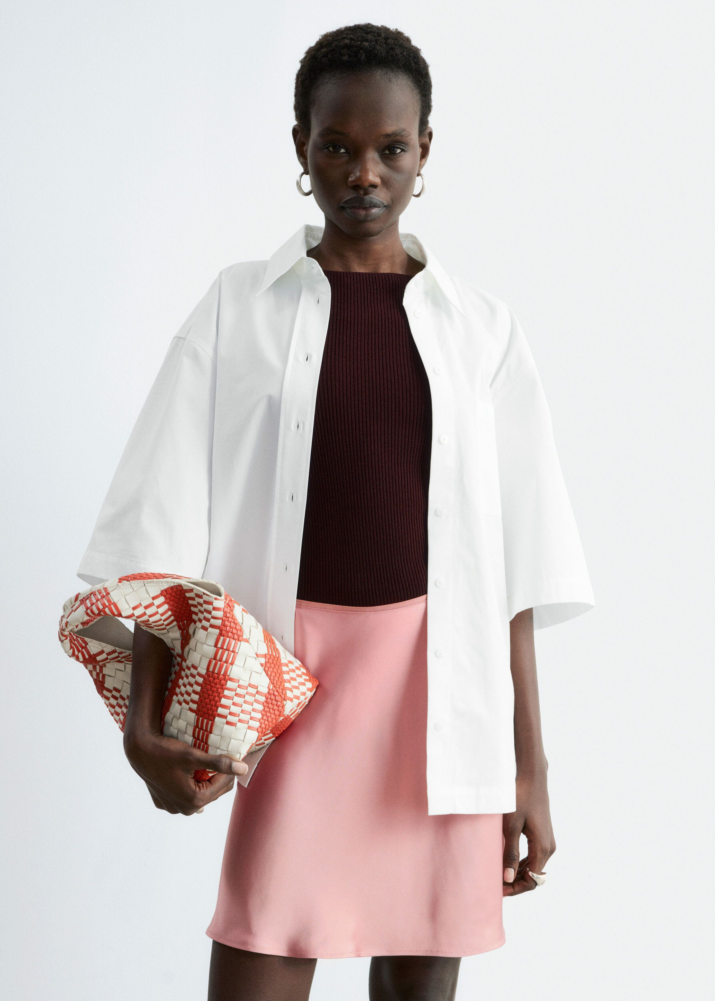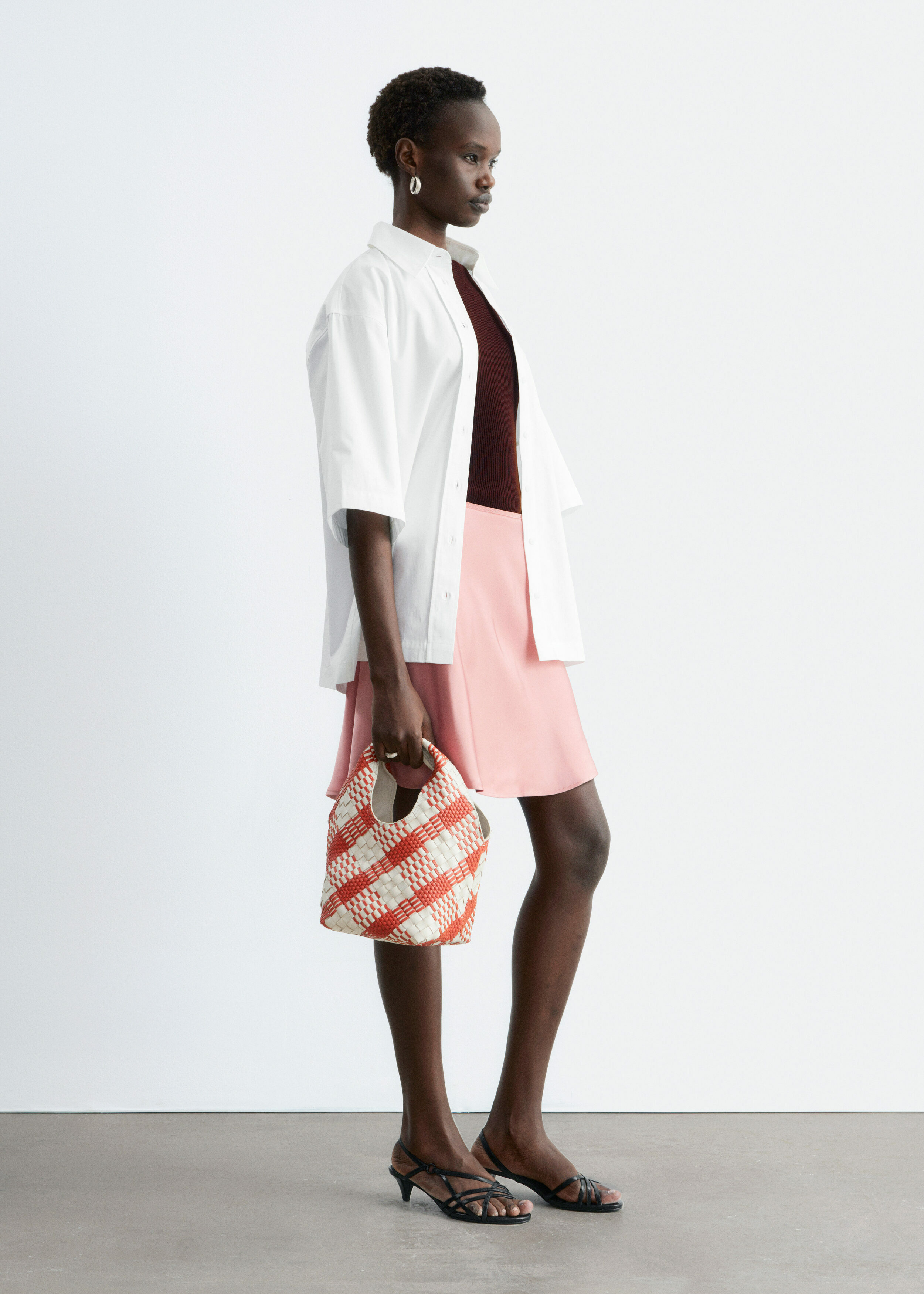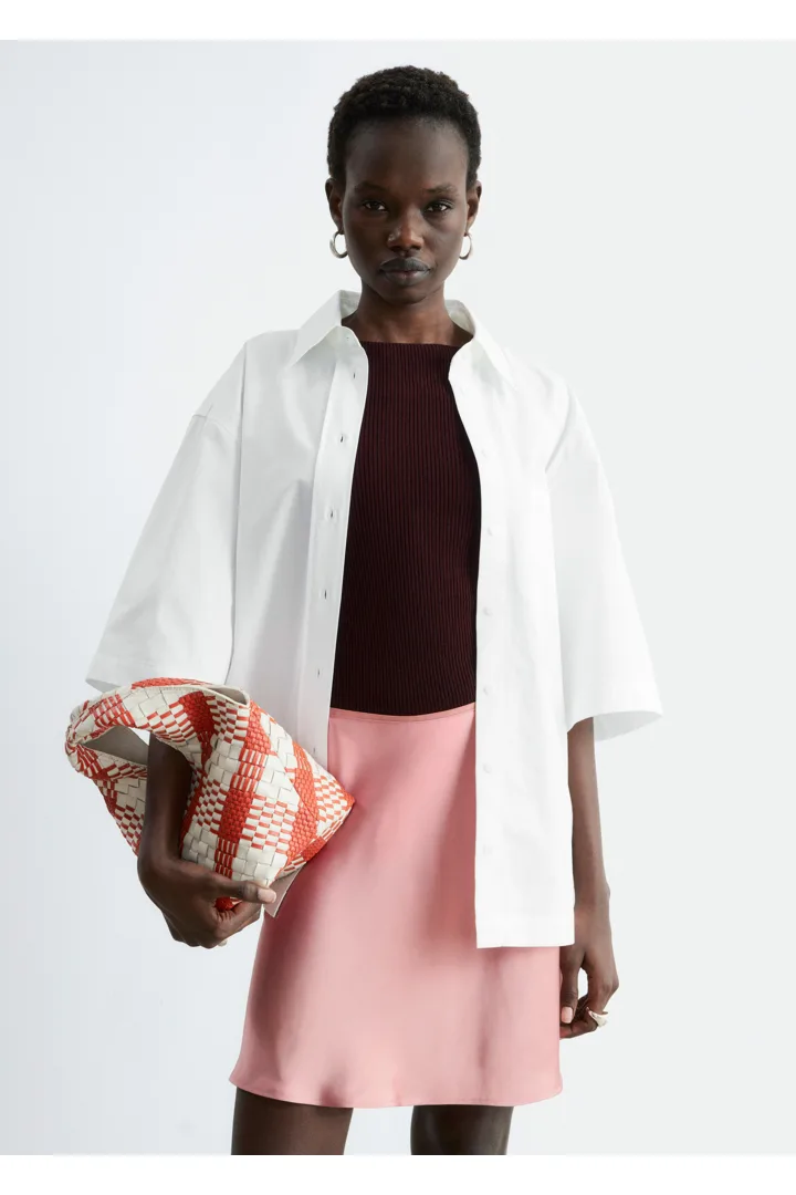 90년대 미니멀리즘을 새롭게 재해석한 스커트에요. 비스코스 소재로 탄생했으며, 유려한 드레이프로 무릎 위까지 떨어지는 기장감이 특징이랍니다. 여유로운 바이어스 실루엣으로 활동감이 편하며, 허리에는 섬세한 엘라스틱 디테일이 자리해 있어요.