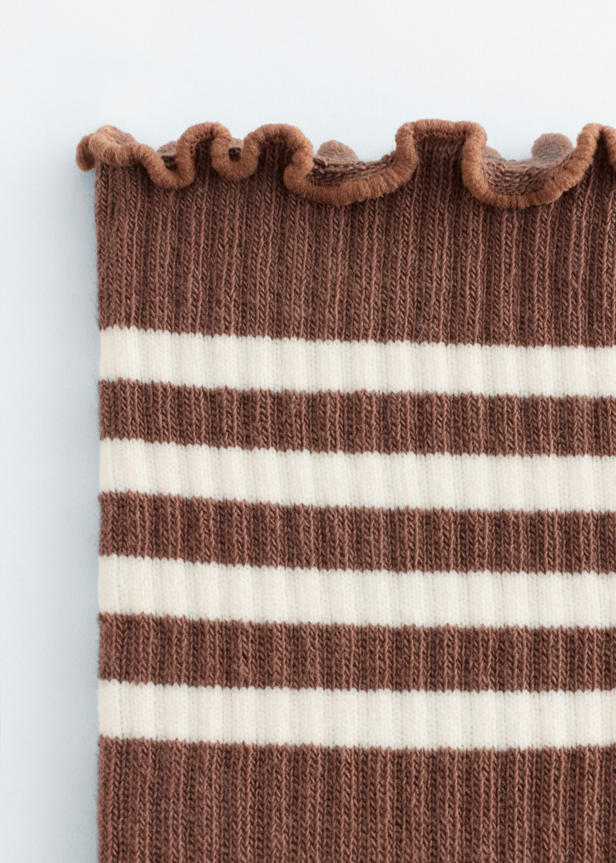 부드러운 립 니트 코튼 혼방 소재로 탄생한 삭스예요. 프릴 엣지, 그리고 스트라이프 섀프트가 스포티하고 레트로한 감각의 룩을 연출해요.