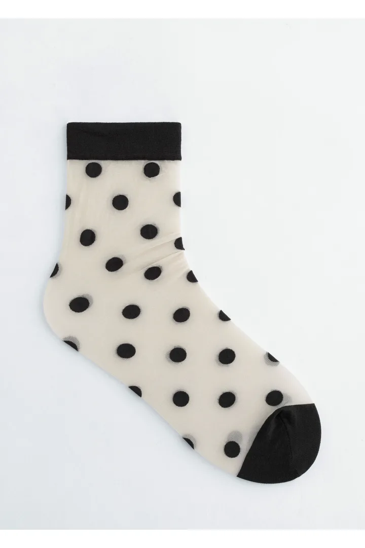 경쾌한 폴카 도트 패턴이 매력적인 시어 삭스예요. 단색 컬러의 앞코와 립 커프스가 특징이랍니다.
