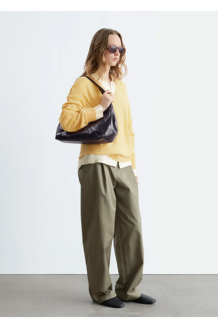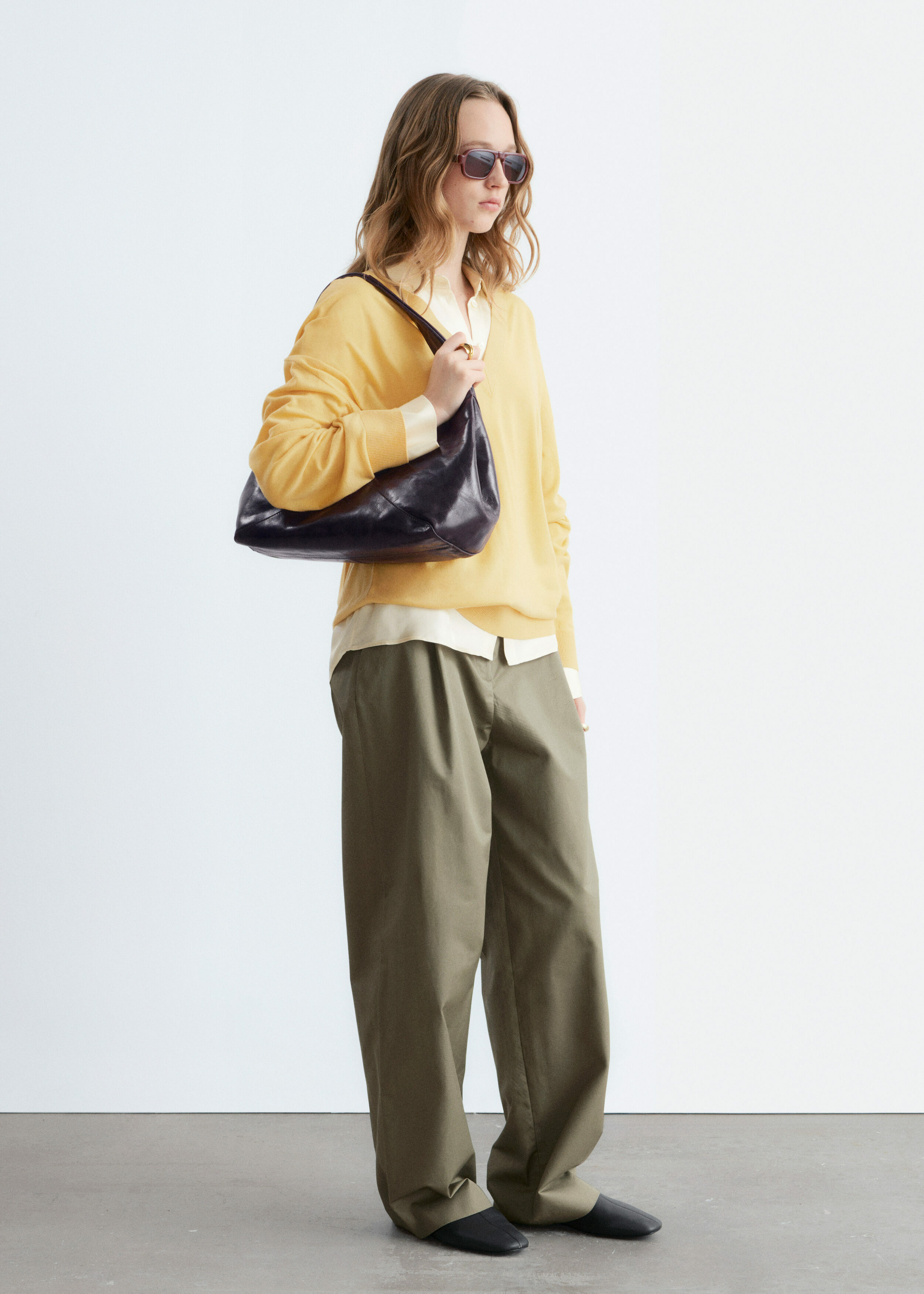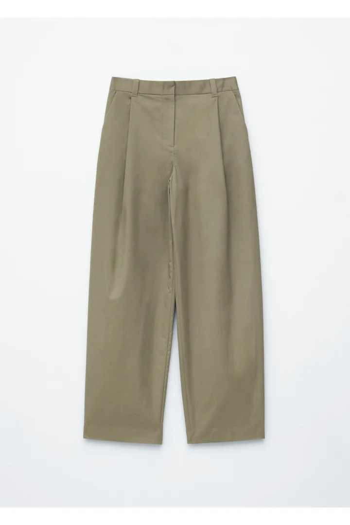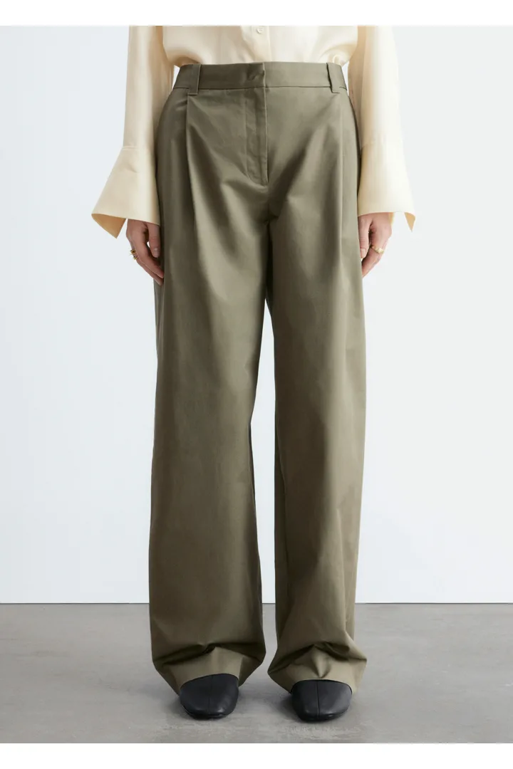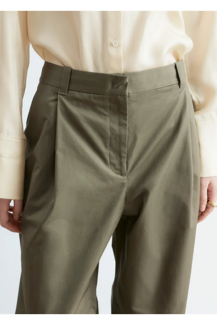 가벼운 코튼 소재의 하이 웨이스트 트라우저예요. 스트레이트 레그와 깔끔한 프레스 플리츠가 특징이며 측면의 솔기 포켓, 뒷면의 웰트 포켓, 앞면의 지퍼와 후크 앤 바 클로저가 자리해 있어요. 산뜻한 티셔츠 또는 테일러드 블라우스와 함께 세련된 룩을 연출해 보세요.