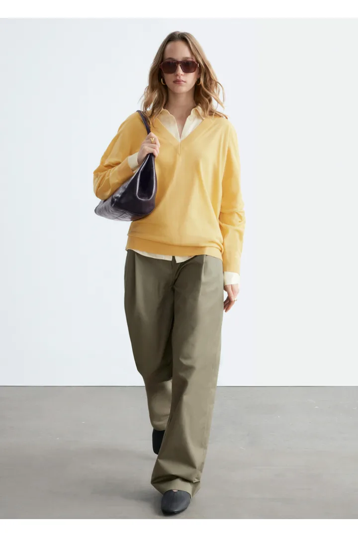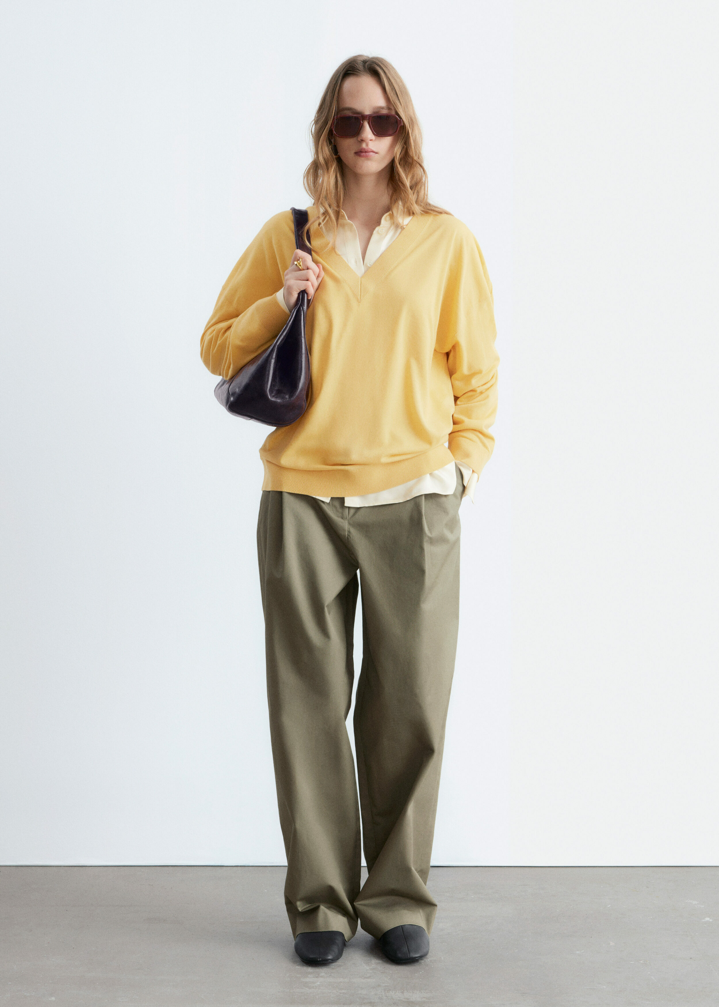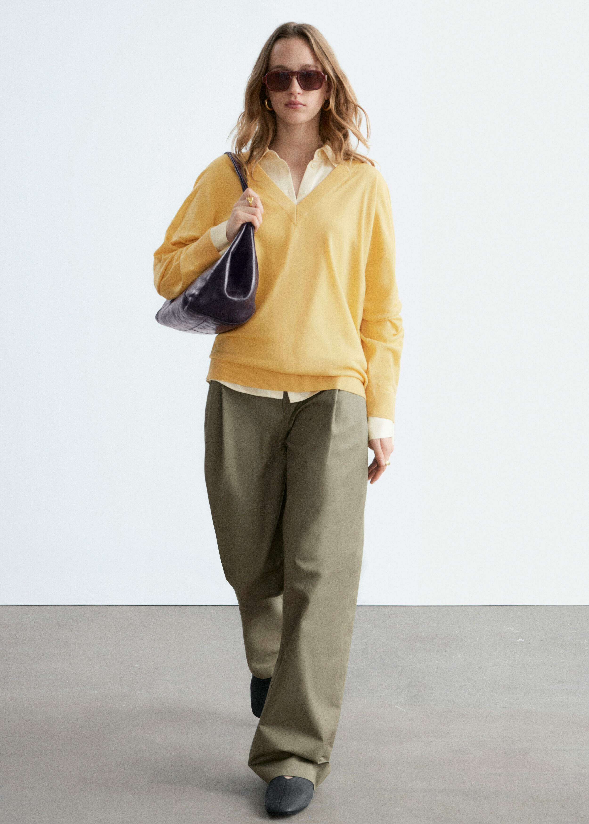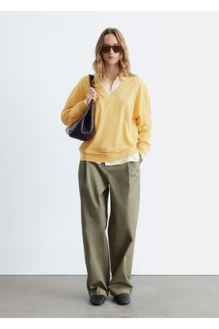 가벼운 코튼 소재의 하이 웨이스트 트라우저예요. 스트레이트 레그와 깔끔한 프레스 플리츠가 특징이며 측면의 솔기 포켓, 뒷면의 웰트 포켓, 앞면의 지퍼와 후크 앤 바 클로저가 자리해 있어요. 산뜻한 티셔츠 또는 테일러드 블라우스와 함께 세련된 룩을 연출해 보세요.