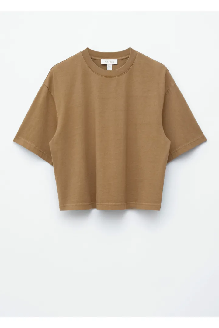 부드러운 코튼 저지 소재로 탄생한 티셔츠예요. 여유롭고 박시한 쉐입, 클래식한 크루넥, 너비감 있는 쇼트 슬리브가 특징이에요. 데일리로 연출하기에 완벽한 에센셜 아이템이랍니다.