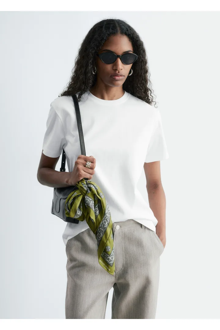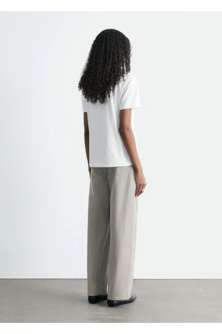 부드러운 코튼 저지 소재의 티셔츠예요. 스트레이트 실루엣과 크루 네크라인이 특징인 아이템으로 테일러드 트라우저 안에 넣어 연출하거나, 블레이저 안에 레이어링하여 깔끔하고 자연스러운 룩을 연출해 보세요.