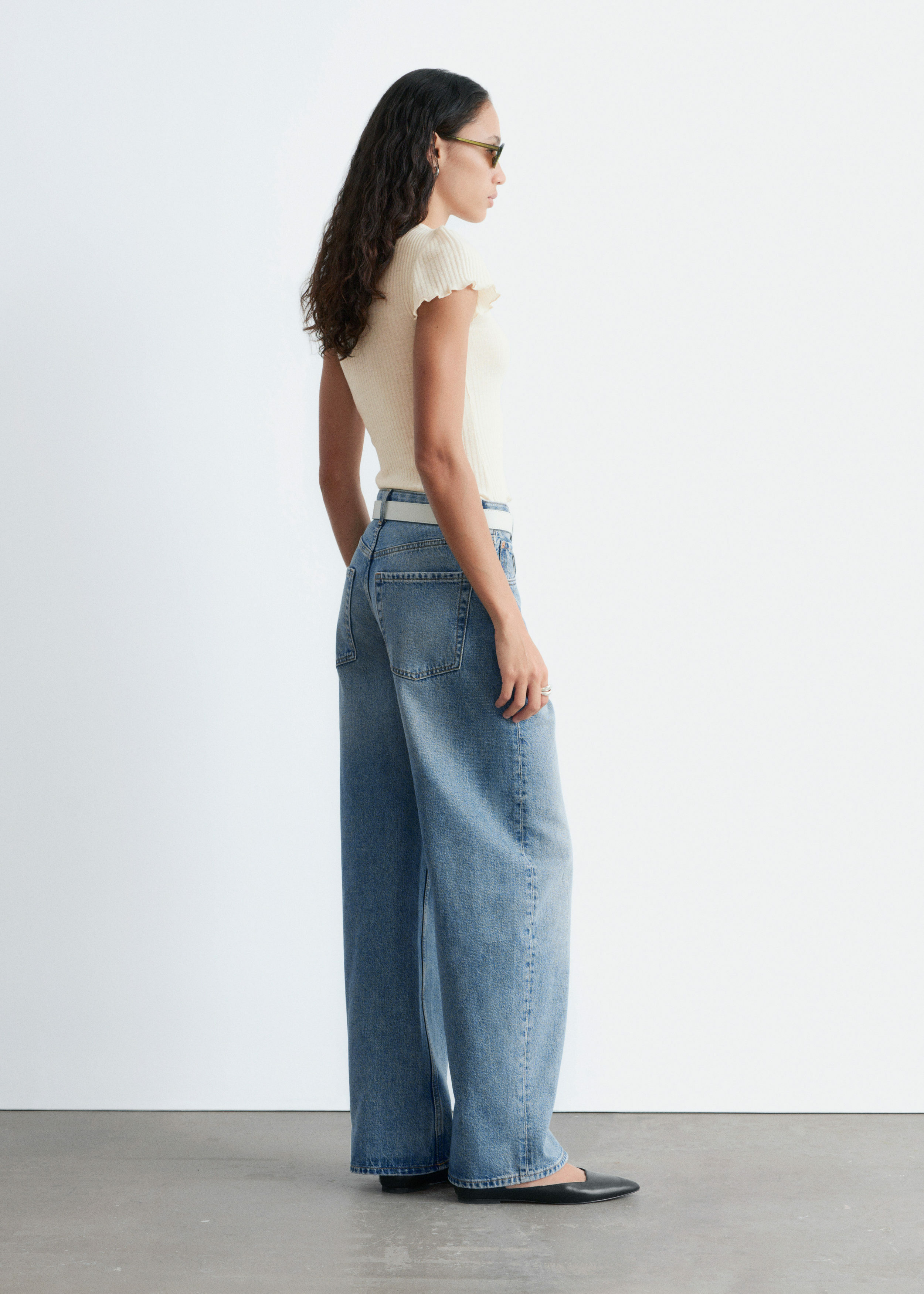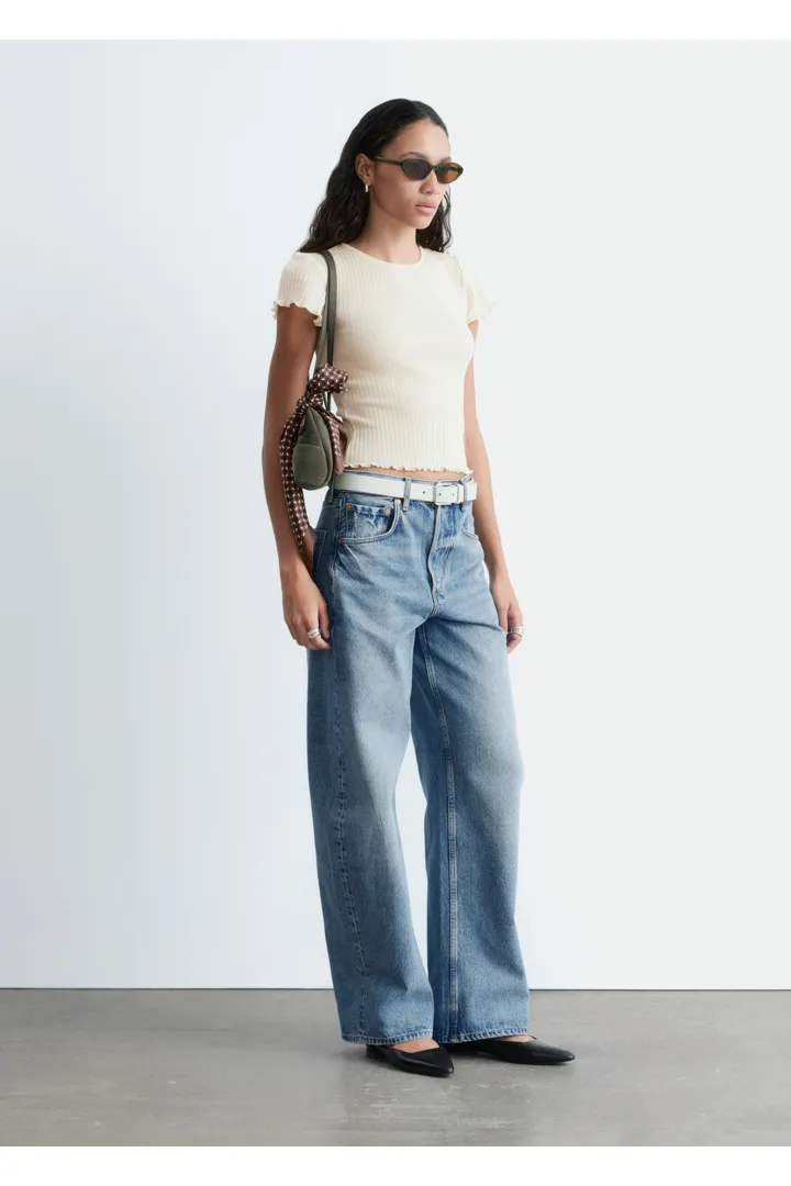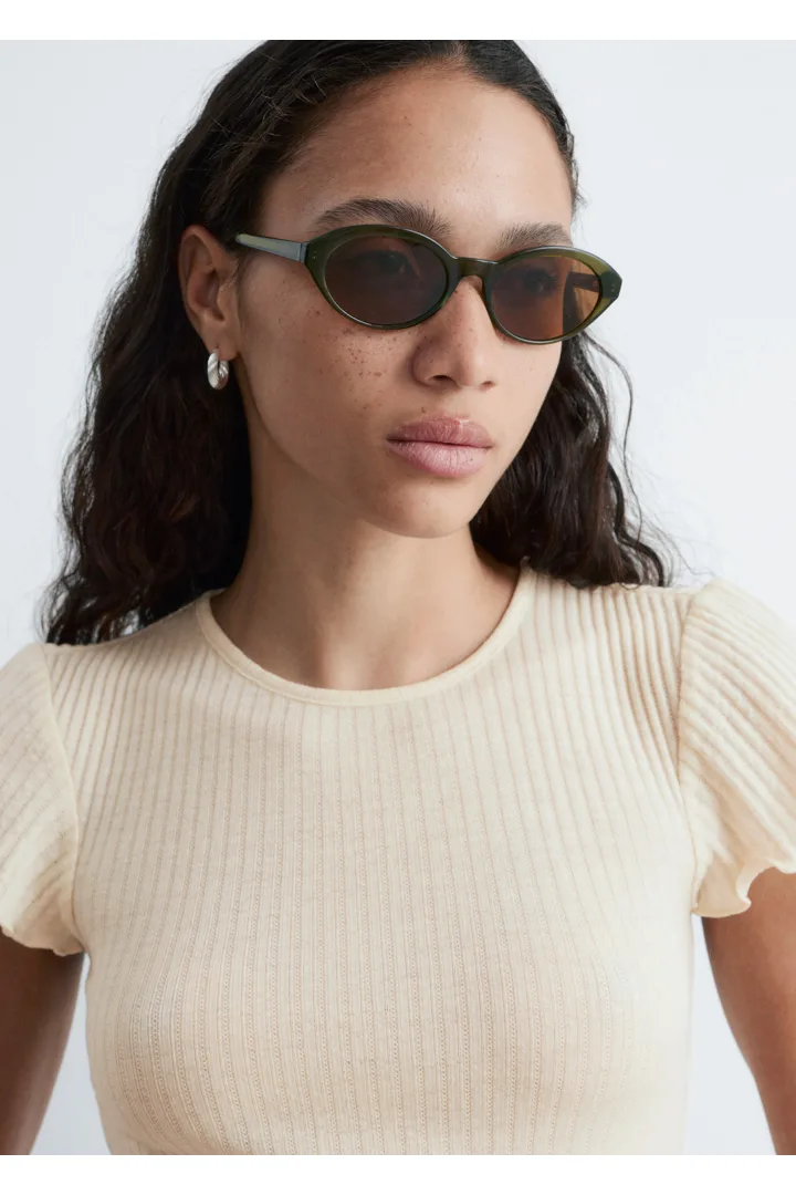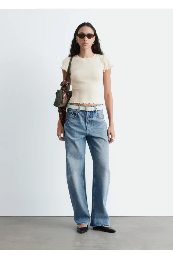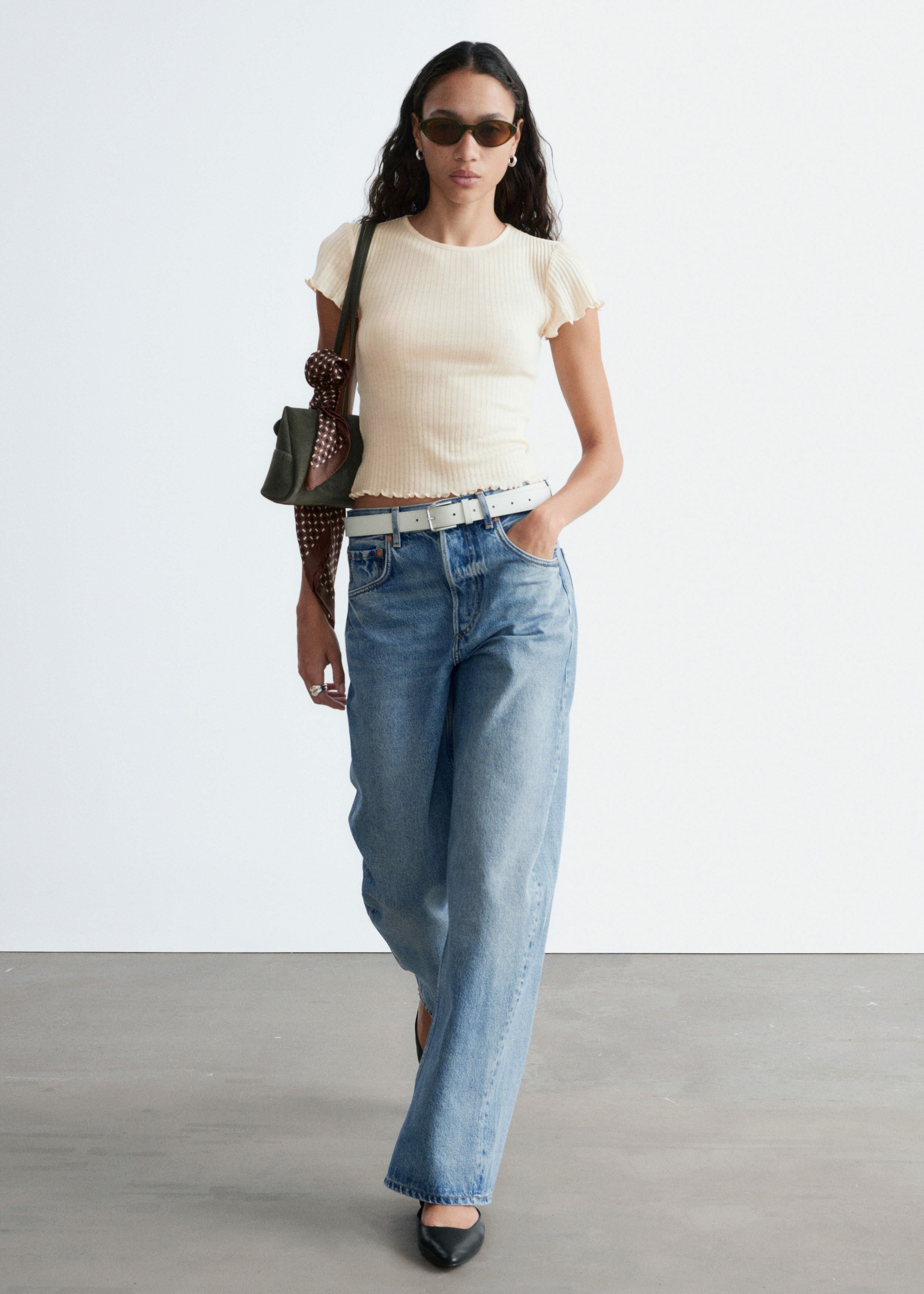 립 텍스처의 얇은 저지 울로 탄생한 티셔츠예요. 핏 되는 실루엣과 섬세한 캡 슬리브, 전면 스캘럽 트리밍이 매력적이랍니다.