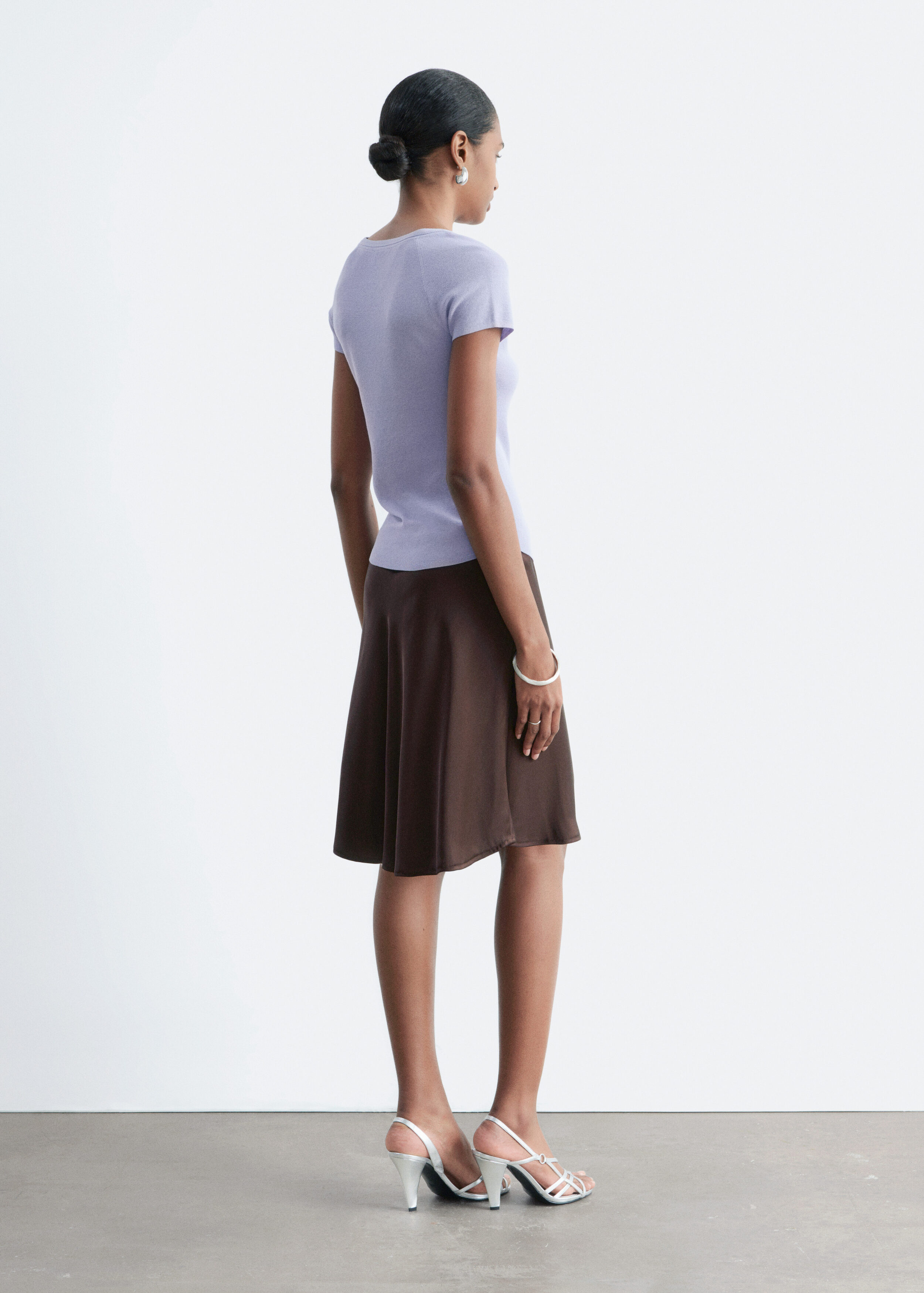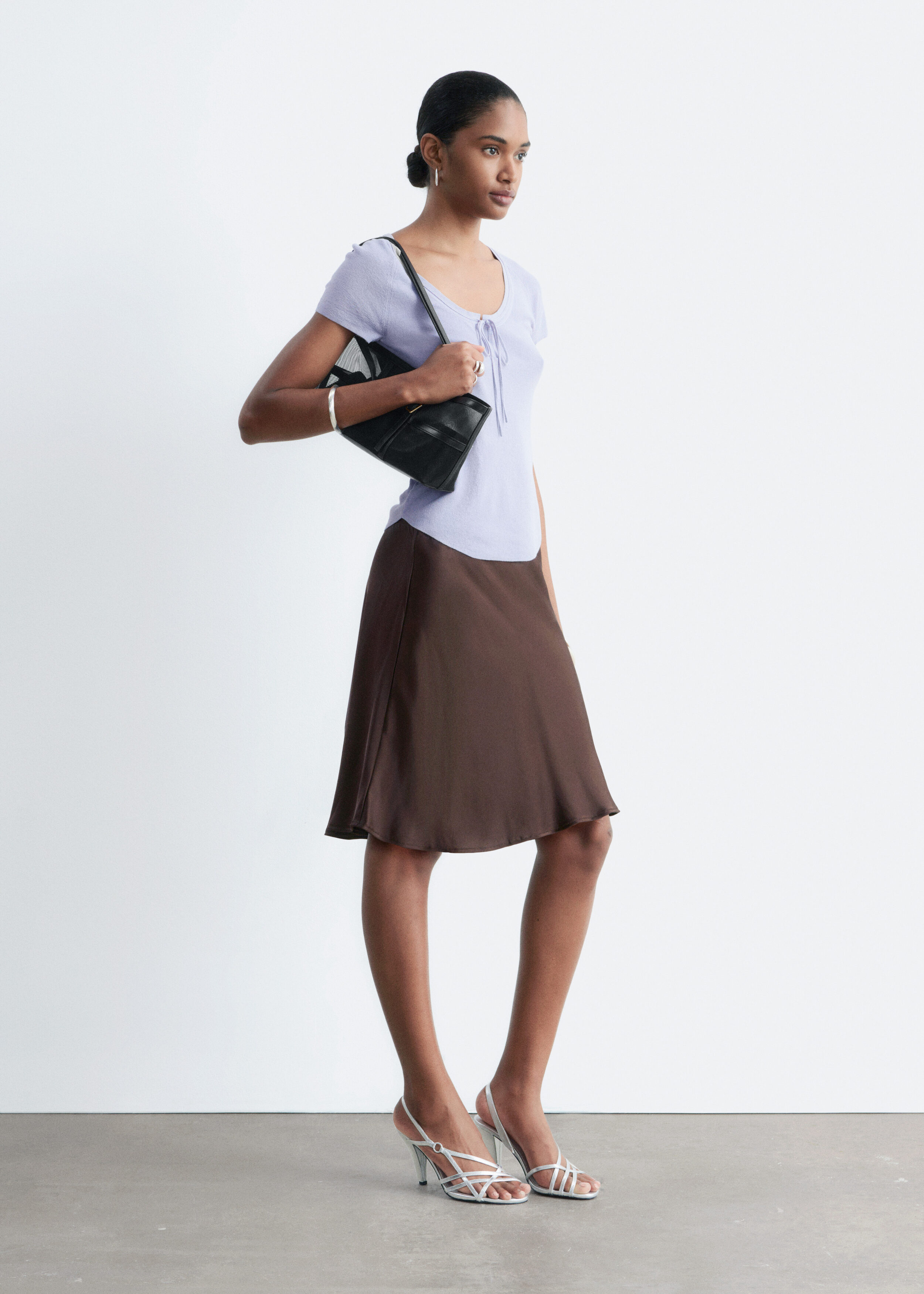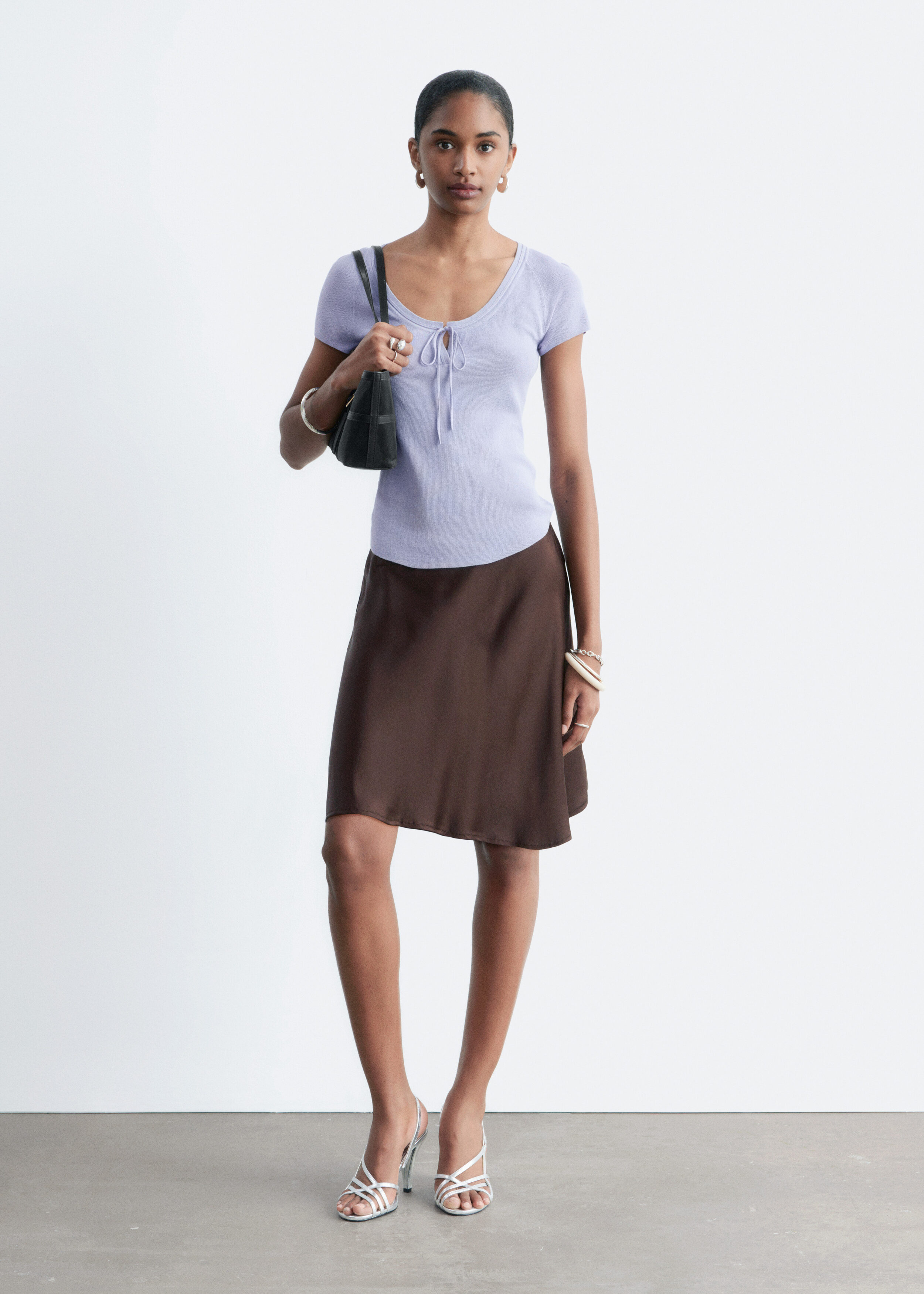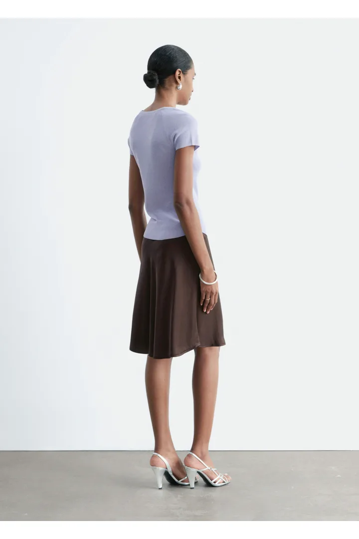 부드럽고 유연한 감각의 비스코스 혼방 니트로 탄생한 탑이에요. 앞면 중앙의 키홀 디테일과 타이가 특징이에요. 레글란 쇼트 슬리브, 립 트리밍, 곡선형 밑단이 자리해 있답니다.