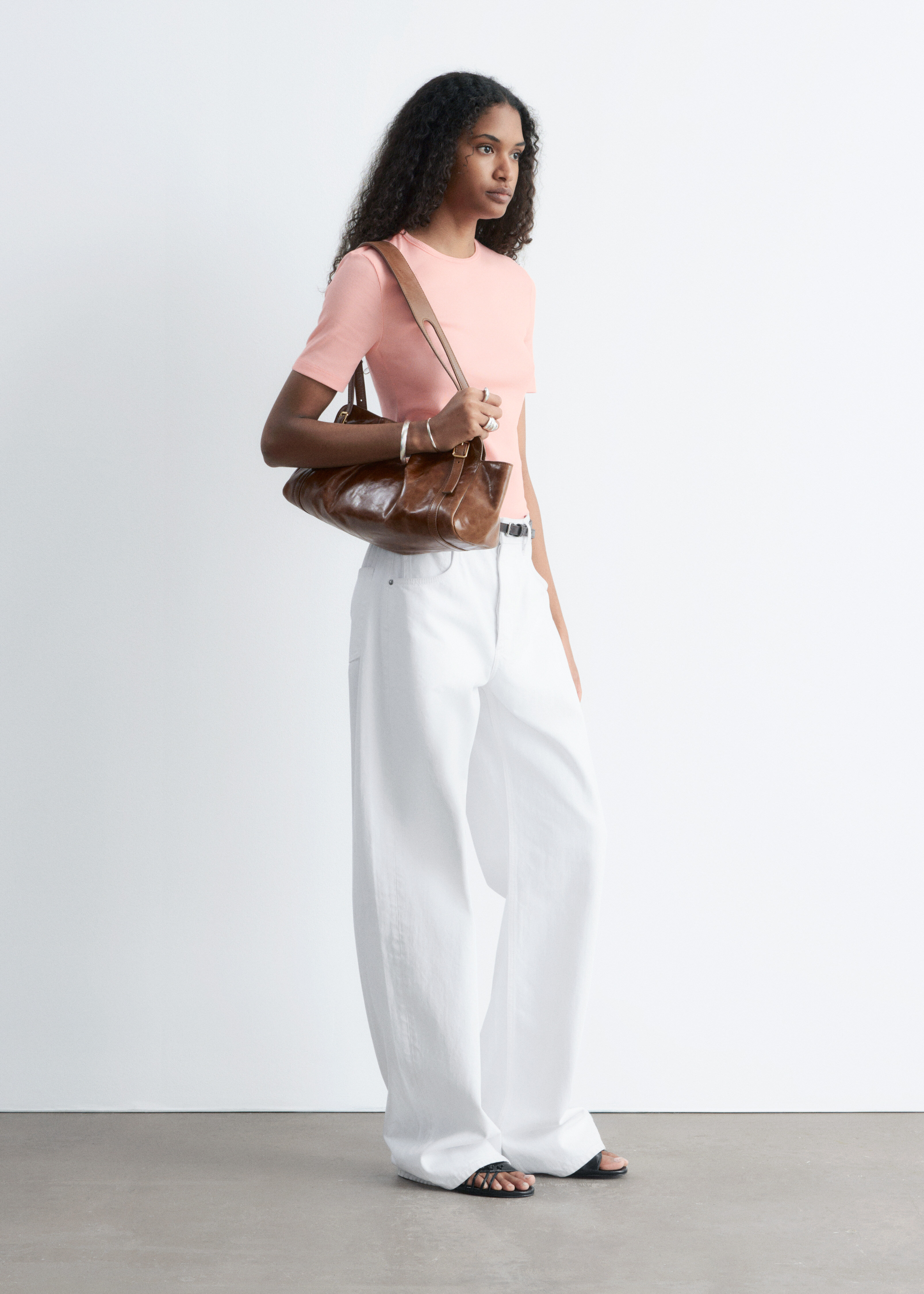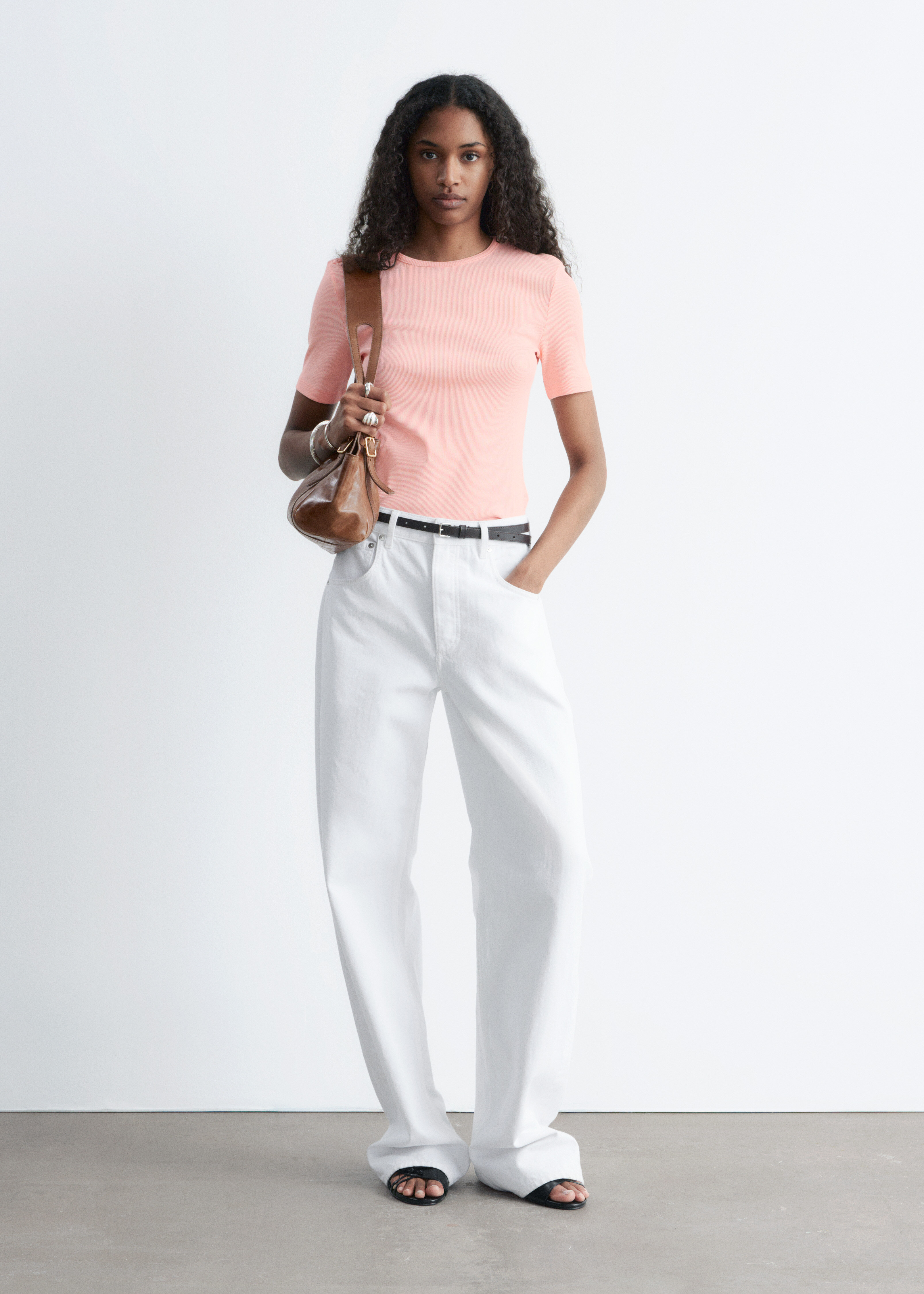 부드럽고 신축성 좋은 코튼 혼방 소재의 립 티셔츠예요. 슬림한 실루엣, 라운드 넥, 쇼트 슬리브가 특징이에요. 데님 진 또는 미니 스커트와 매치해 보세요.