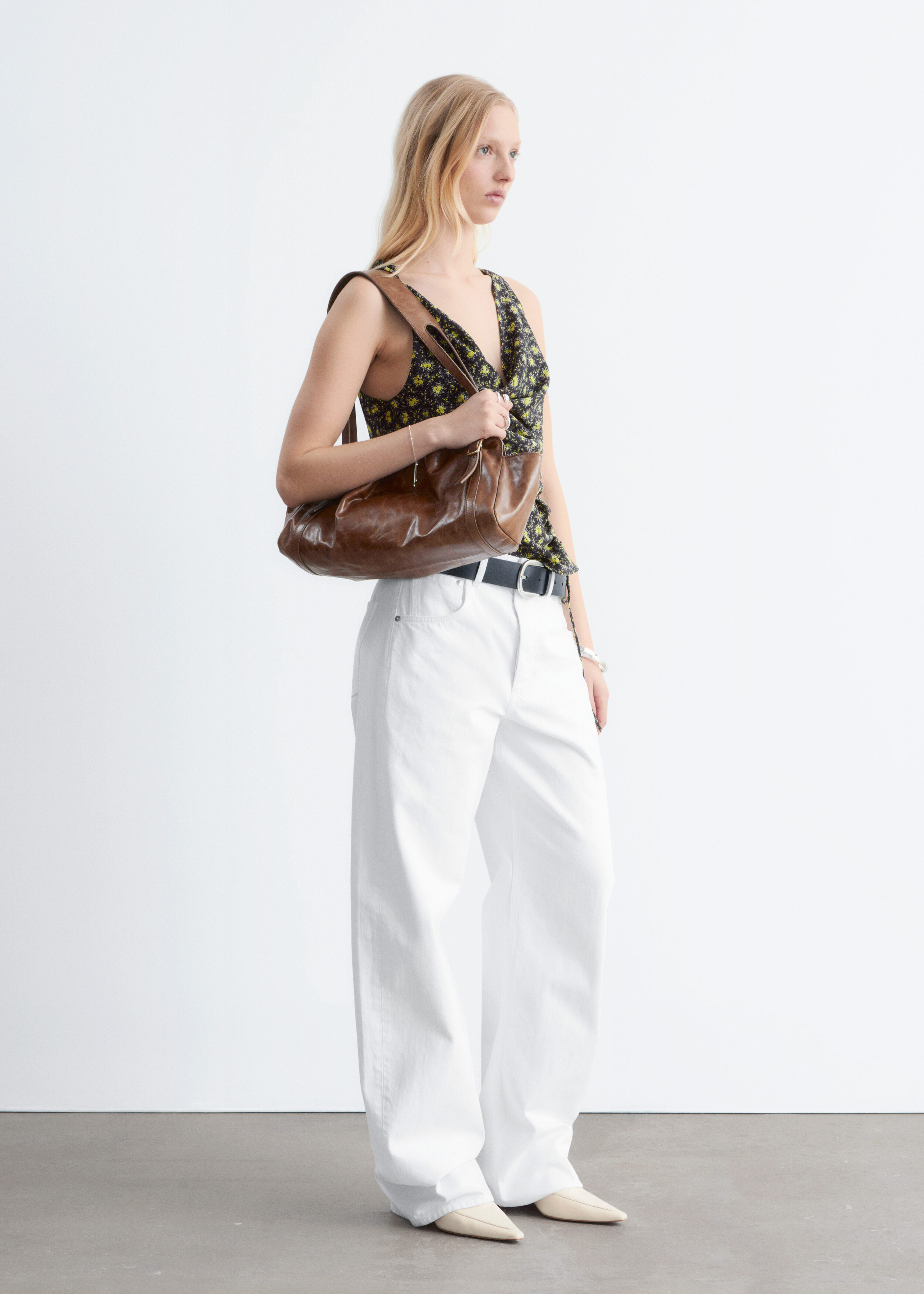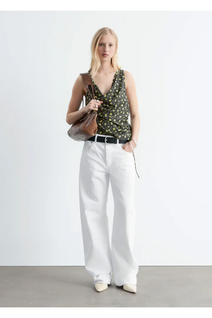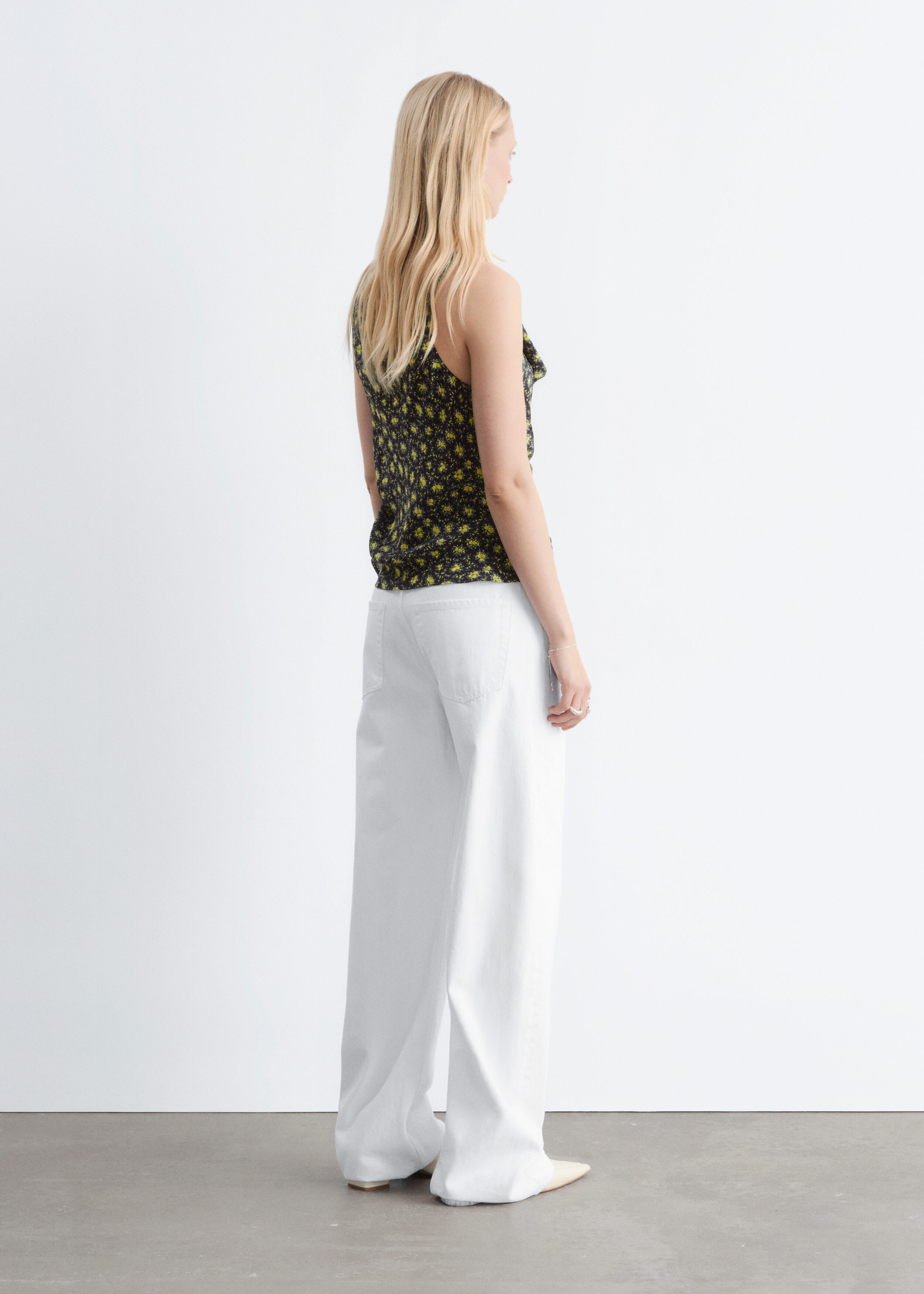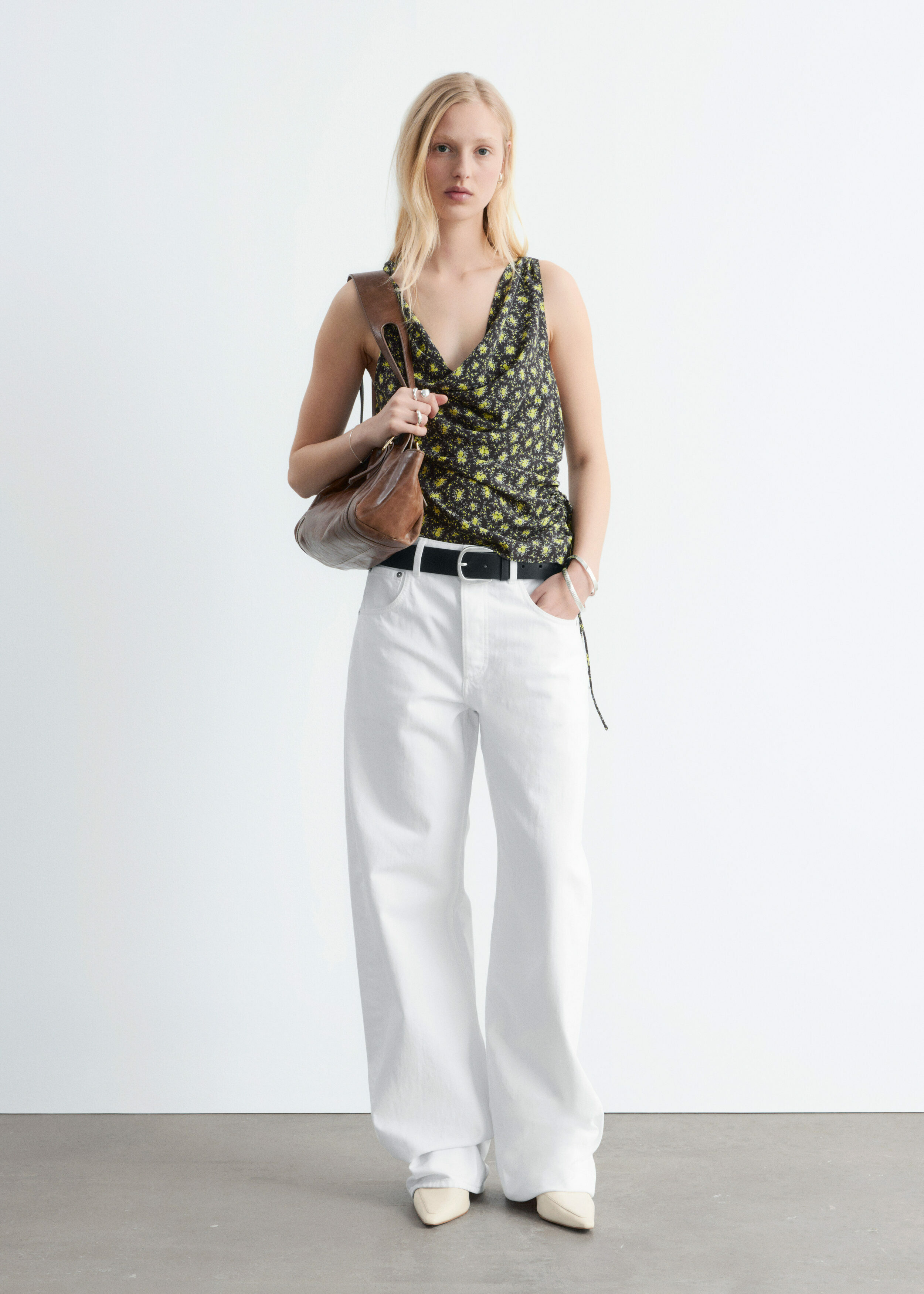 100% 멀베리 실크 소재로 탄생한 슬리브리스 탑이에요. 부드러운 카울 네크라인, 트위스트 룩의 싱글 숄더 스트랩, 그리고 원하는 드레이프 스타일로 연출할 수 있는 측면부 드로스트링이 자리해 있어요.
