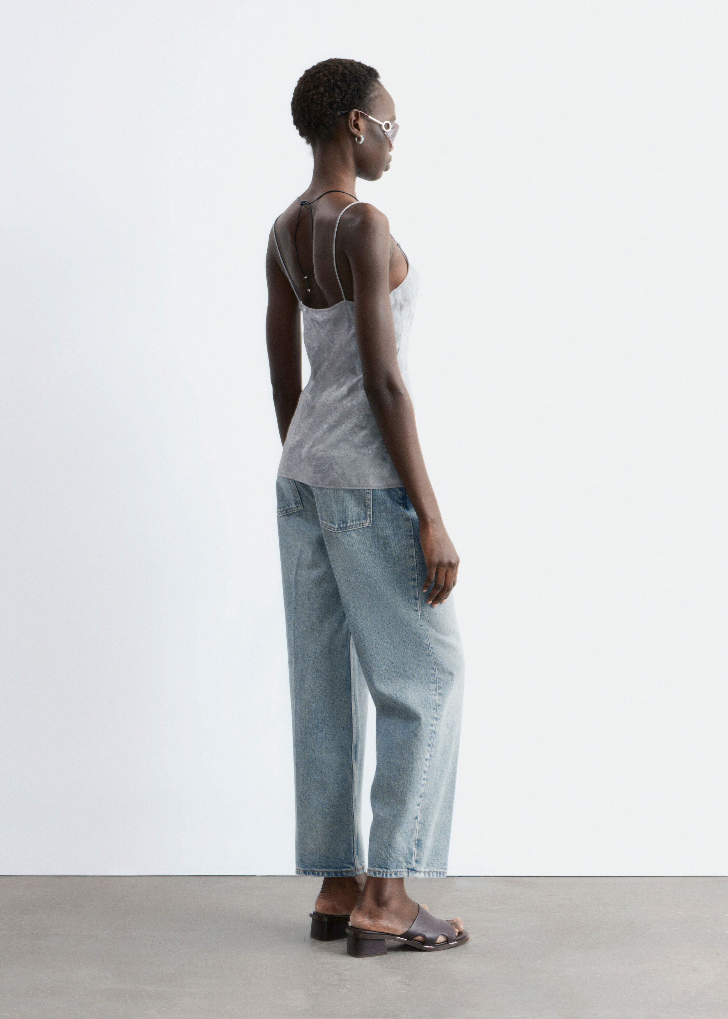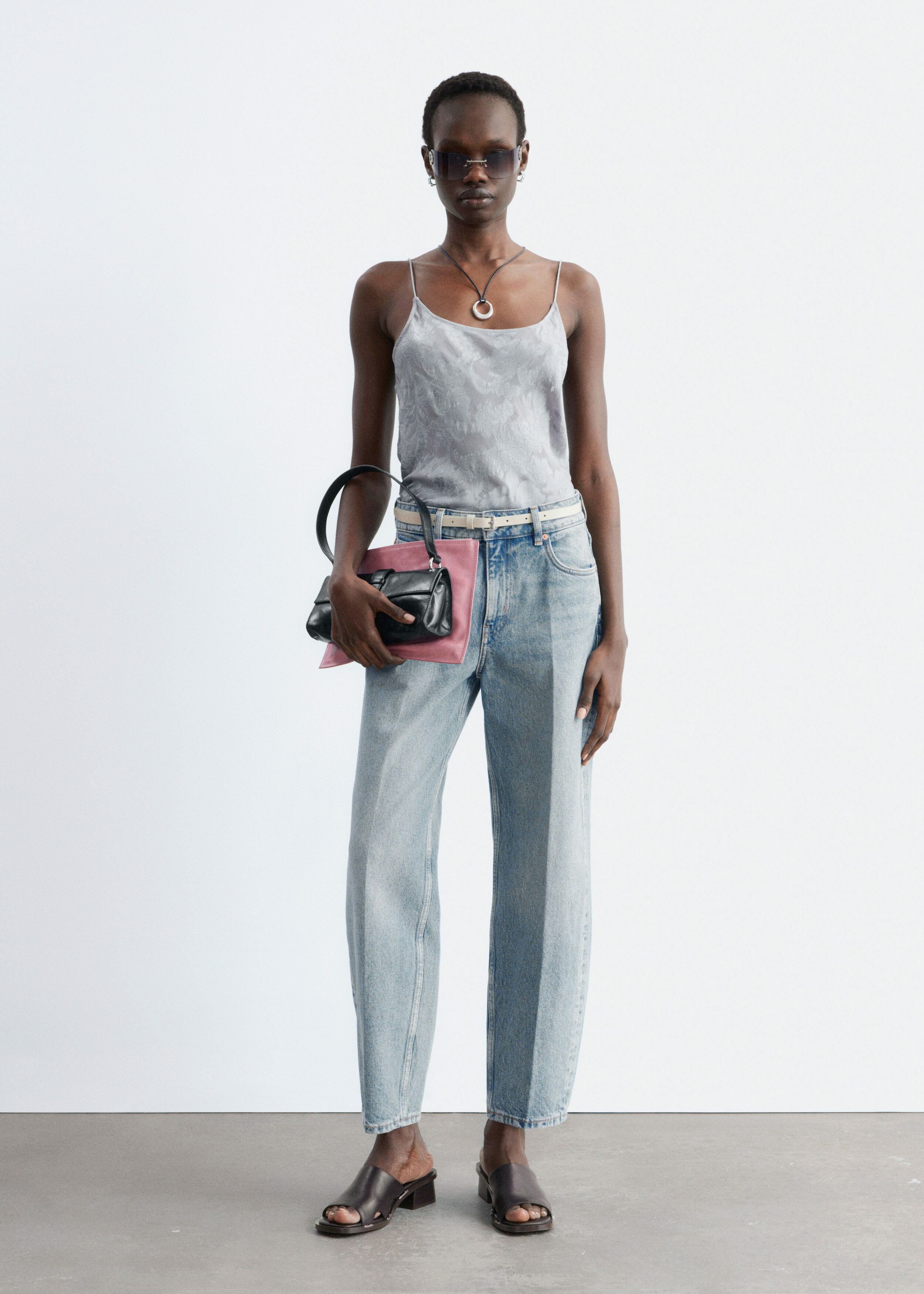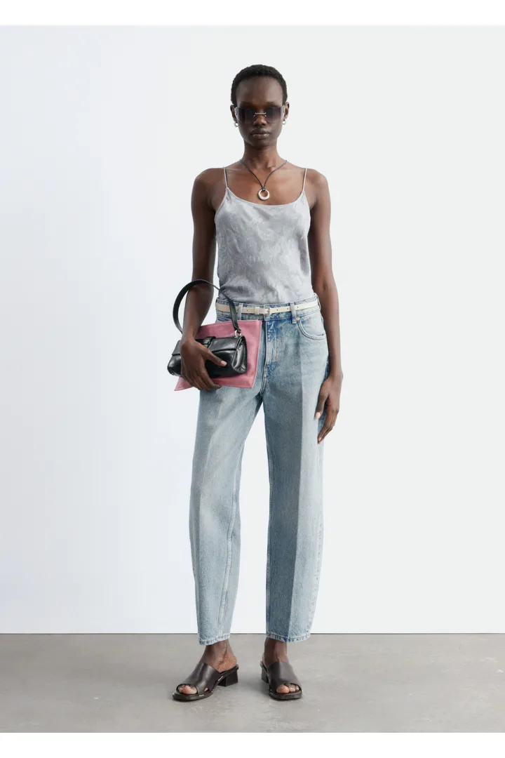 90년대 미니멀리즘을 재해석한 섬세한 무드의 캐미솔이에요. 가볍고 유려한 드레이프감이 돋보이는 실크 & 비스코스 혼방 소재로 탄생했으며, 내추럴하고 편안한 움직임을 연출한답니다. 스파게티 스트랩과 정교한 플로럴 자카드 디테일이 매력을 더해주어요.
