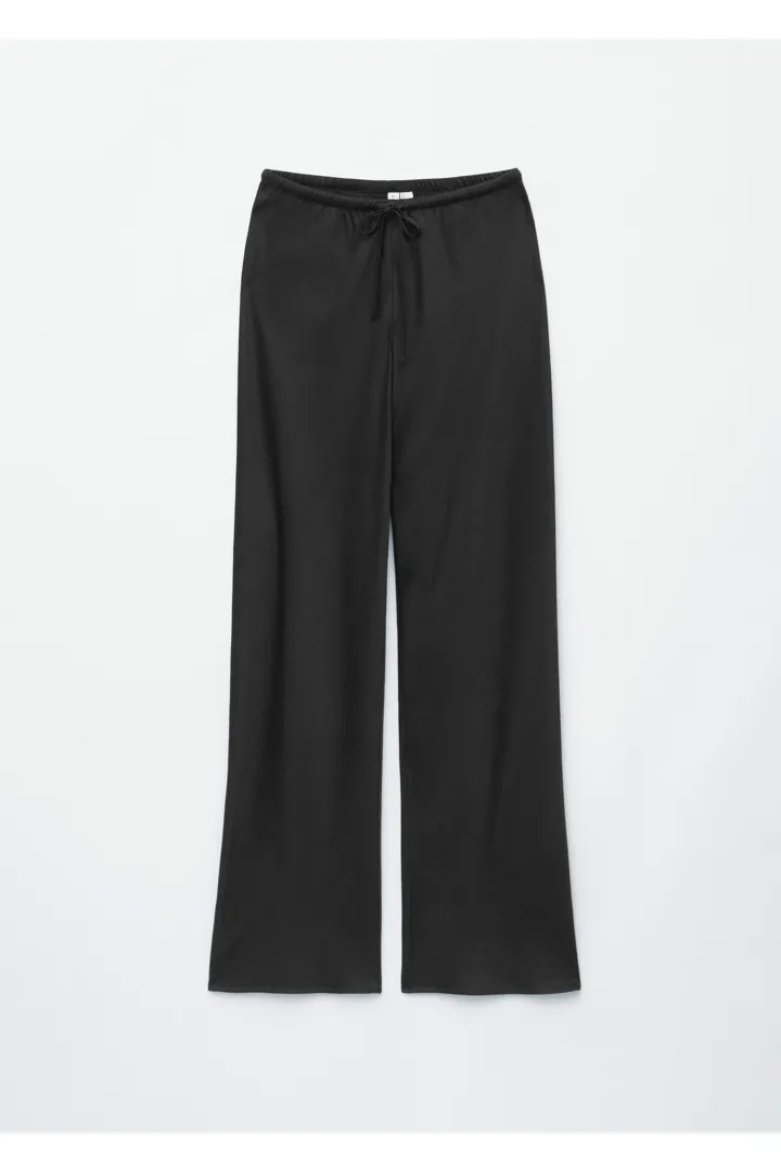 입는 순간 기분이 좋아지는 로우 웨이스트 트라우저예요. 루즈 실루엣과 유려한 트윌 혼방 소재로 탄생했으며, 동일 소재의 드로스트링이 있는 신축성 좋은 허리밴드로 핏 조절이 가능하답니다. 옆 솔기가 없는 디자인으로 깔끔하고 단정한 룩이 특징이에요.