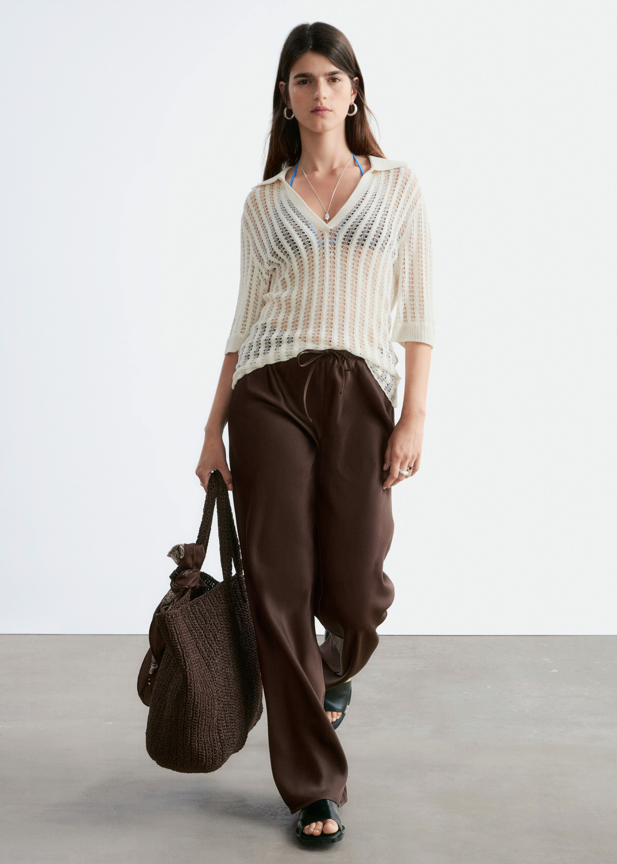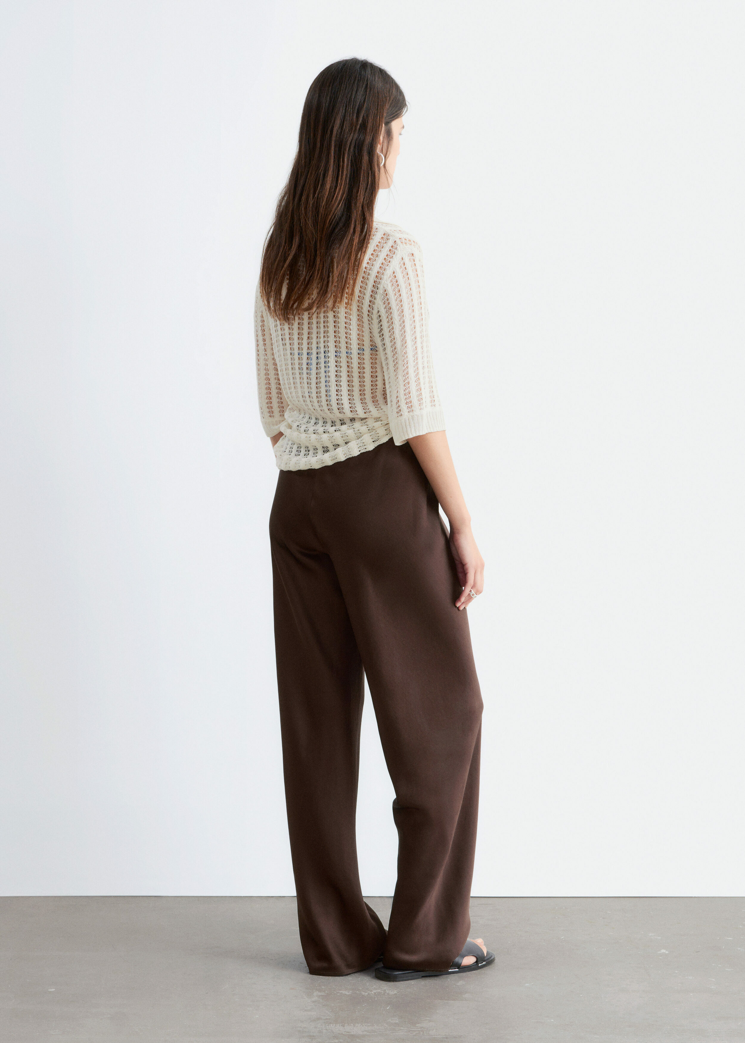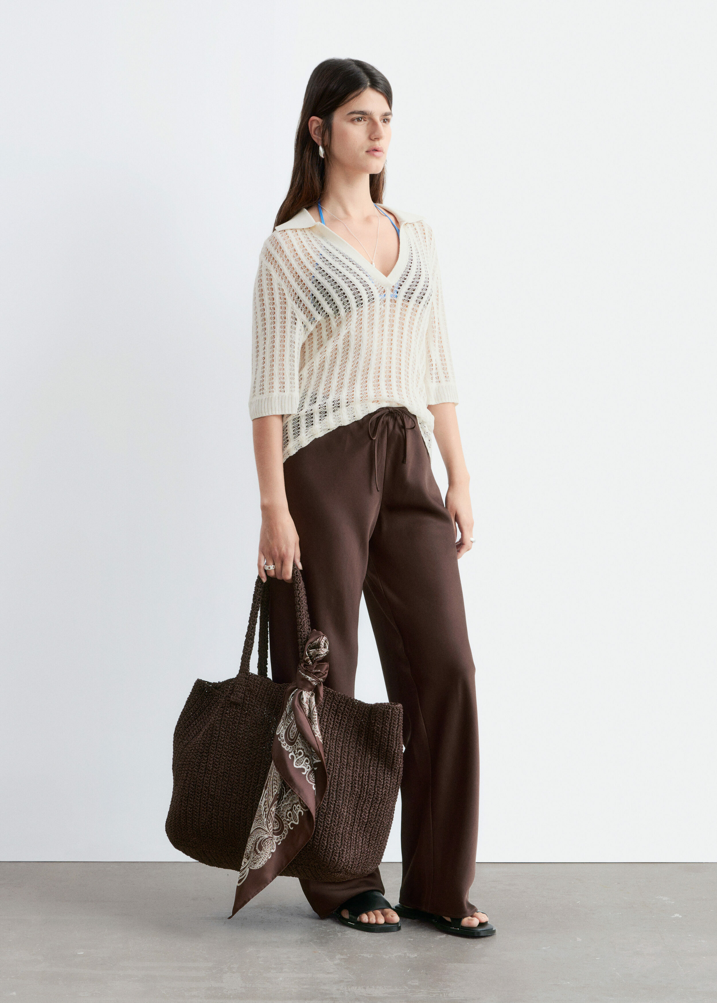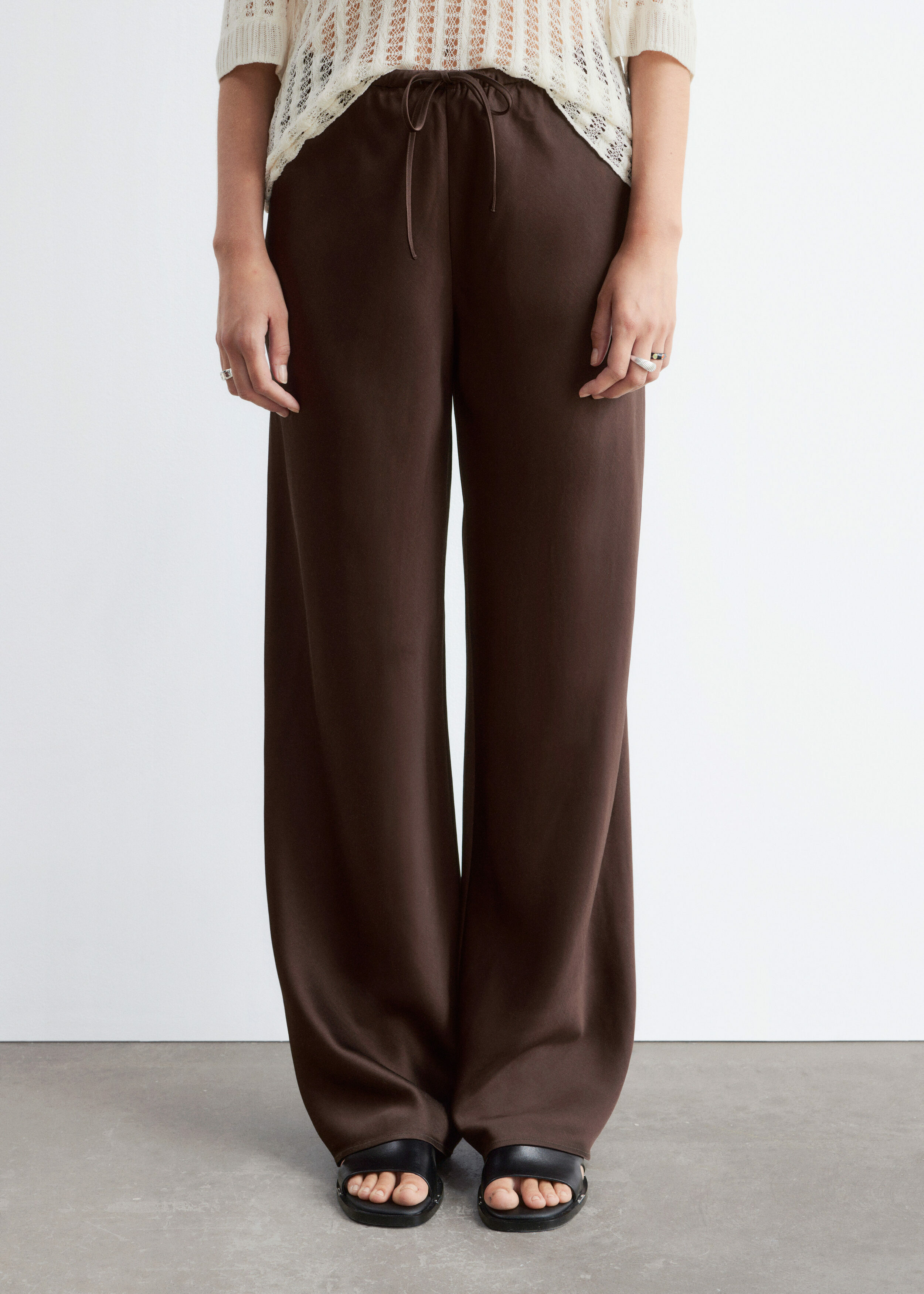 입는 순간 기분이 좋아지는 로우 웨이스트 트라우저예요. 루즈 실루엣과 유려한 트윌 혼방 소재로 탄생했으며, 동일 소재의 드로스트링이 있는 신축성 좋은 허리밴드로 핏 조절이 가능하답니다. 옆 솔기가 없는 디자인으로 깔끔하고 단정한 룩이 특징이에요.