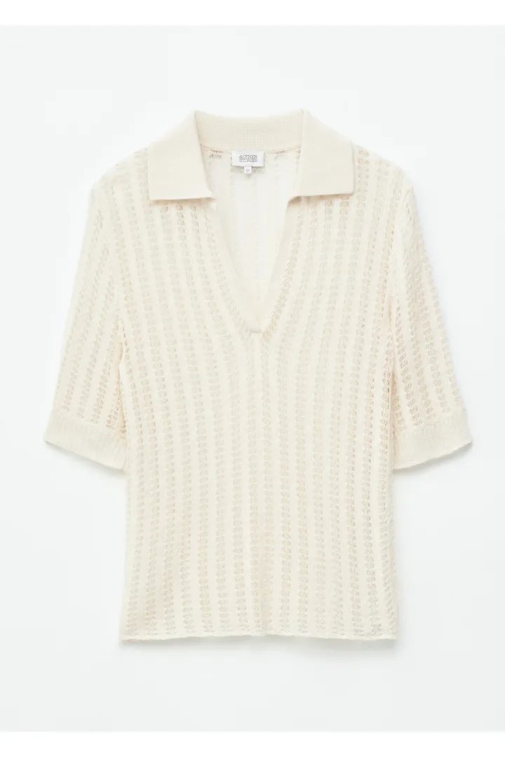 오픈 니트 폴로 탑
