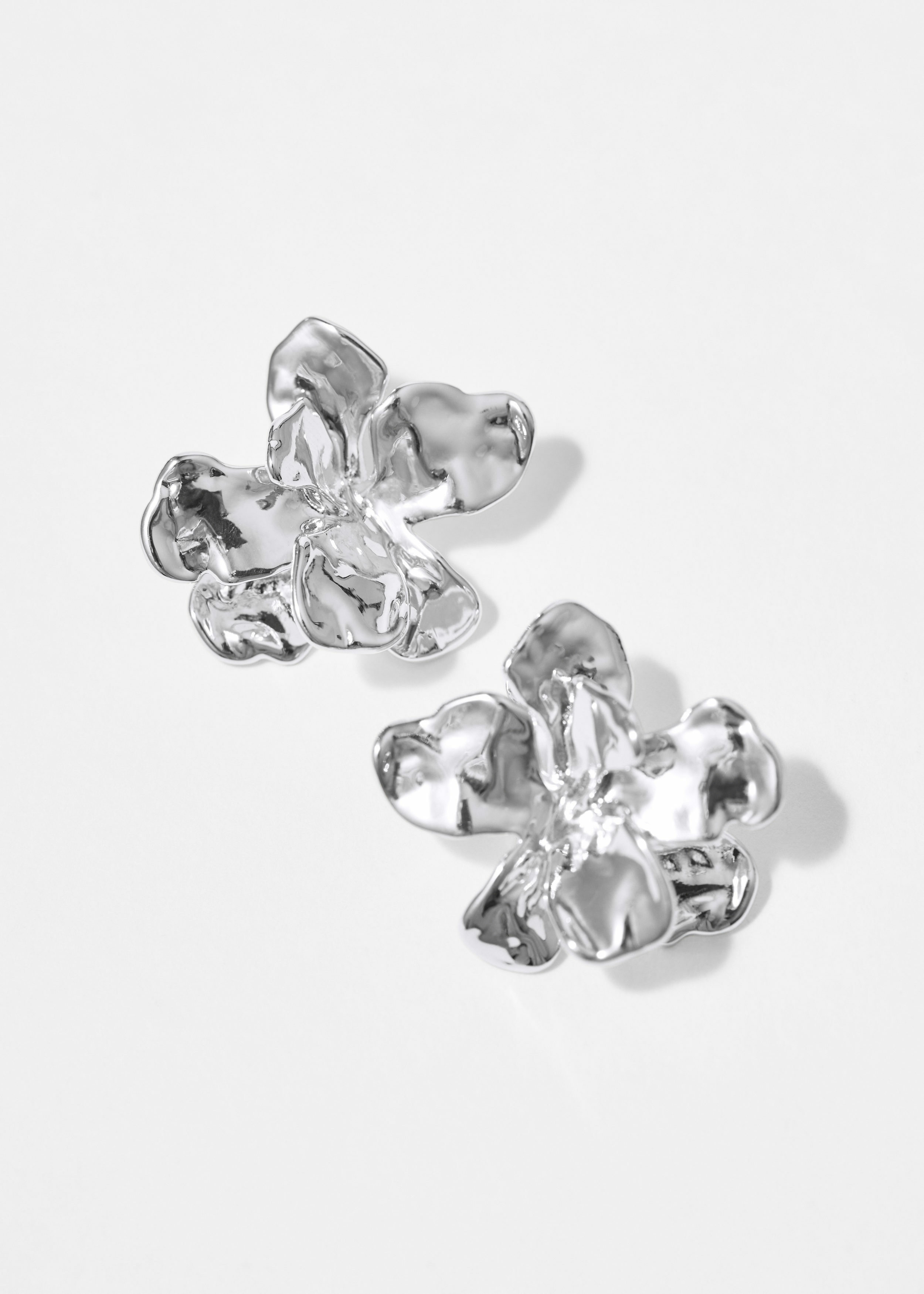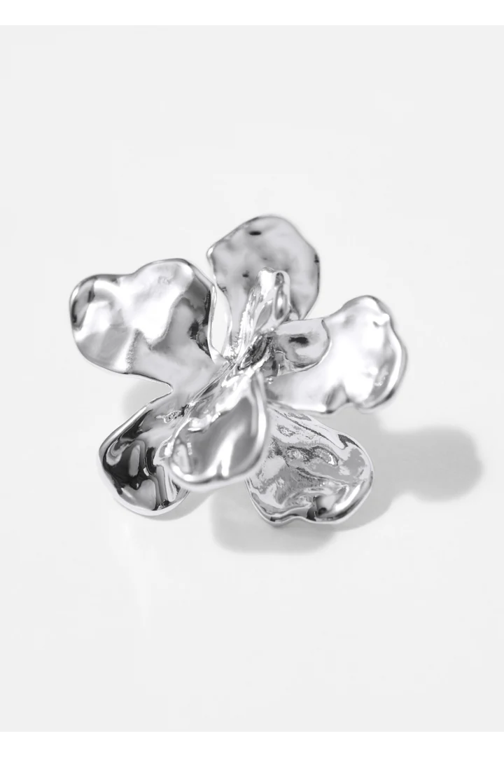 유광 브라스 소재로 탄생한 스터드 이어링이에요. 오버사이즈 플라워 쉐입으로 탄생했으며, 내추럴한 여러 겹의 꽃잎 디테일이 텍스처와 시각적 매력을 더하며, 대담한 무드를 연출해요.