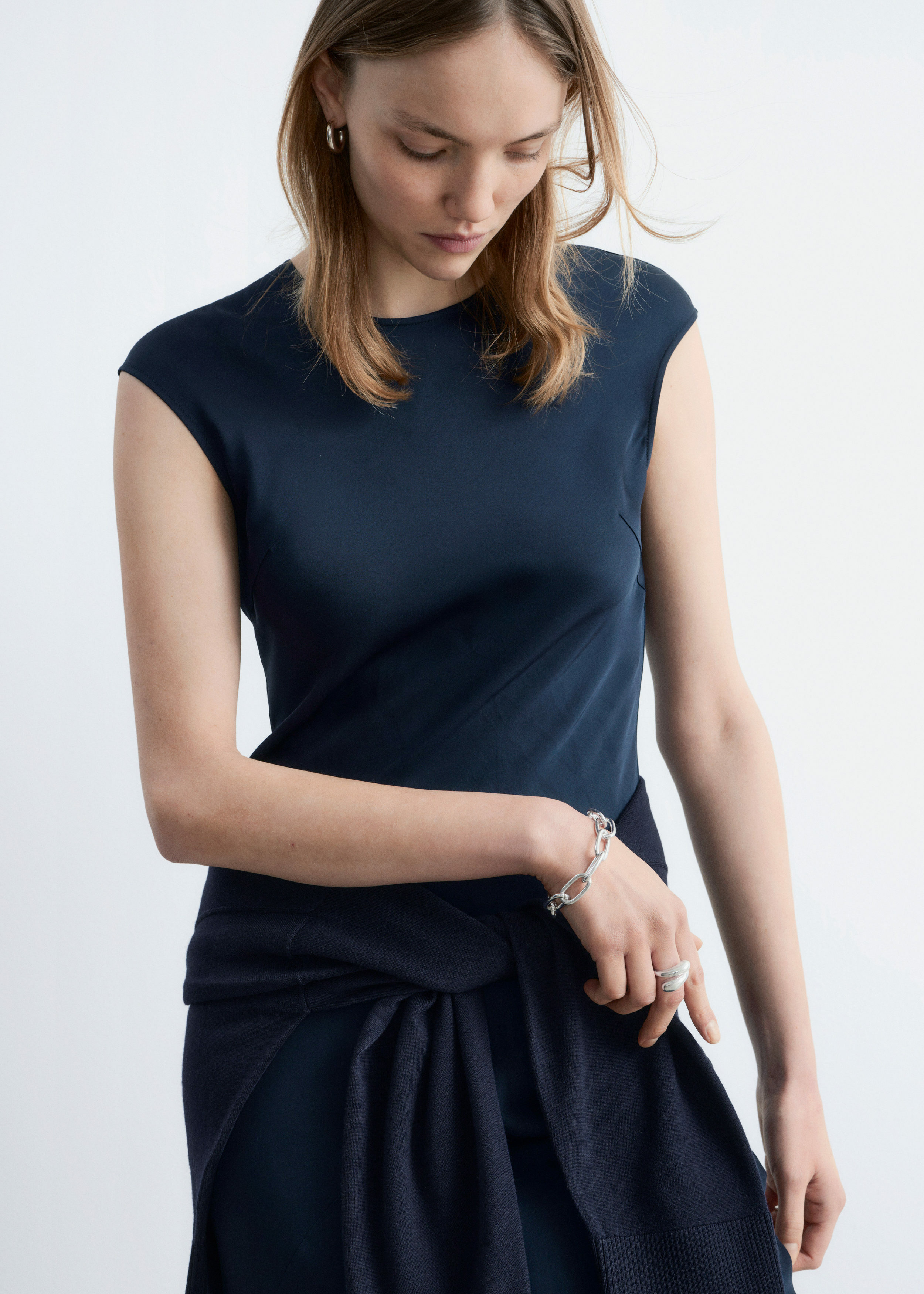 피티드 새틴 맥시 드레스