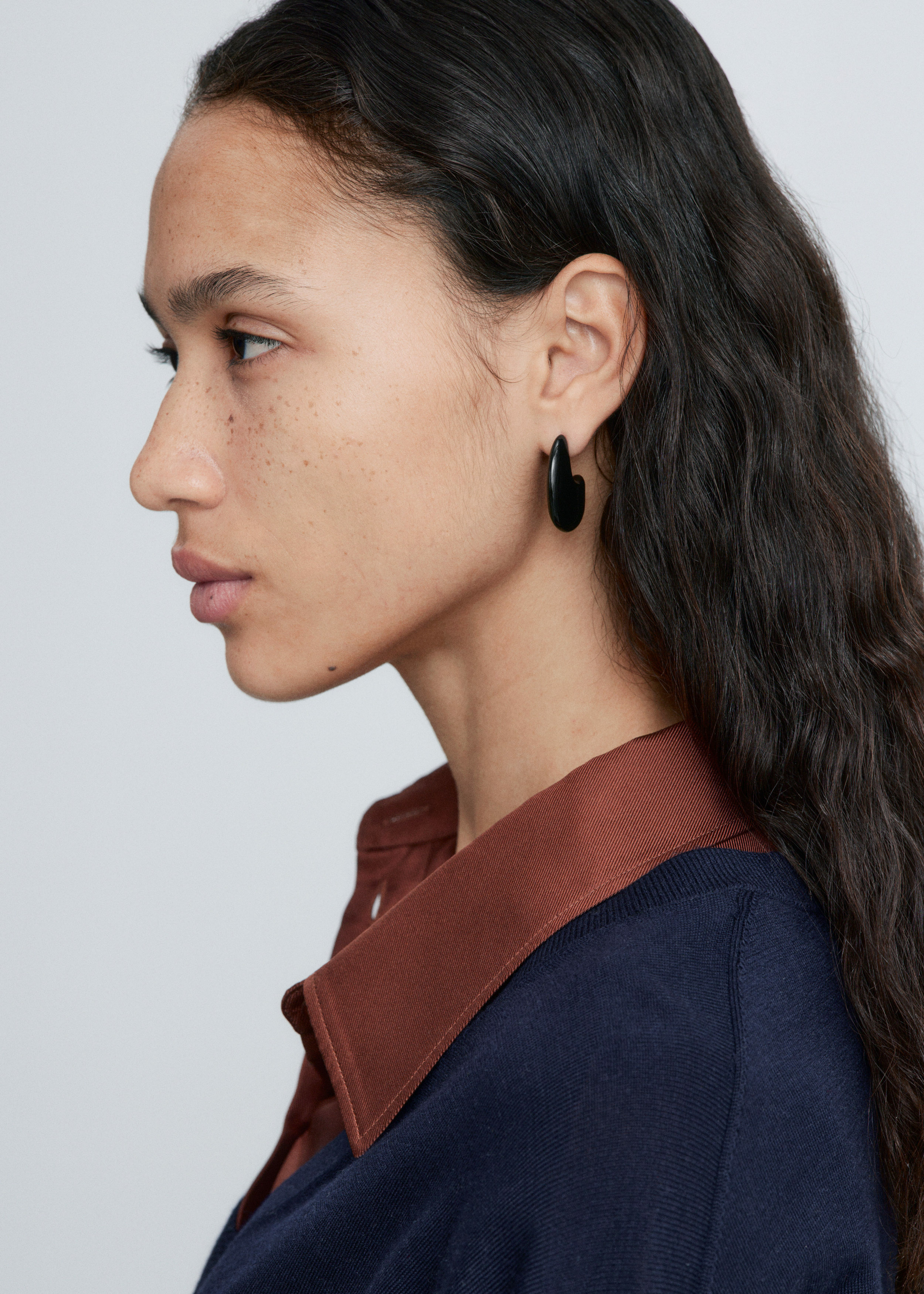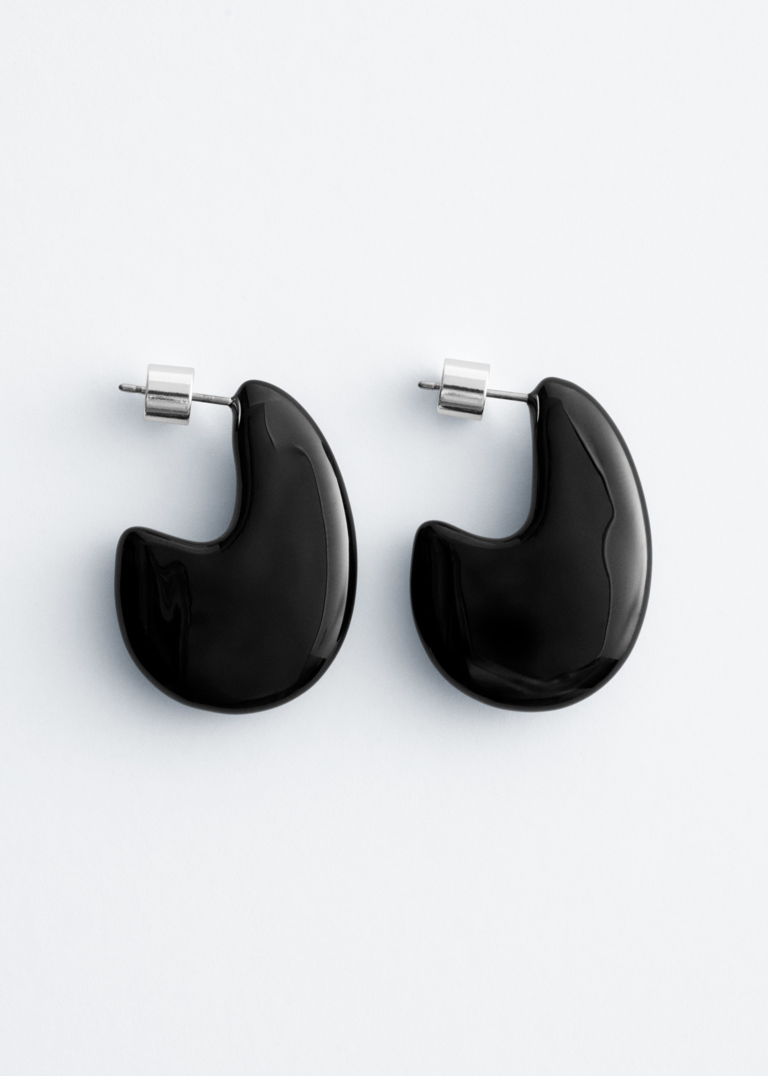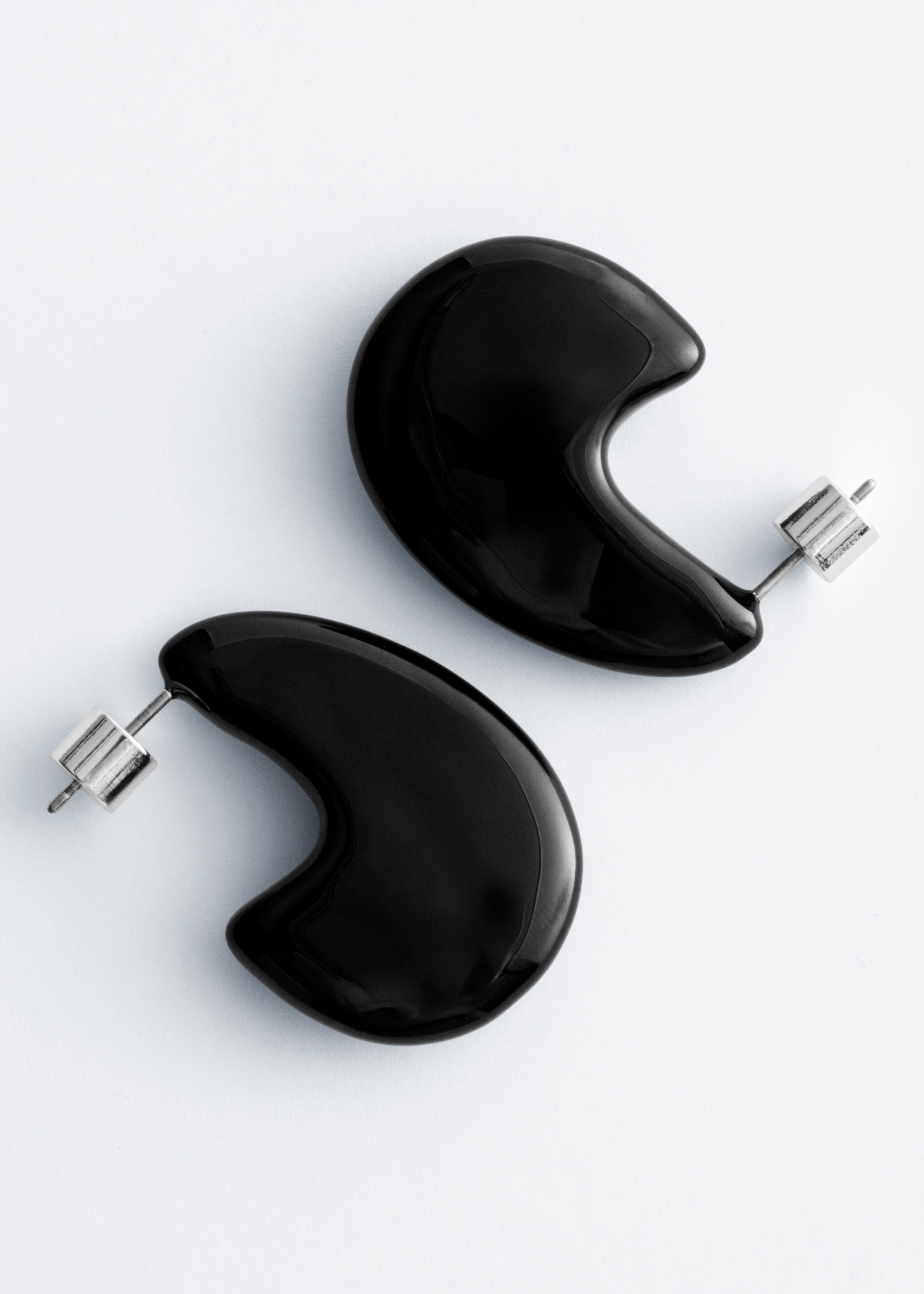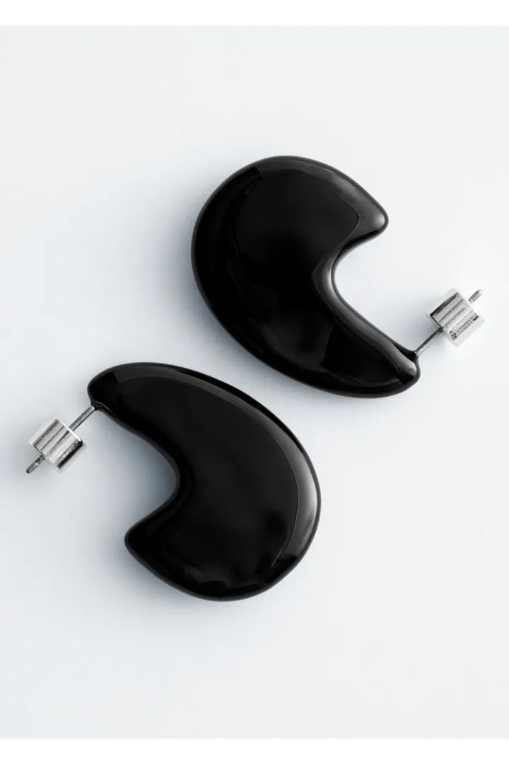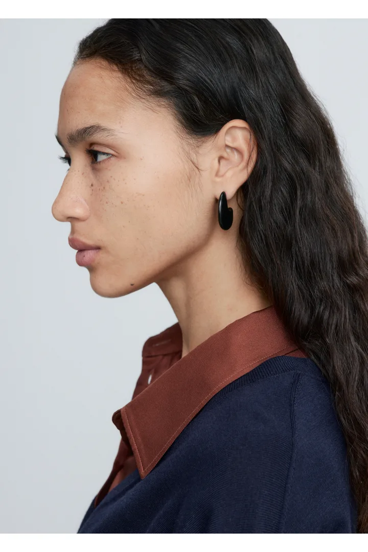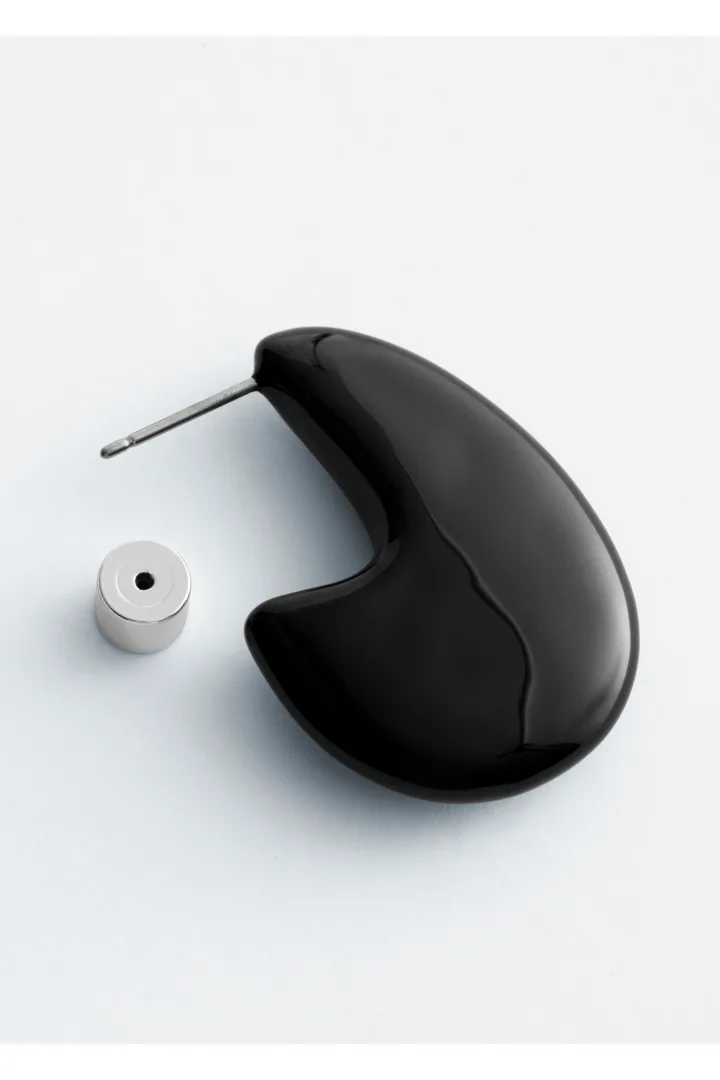 유광 브라스 소재로 탄생한 이어링이에요. 구조적이고 청키한 드롭렛 쉐입이 매력적이며, 푸시백 클로저로 안정적인 핏을 제공한답니다.