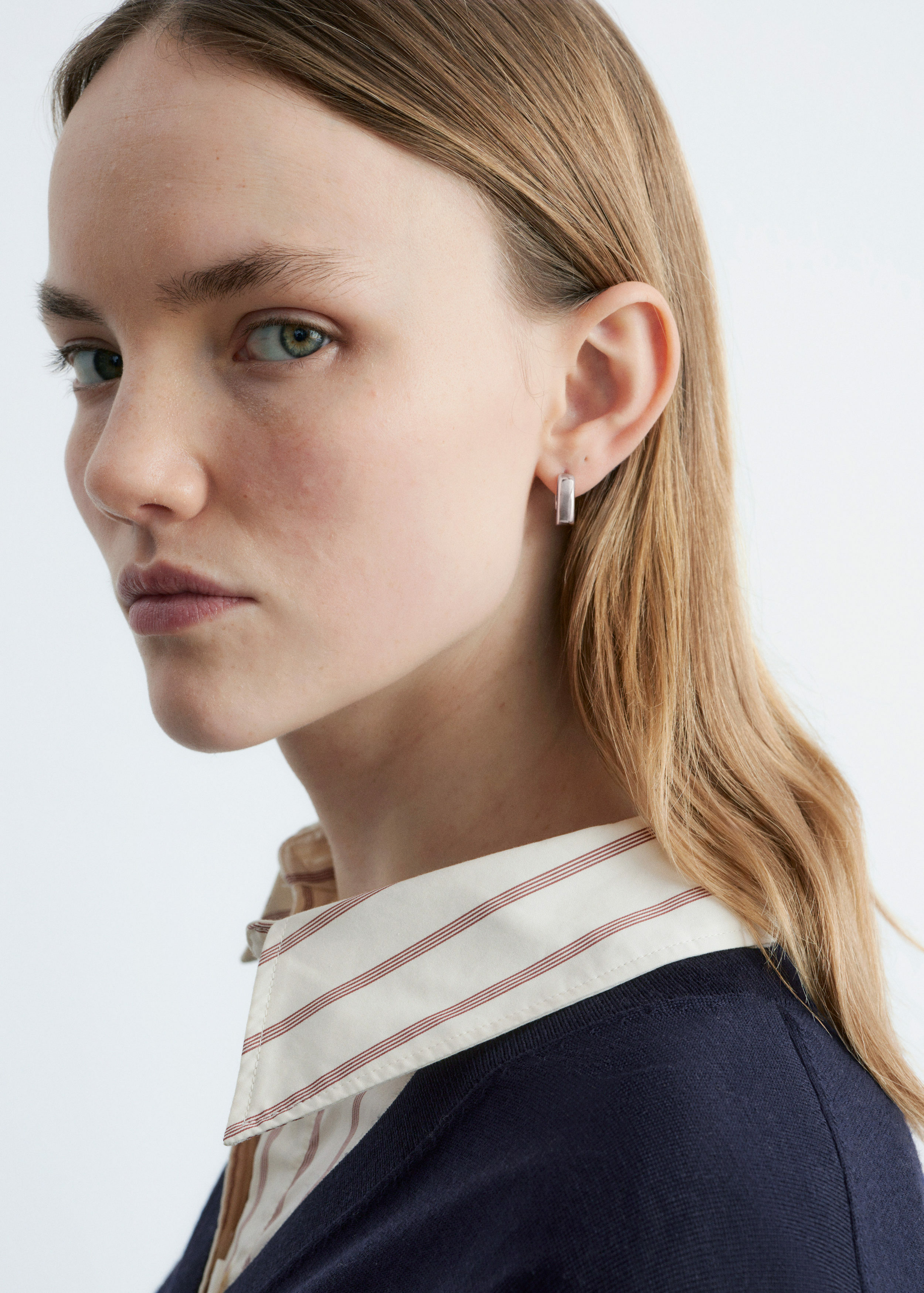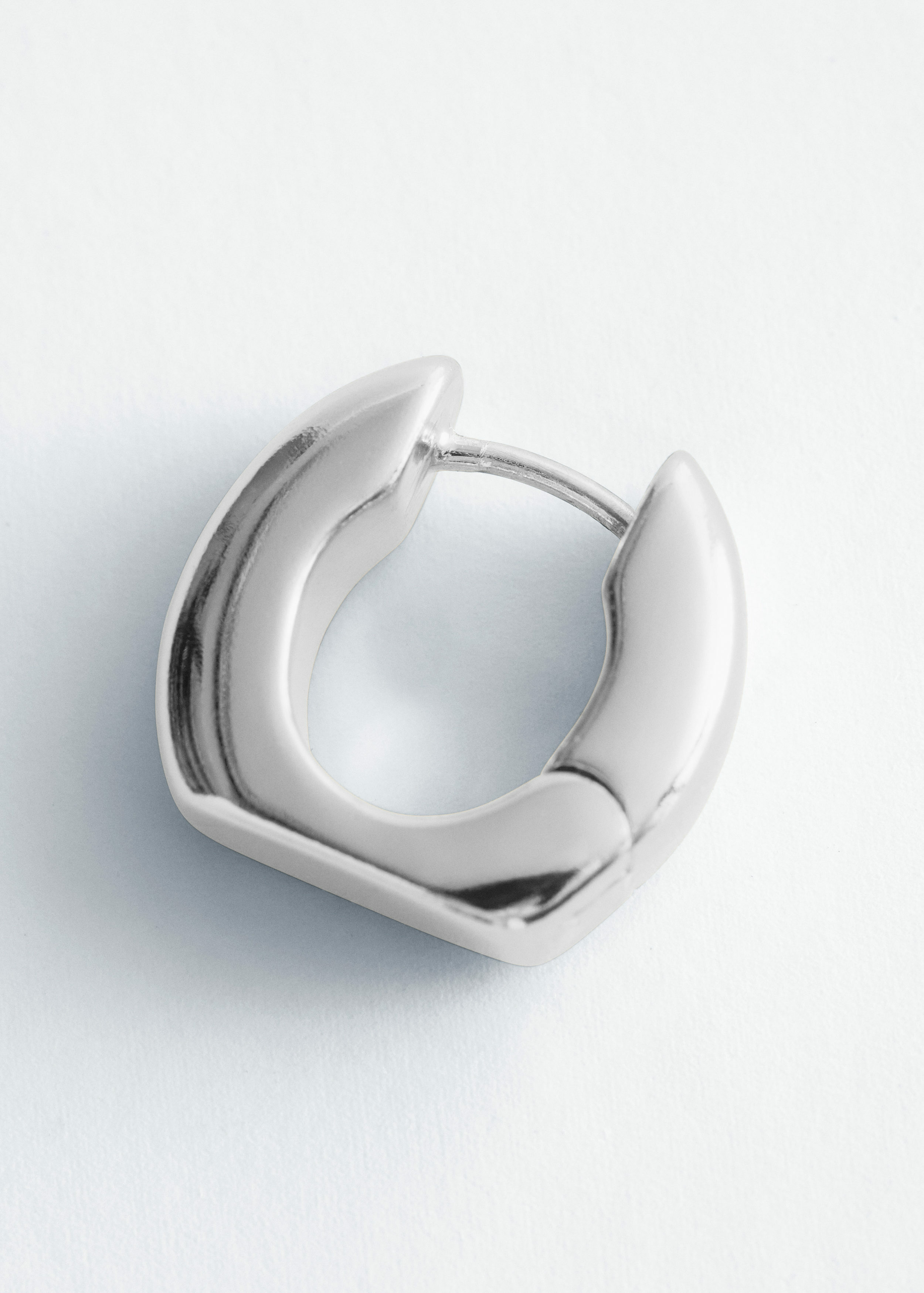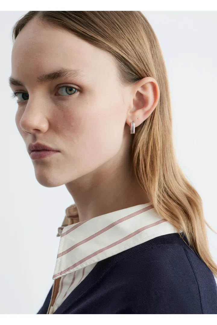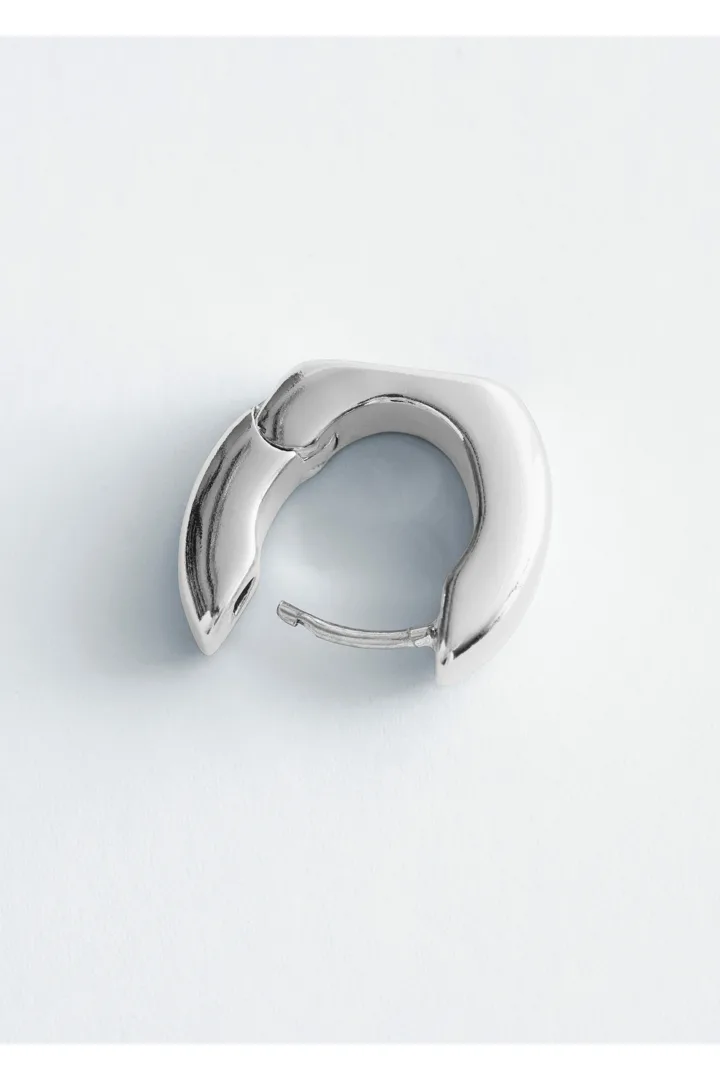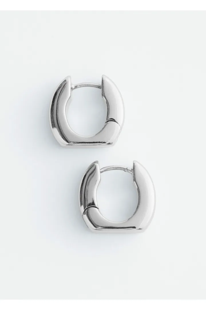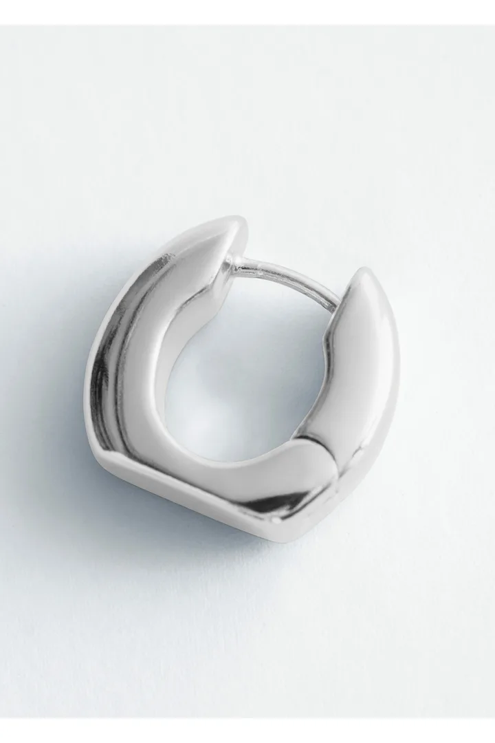 유광 브라스 소재의 미니 후프 이어링이에요. 청키하고 구조적인 실루엣이 특징이랍니다.