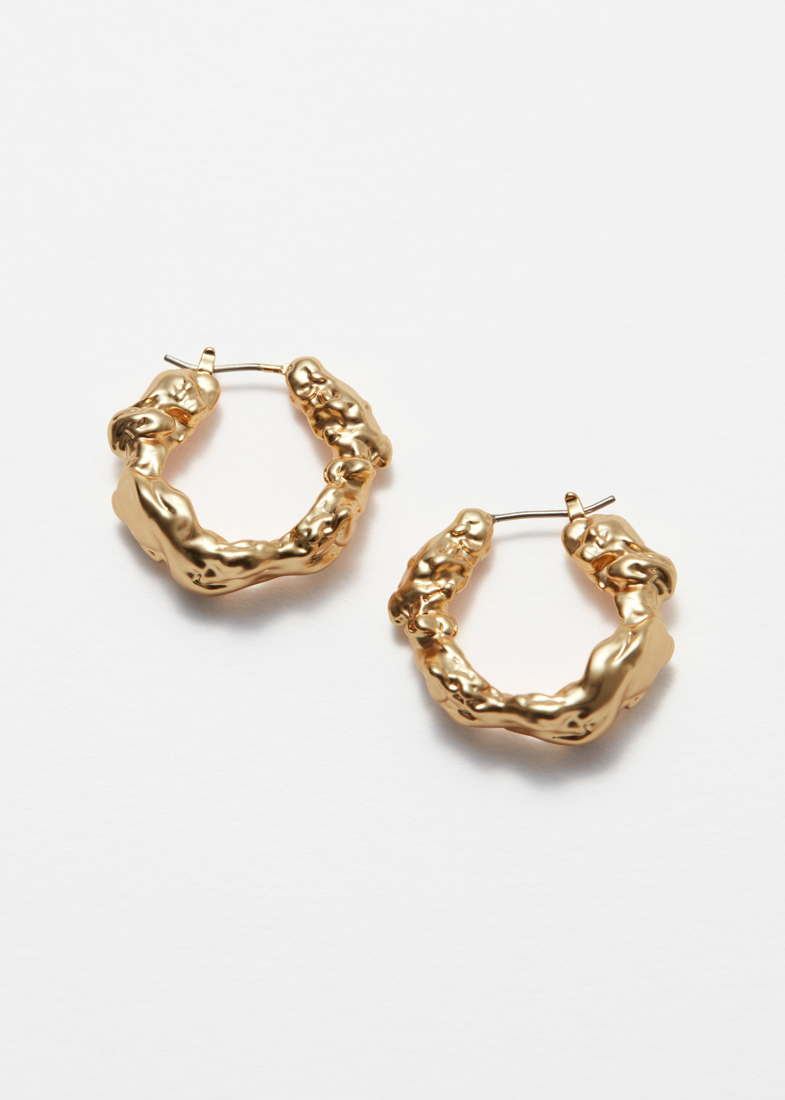 유광 브라스 소재의 후프 이어링이에요. 유기적이고 입체적인 쉐입이 현대적인 무드를 연출한답니다.