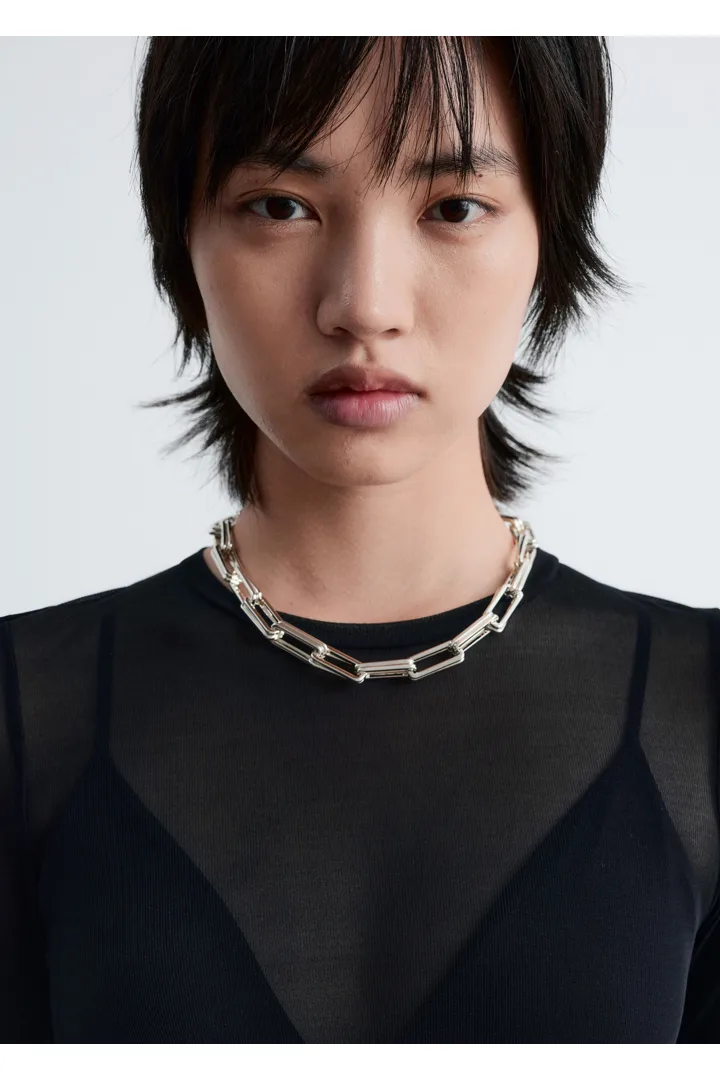 청키한 체인 링크 네크리스예요. 쇼트한 핏과, 스위블 클래스프 클로저가 특징이에요.