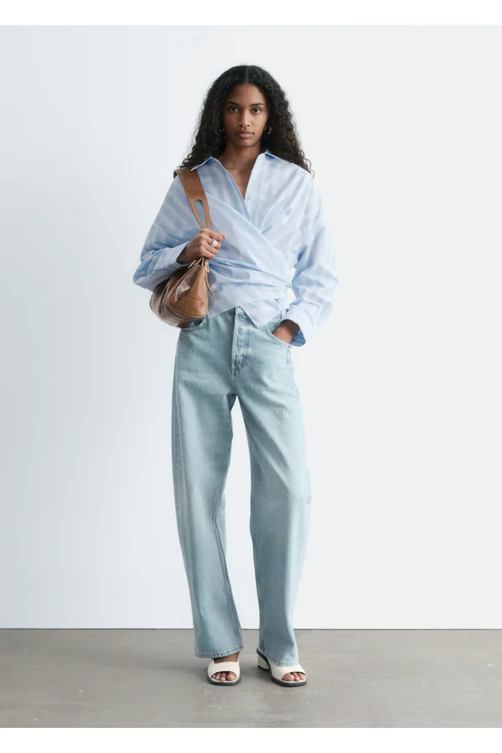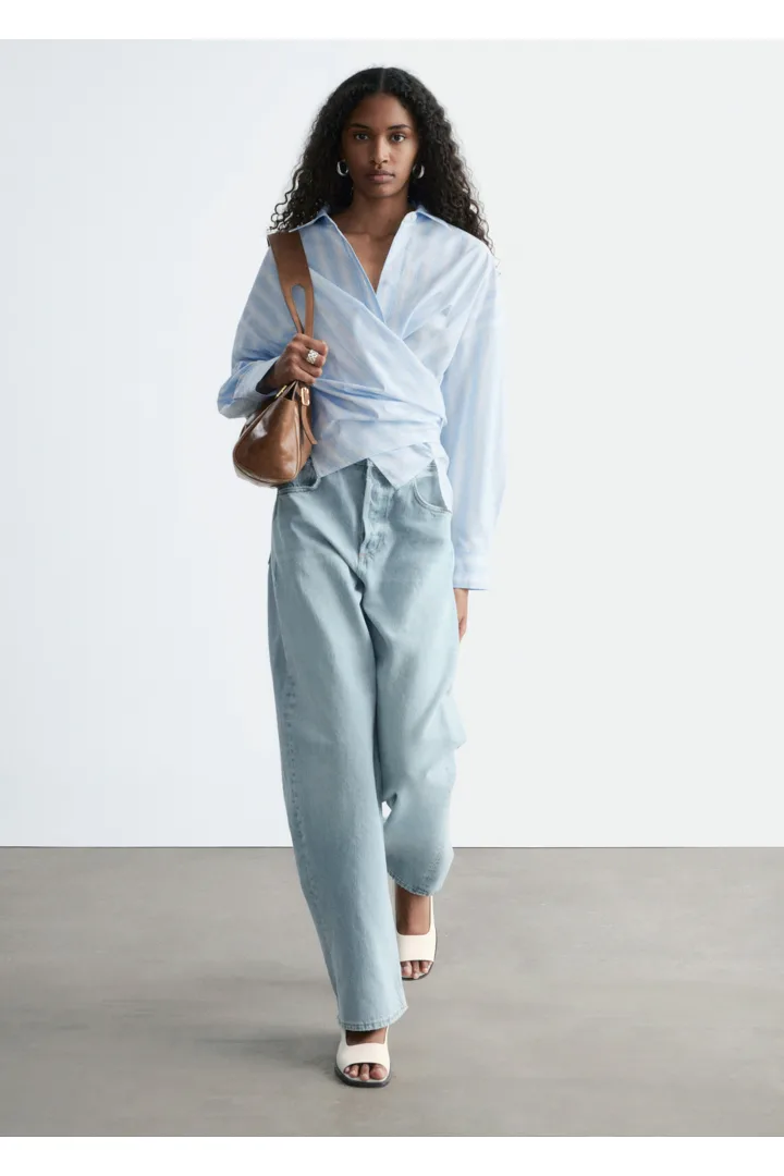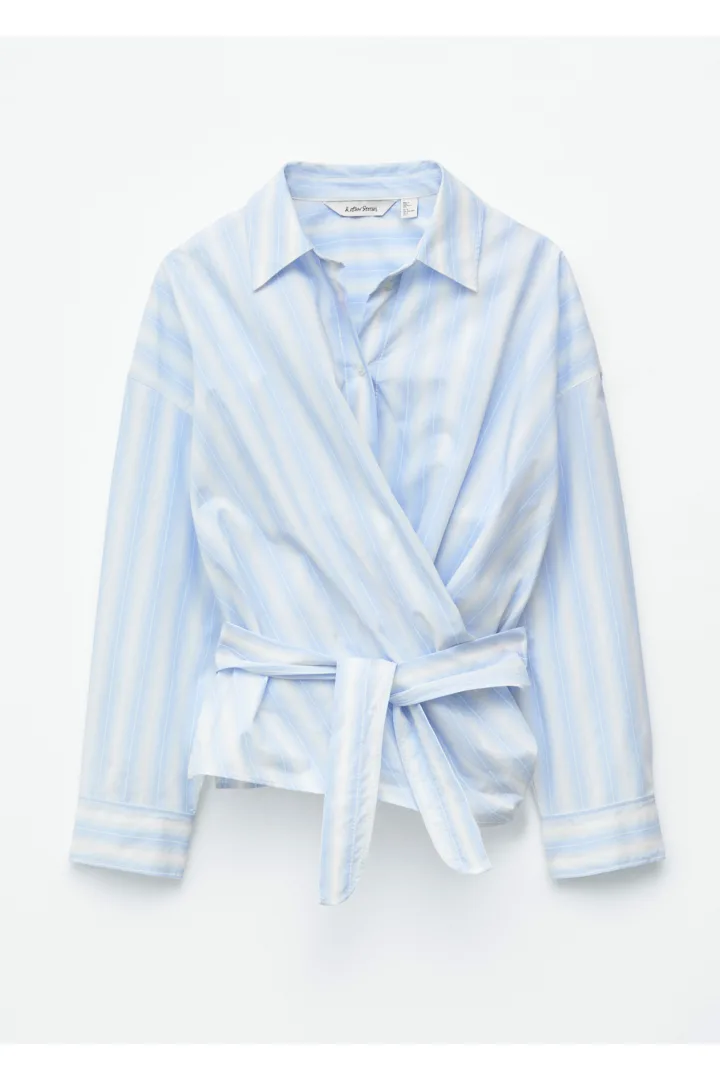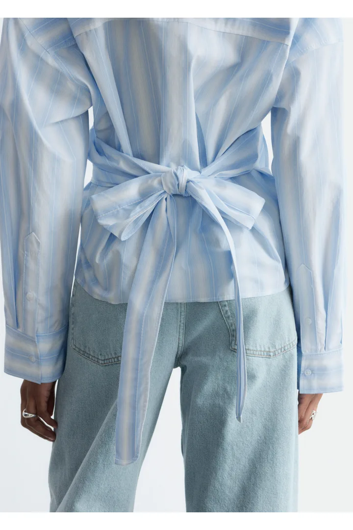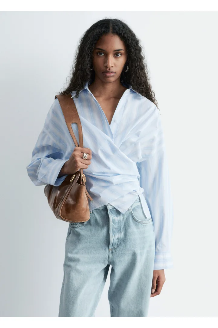 모던 테일러링을 새롭게 재해석한 셔츠예요. 100% 코튼 소재로 탄생했으며 크롭 실루엣이 특징이랍니다. 랩 스타일의 앞면 디자인은 허리에서 묶어 여성스러운 실루엣을 부드럽게 강조할 수 있답니다.