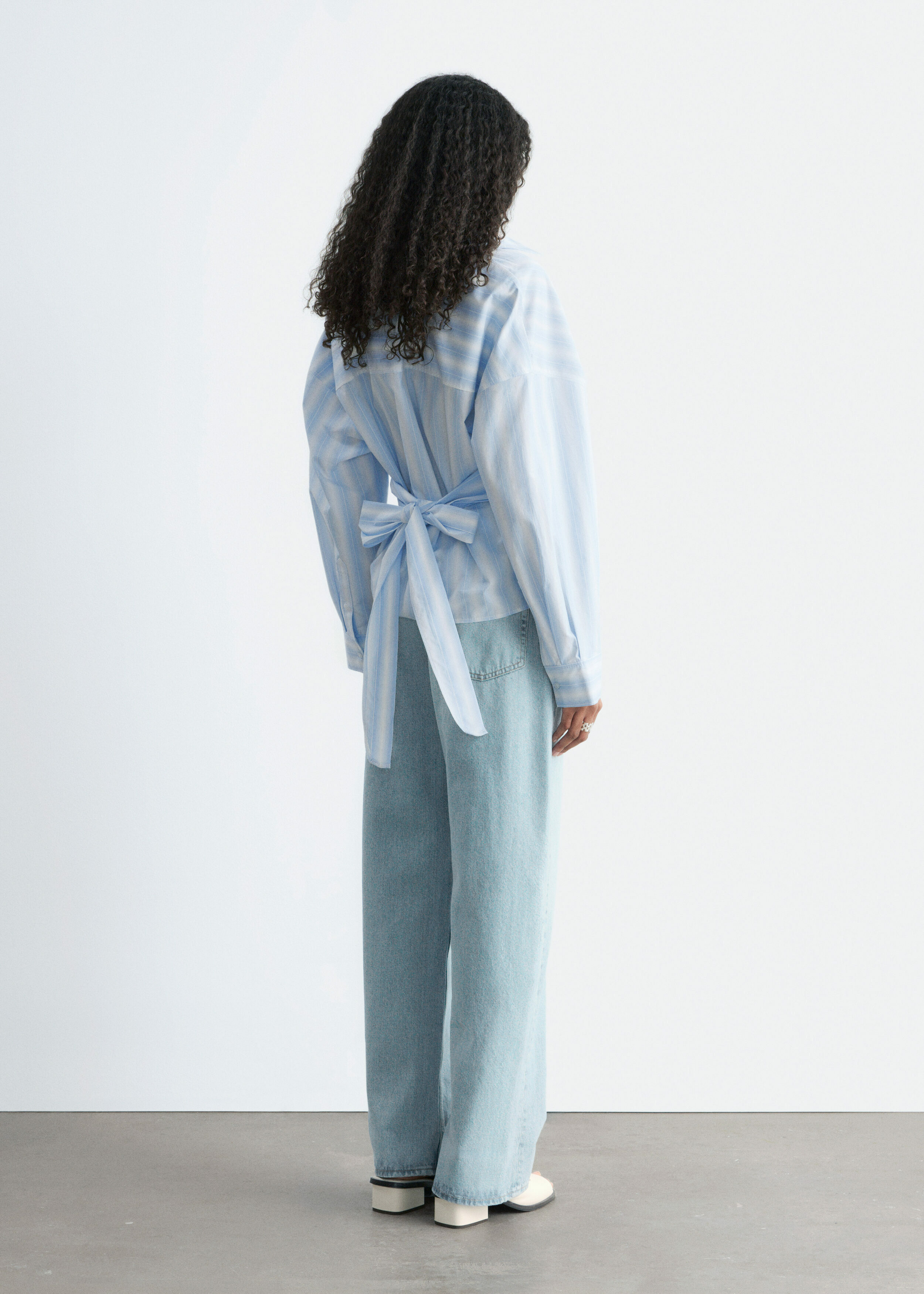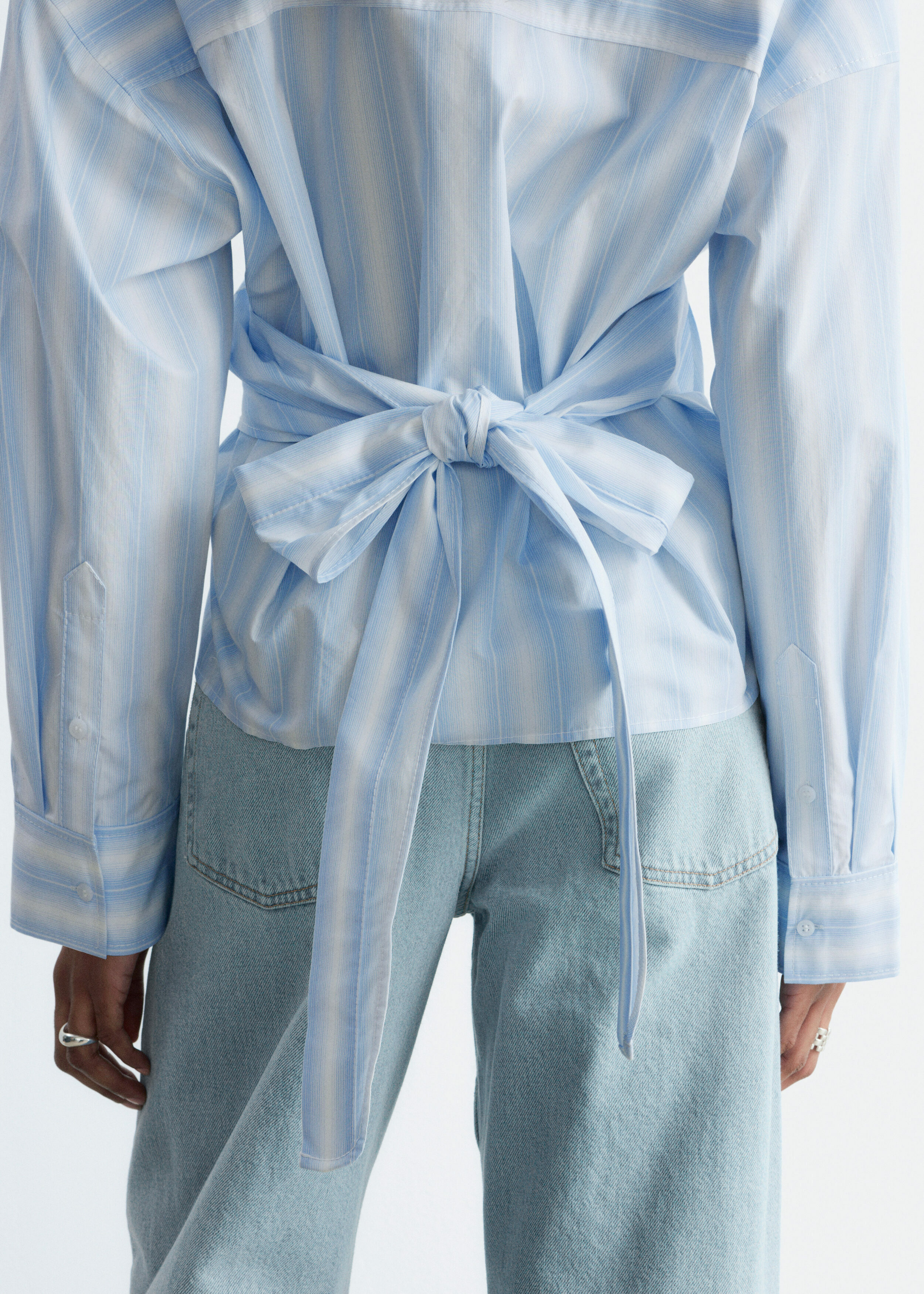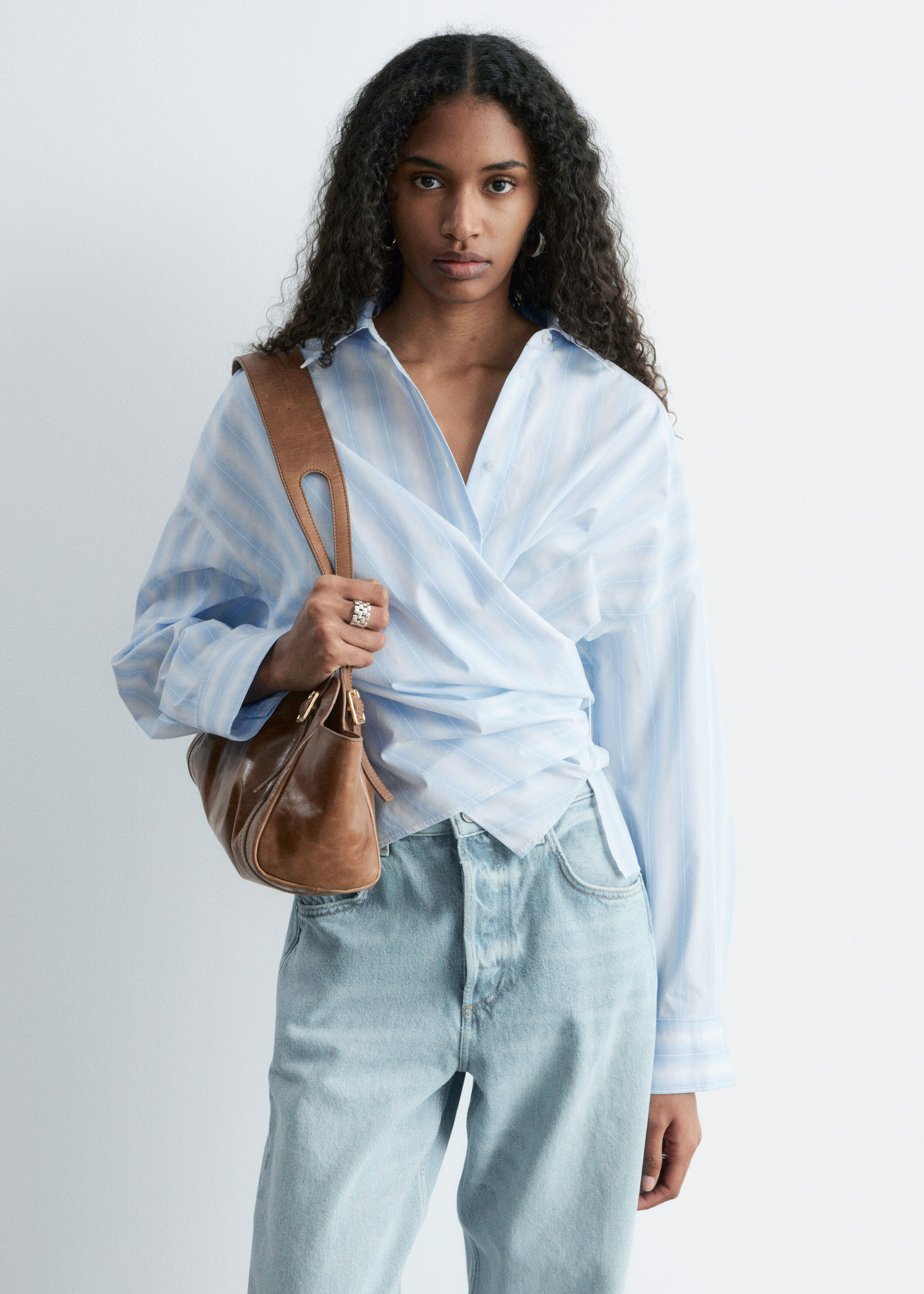 모던 테일러링을 새롭게 재해석한 셔츠예요. 100% 코튼 소재로 탄생했으며 크롭 실루엣이 특징이랍니다. 랩 스타일의 앞면 디자인은 허리에서 묶어 여성스러운 실루엣을 부드럽게 강조할 수 있답니다.