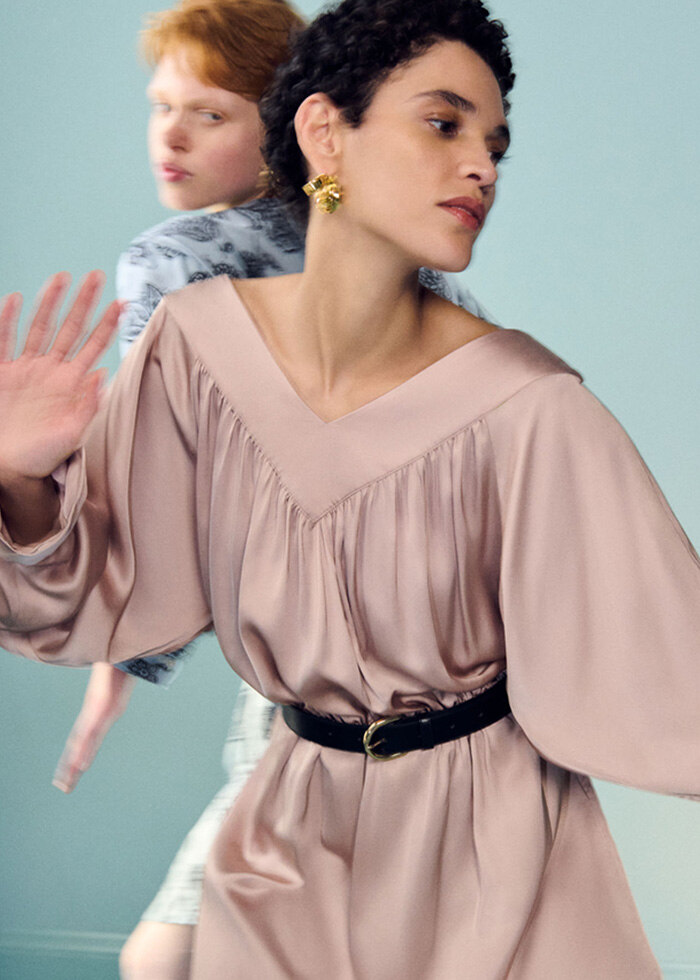 유려하게 흐르는 드레스, 부드러운 테일러링, 그리고 존재감 있는 아우터로 완성된 워드로브.