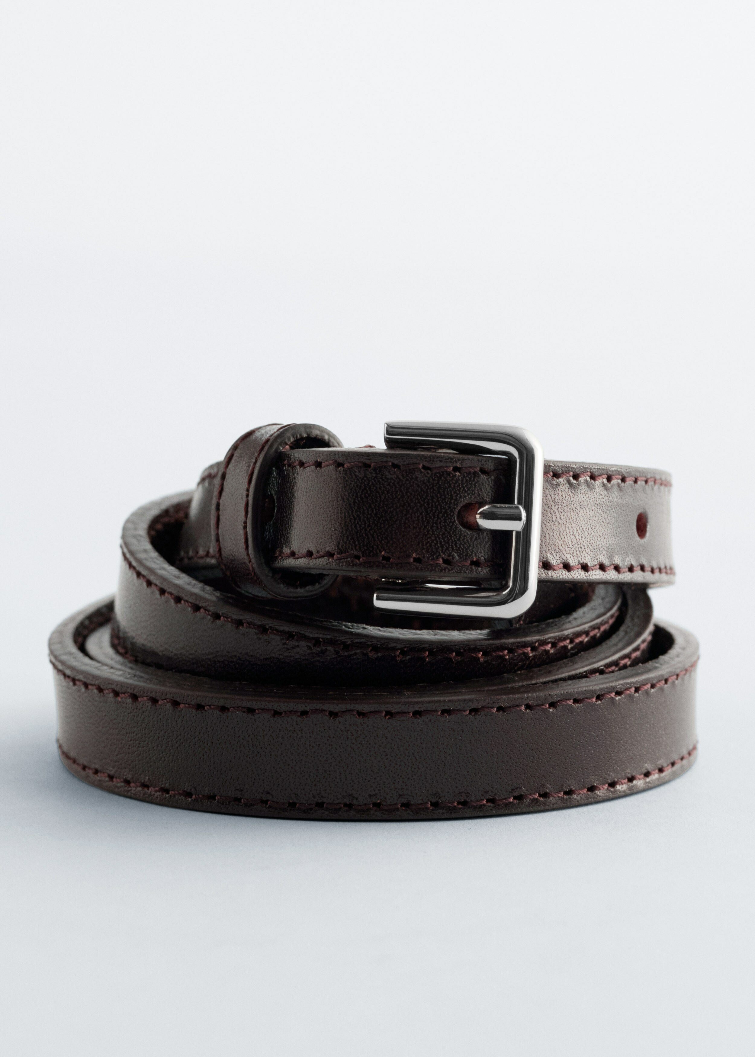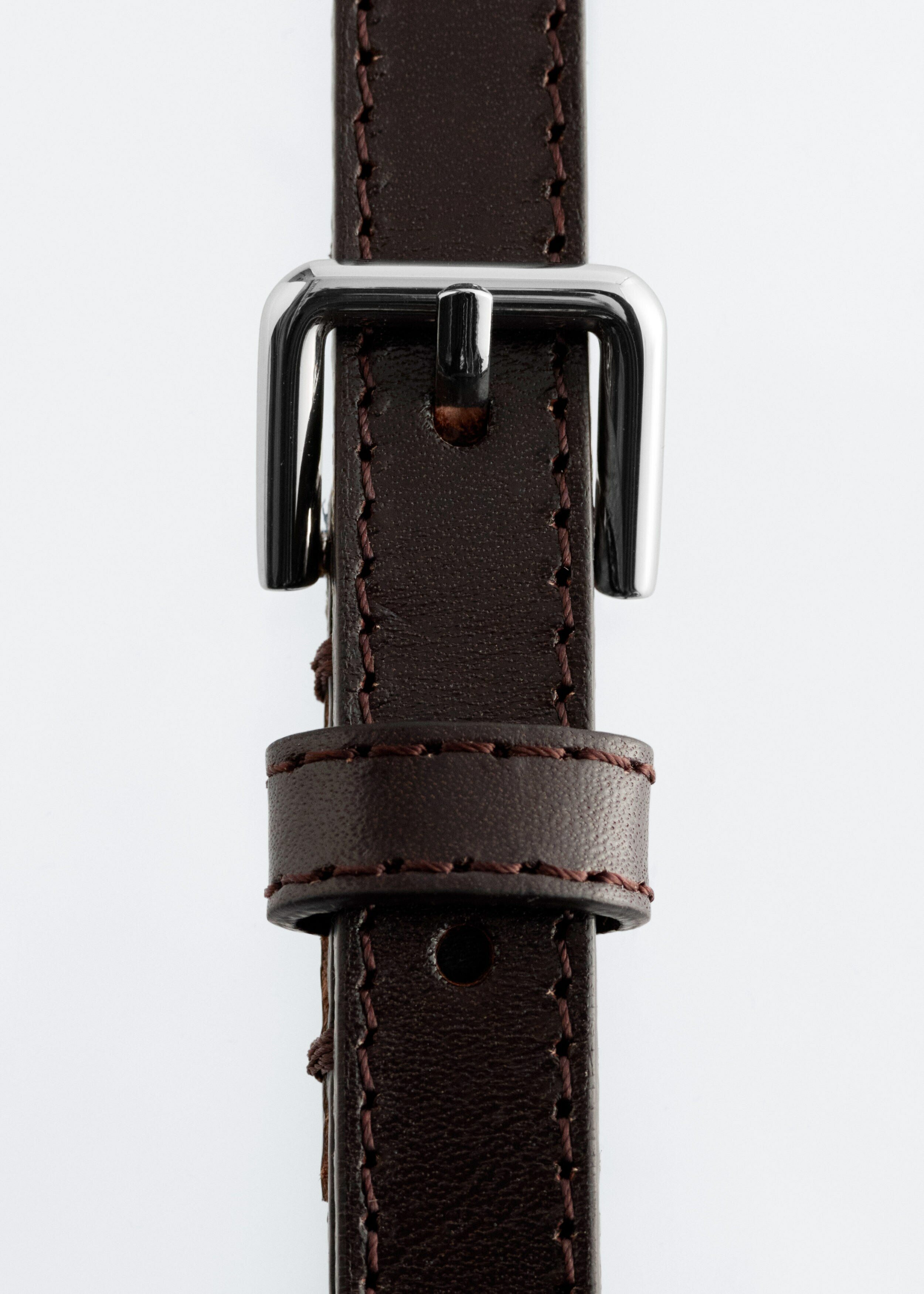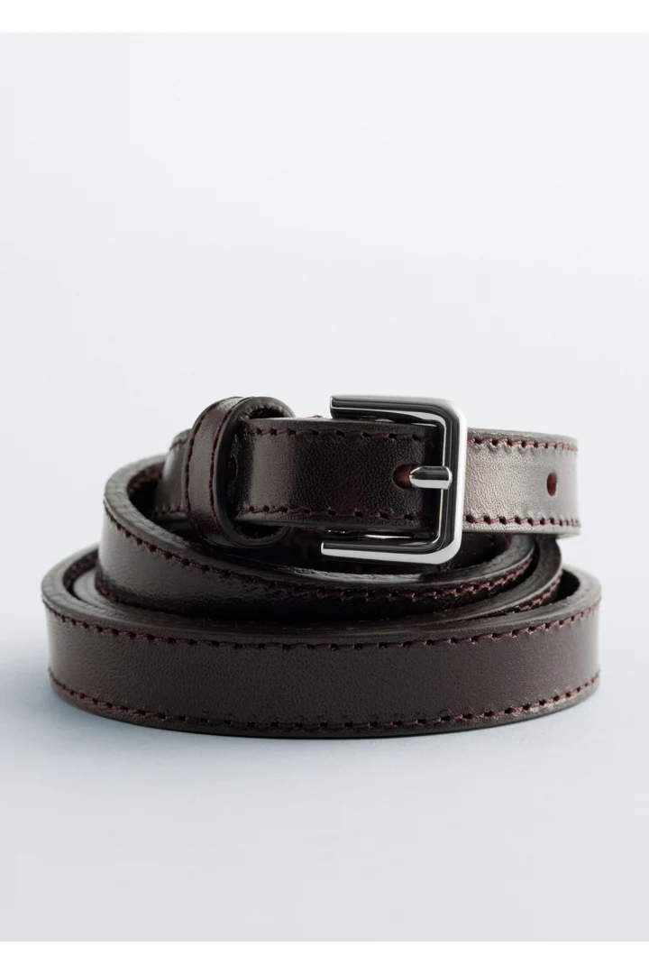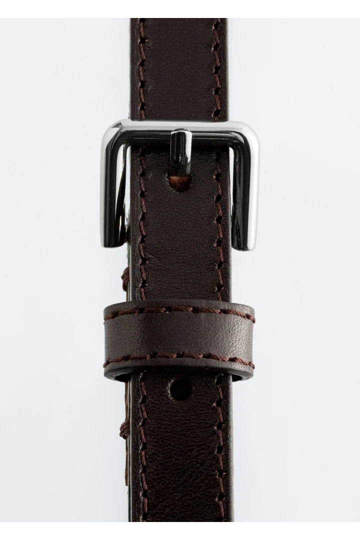 이탈리아에서 부드러운 가죽 소재로 제작된 세련된 벨트예요. 클래식한 스퀘어 버클과 사선의 팁이 특징이에요.