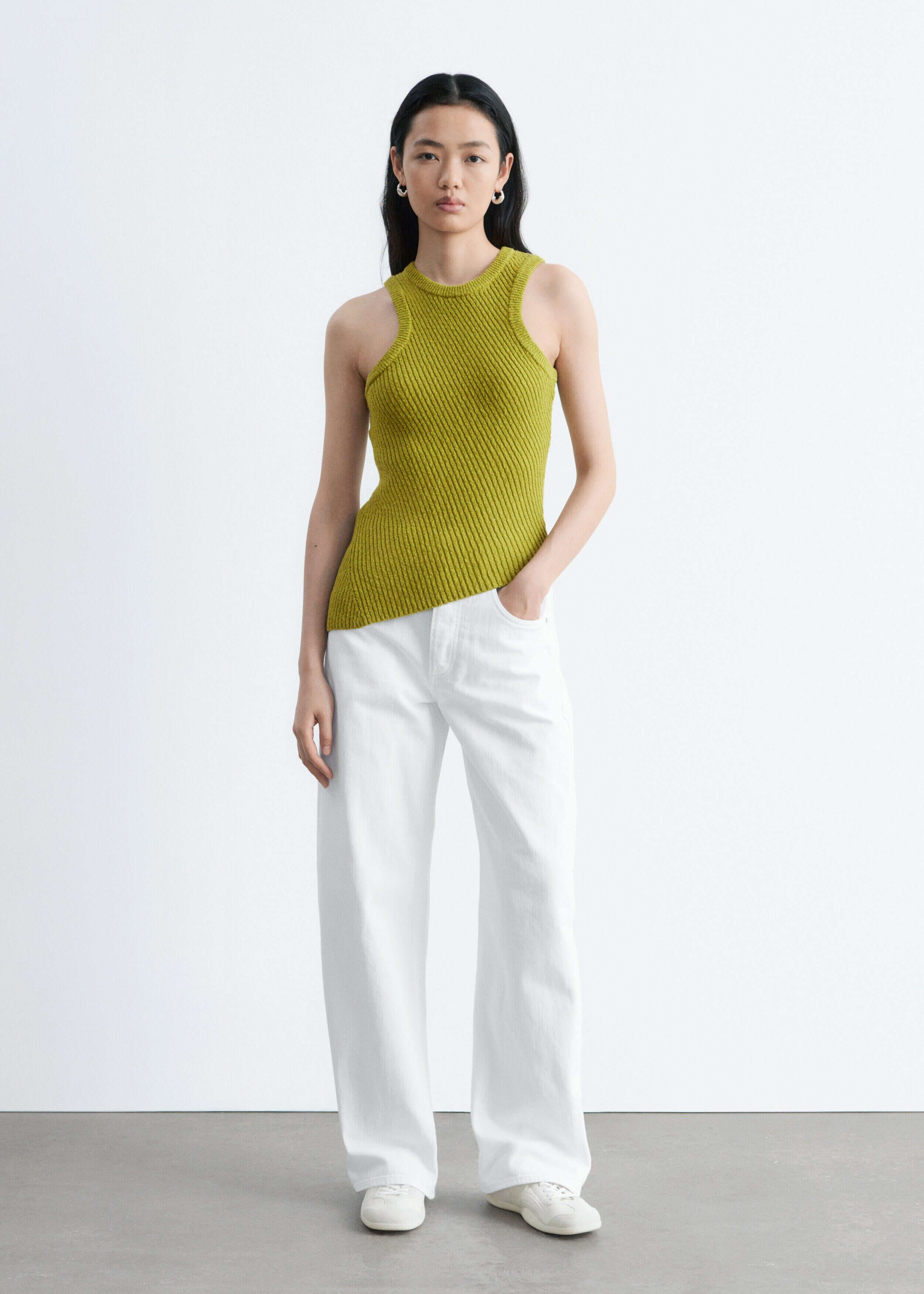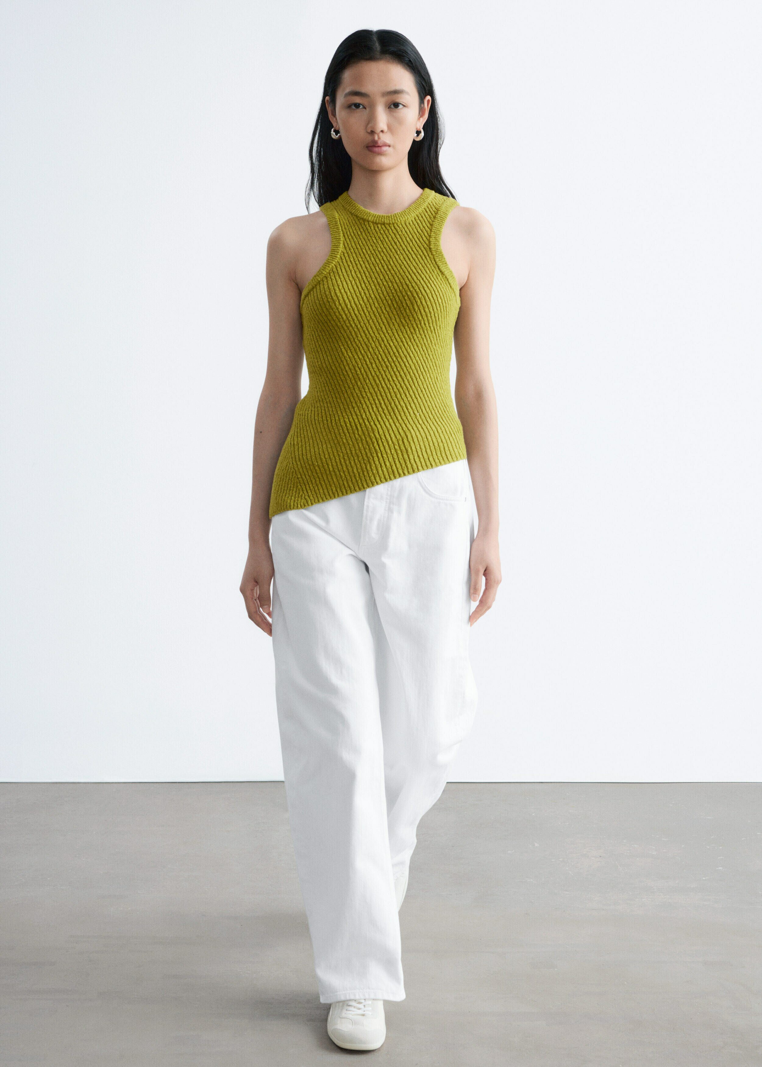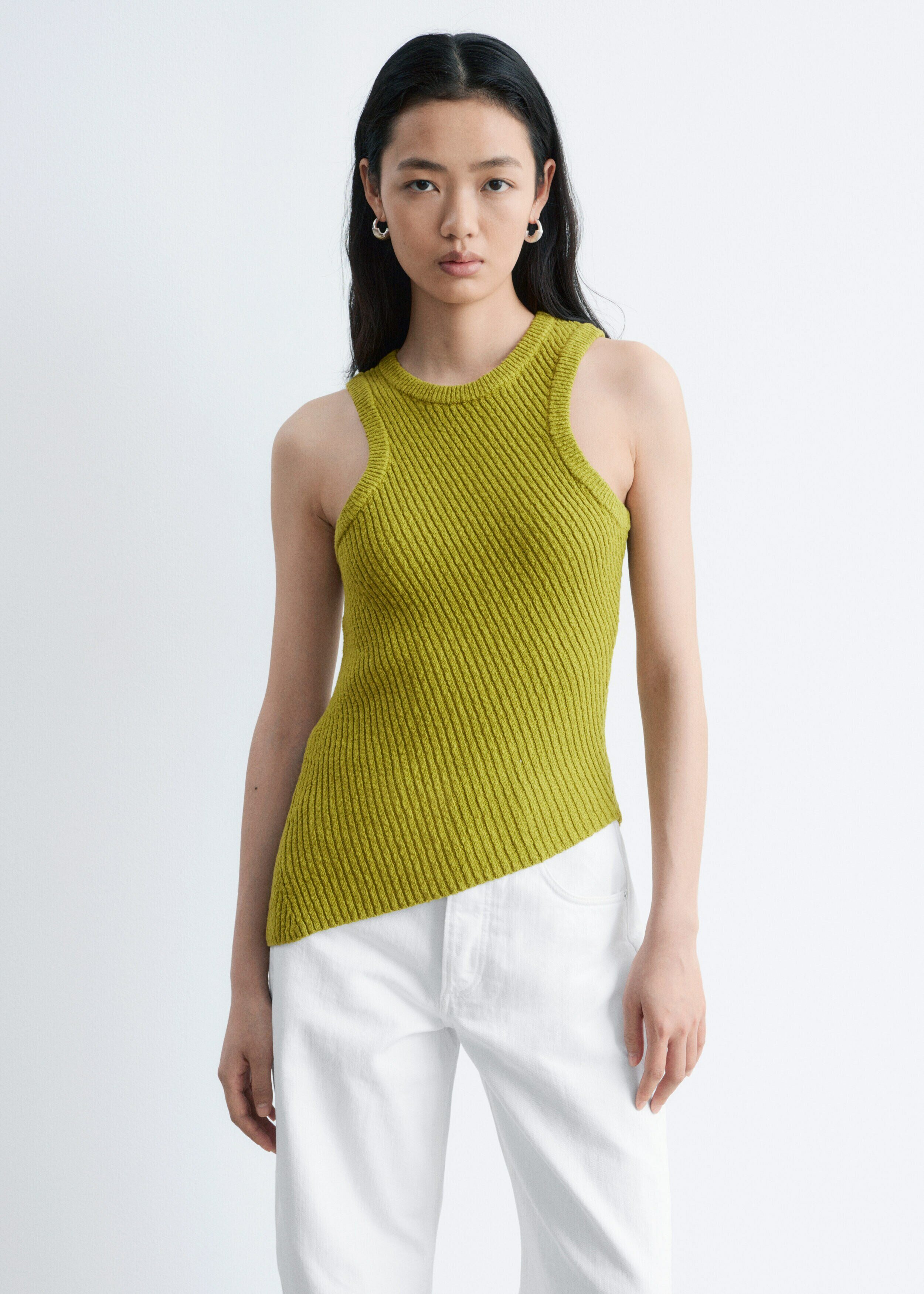 핏 되는 실루엣의 탱크 탑이에요. 사선의 립 디테일이 자리한 탄탄한 니트 소재로 탄생하여 은은한 텍스처와 구조감을 연출한답니다. 깔끔한 라인과 비대칭적인 밑단이 어우러져 섬세하고 모던한 분위기를 연출해요. 쉐입감이 돋보이며, 다양한 스타일 연출이 가능한 기본 아이템이랍니다.