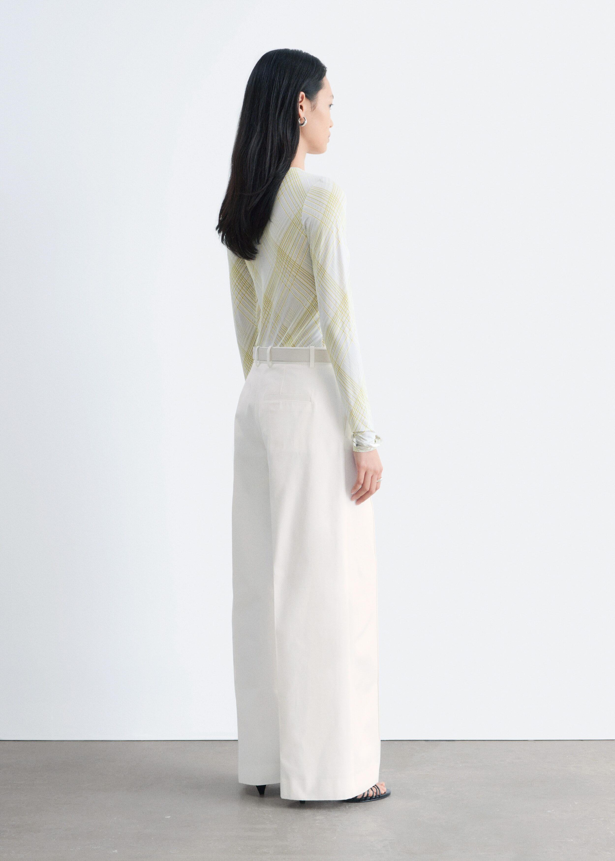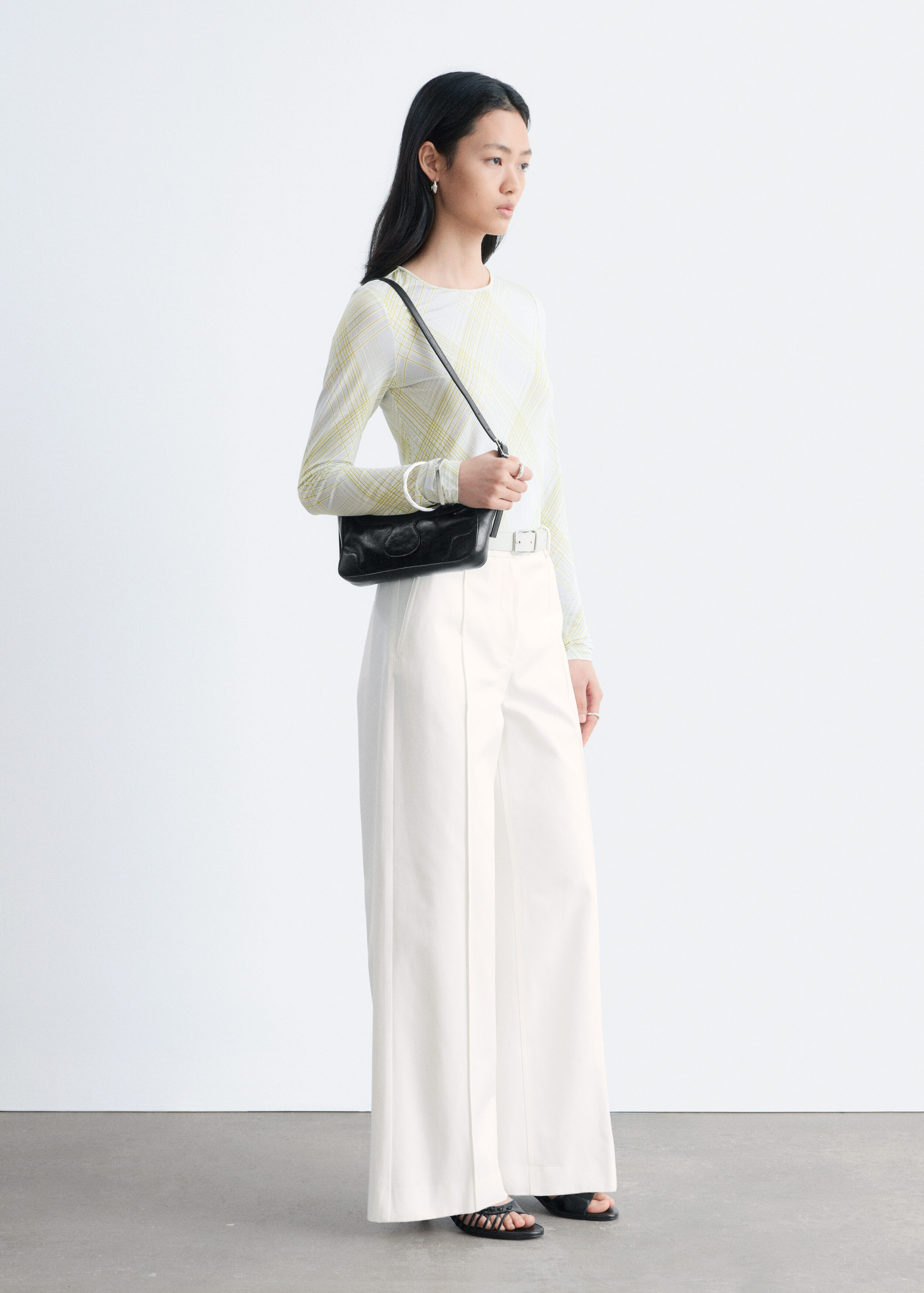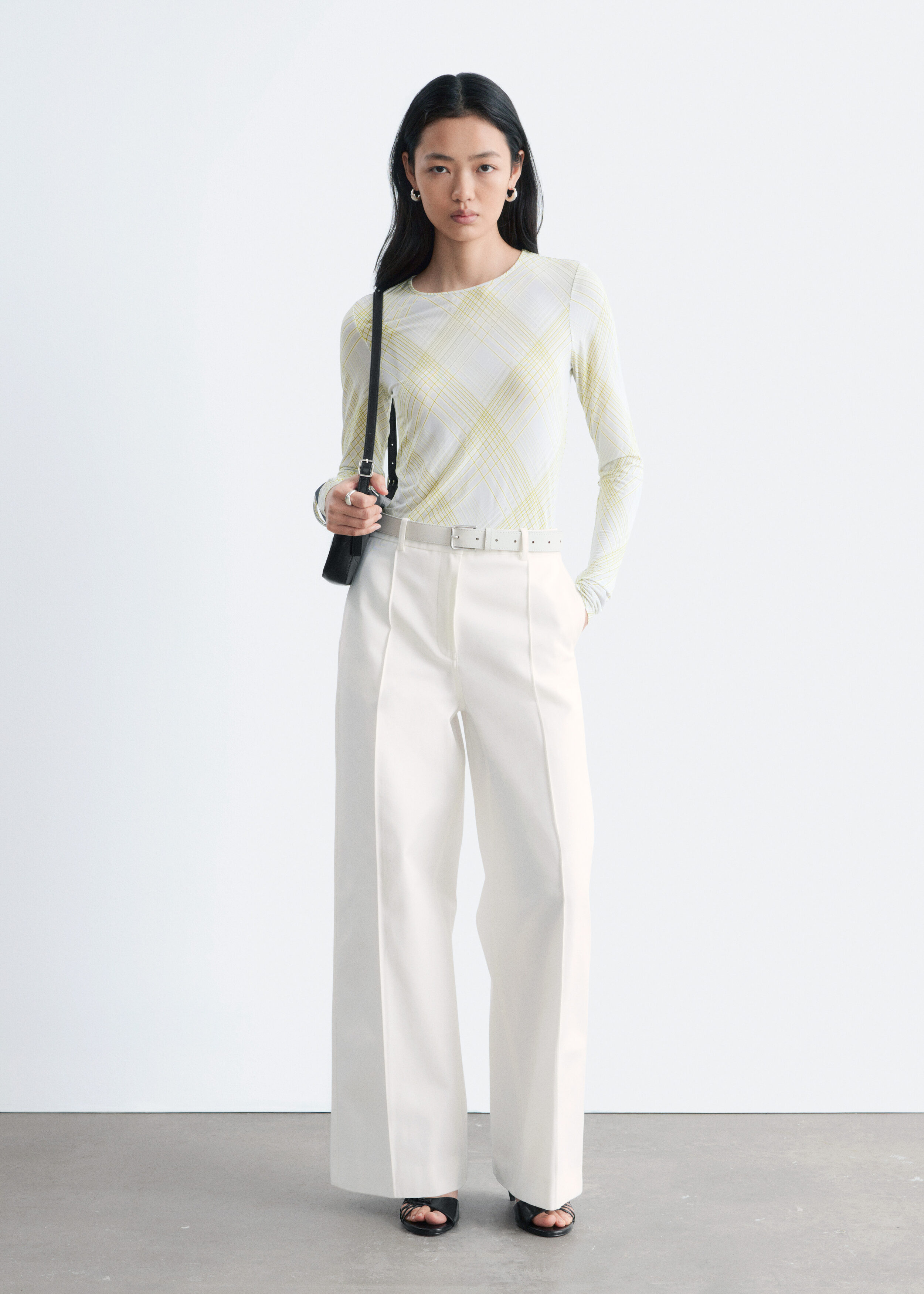 부드러운 저지 소재의 롱 슬리브 탑이에요. 스트레이트 실루엣과 라운드 네크라인이 특징이며, 테일러드 피스 또는 클래식 데님과 매치해 보세요.