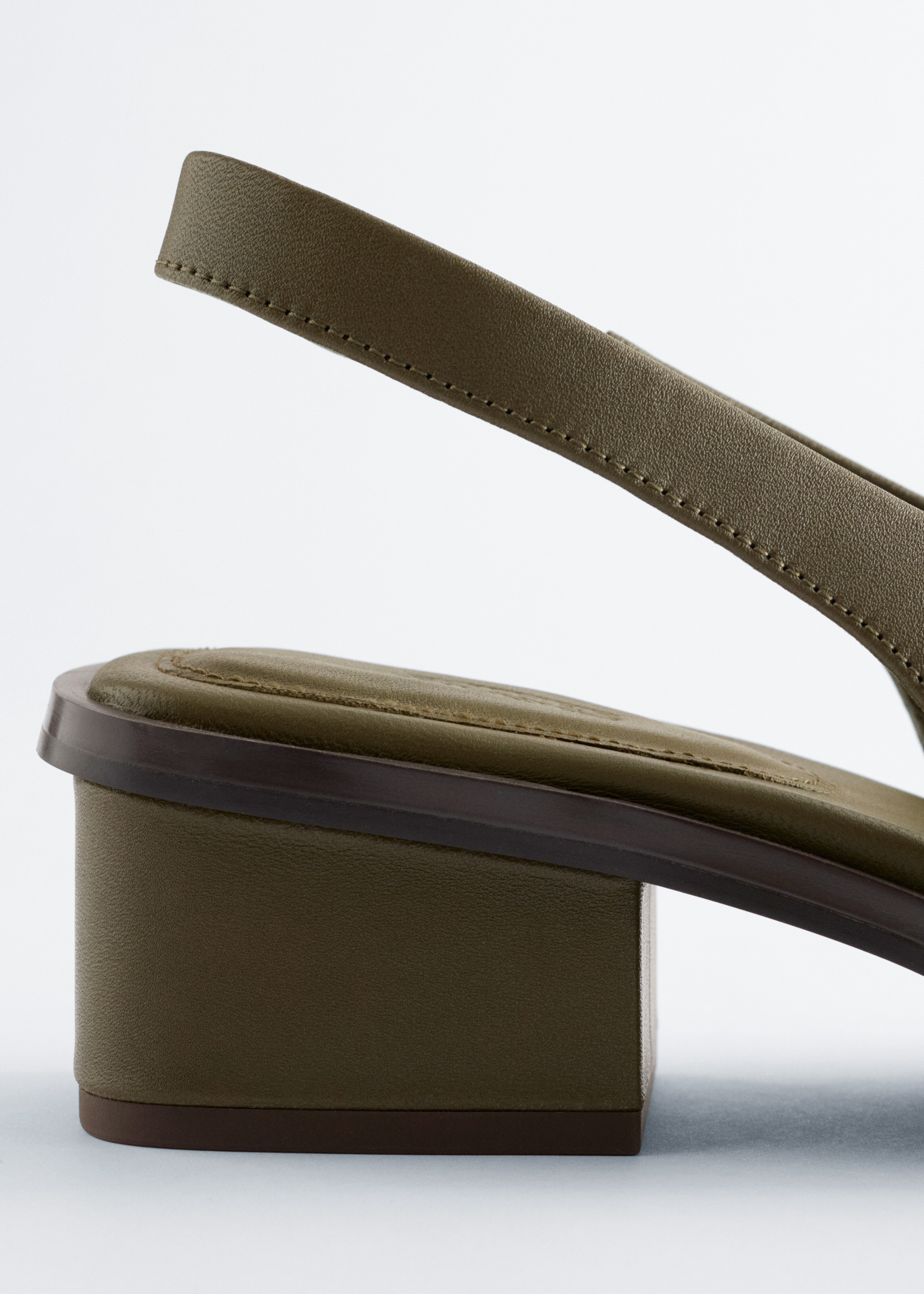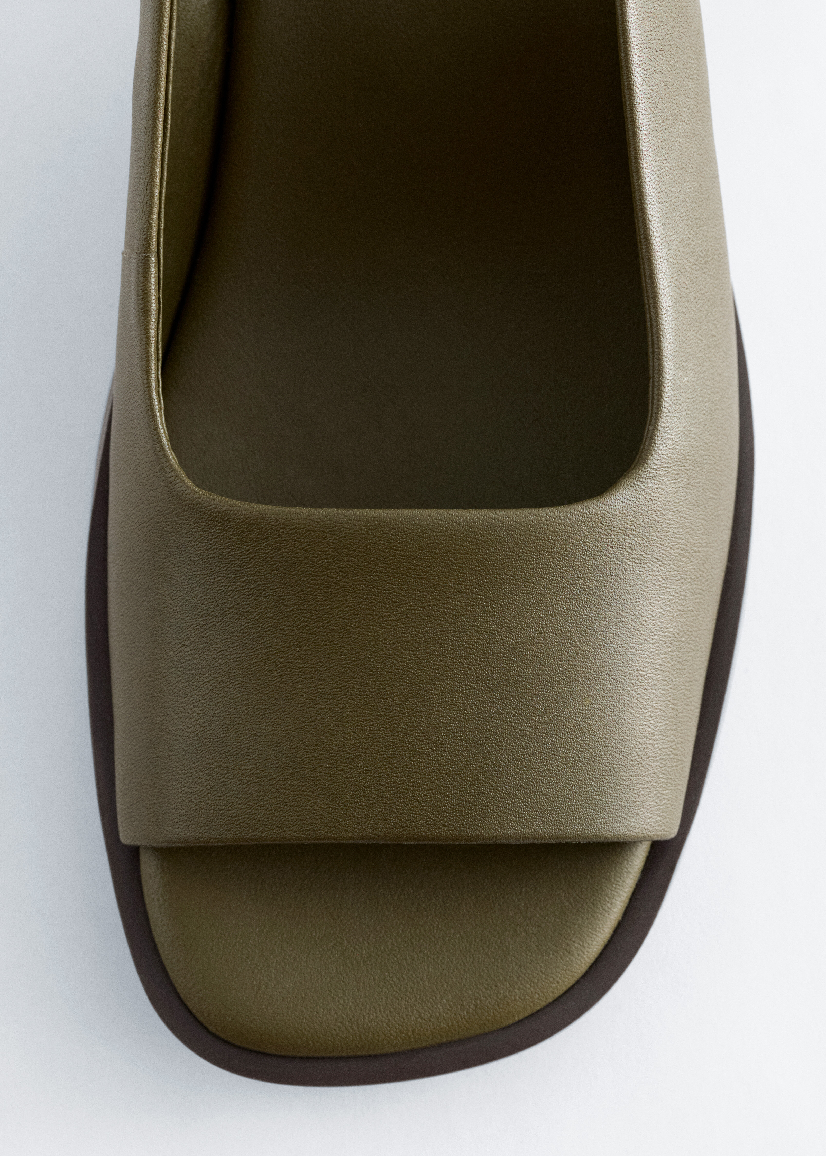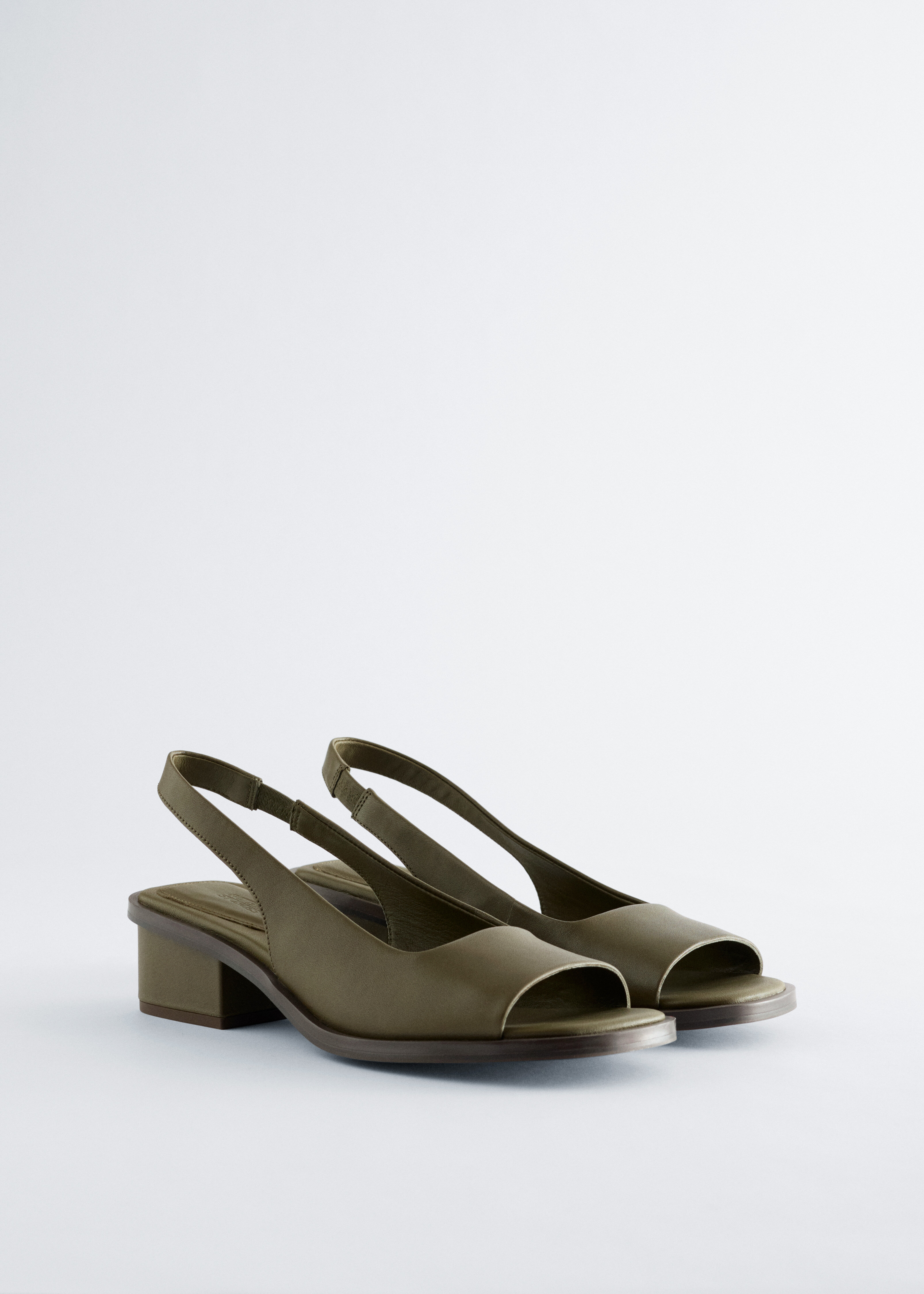 블록 힐과 곡선 스퀘어 앞코 디자인이 강렬한 무드를 연출하는 슬링백 샌들이에요. 유연한 나파 가죽으로 탄생했답니다. 엘라스틱 슬링백 스트랩이 안정적인 핏을 제공하며, 쿠션 처리된 인솔과 두께감 있는 밑창이 편안함을 더해주어요.