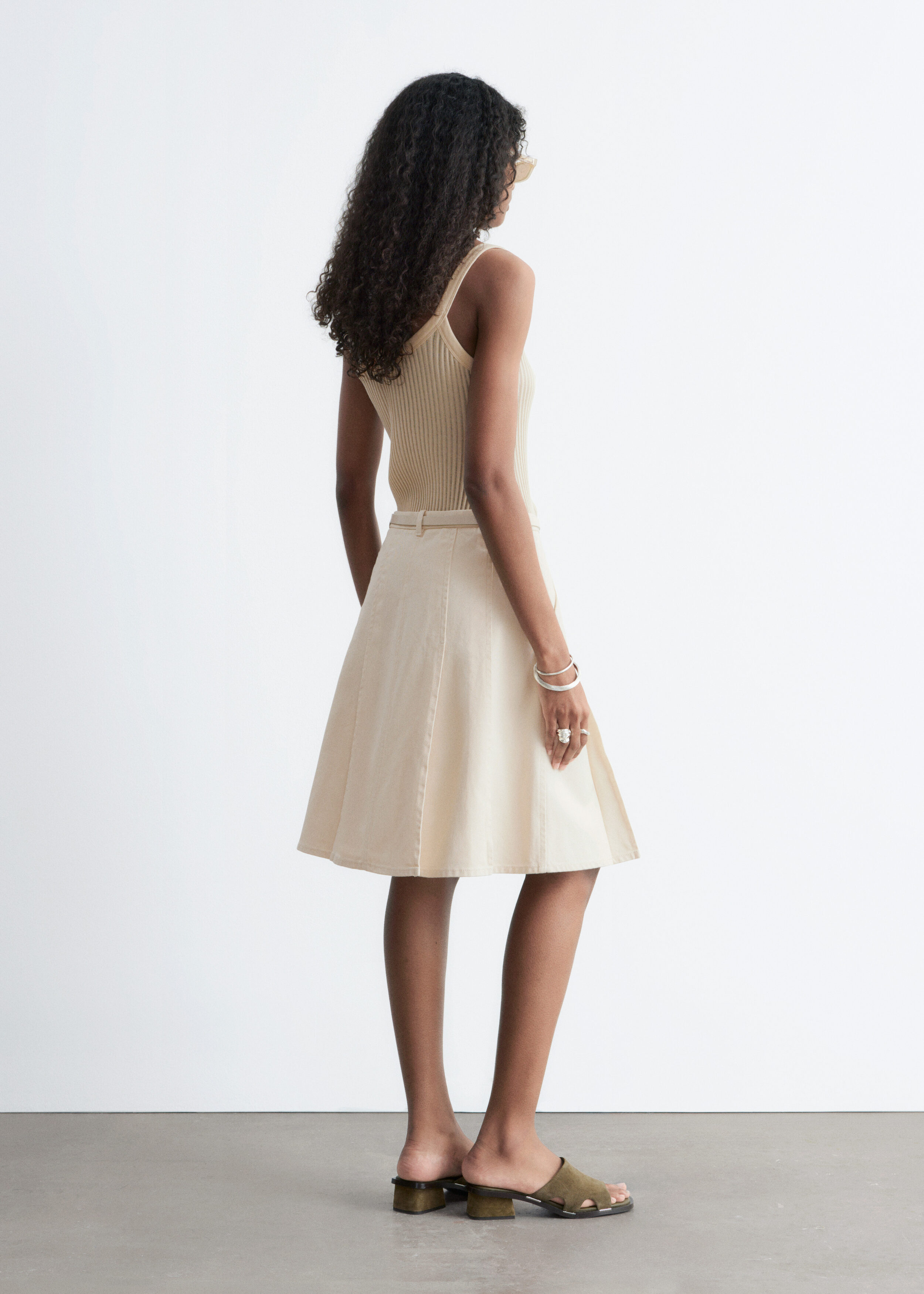 플리츠 코튼 미디 스커트