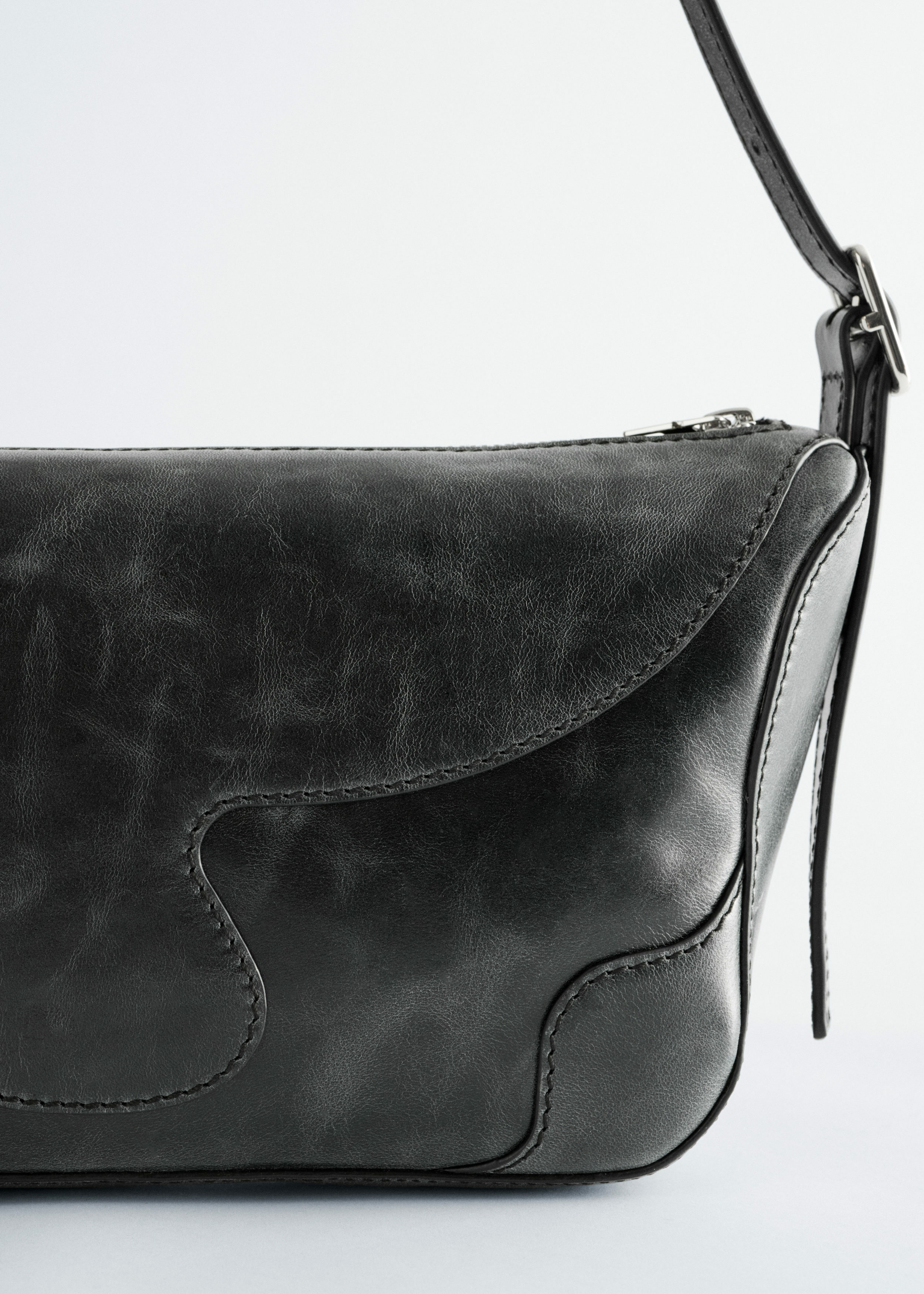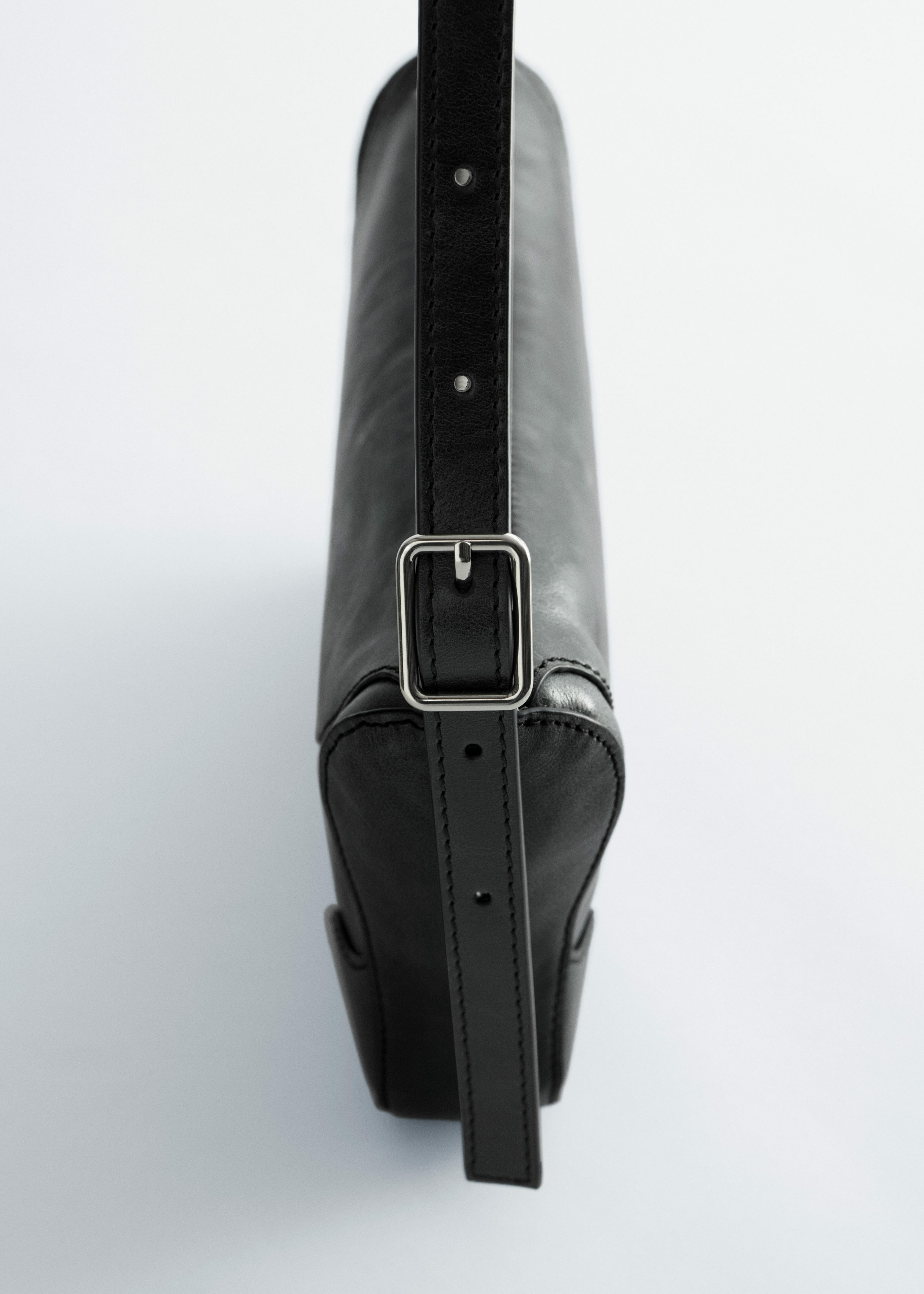 부드러운 가죽 소재의 크로스바디 백이에요. 직사각 쉐입이 돋보이는 제품으로 곡선진 탑스티치 솔기, 조절형 롱 버클 숄더 스트랩, 지퍼 클로저가 자리해 있답니다.