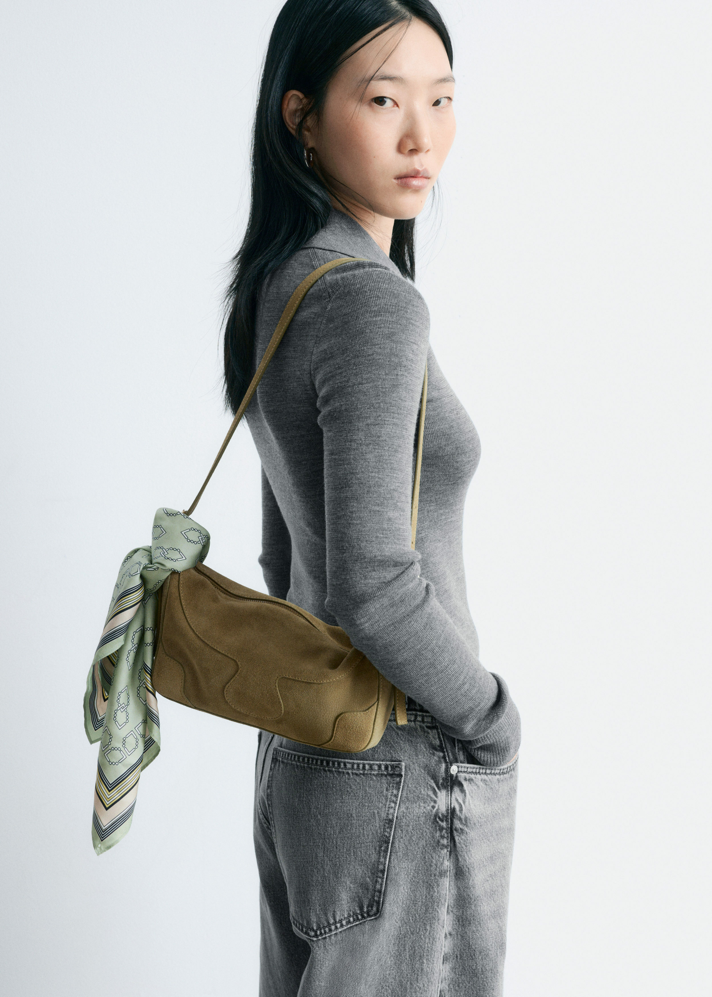 부드러운 가죽 소재의 크로스바디 백이에요. 직사각 쉐입이 돋보이는 제품으로 곡선진 탑스티치 솔기, 조절형 롱 버클 숄더 스트랩, 지퍼 클로저가 자리해 있답니다.