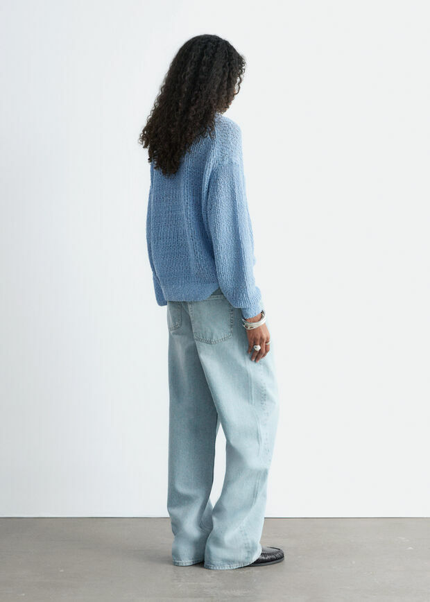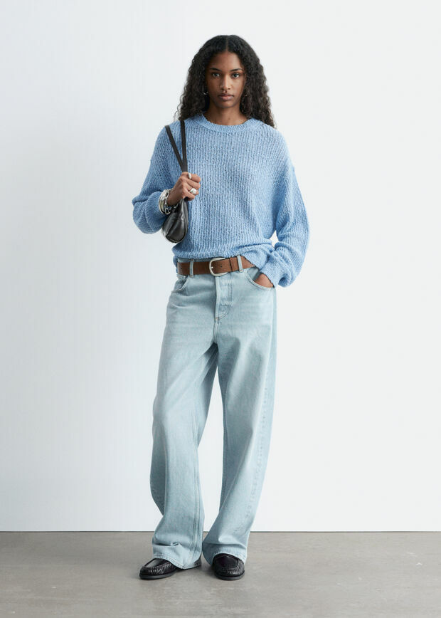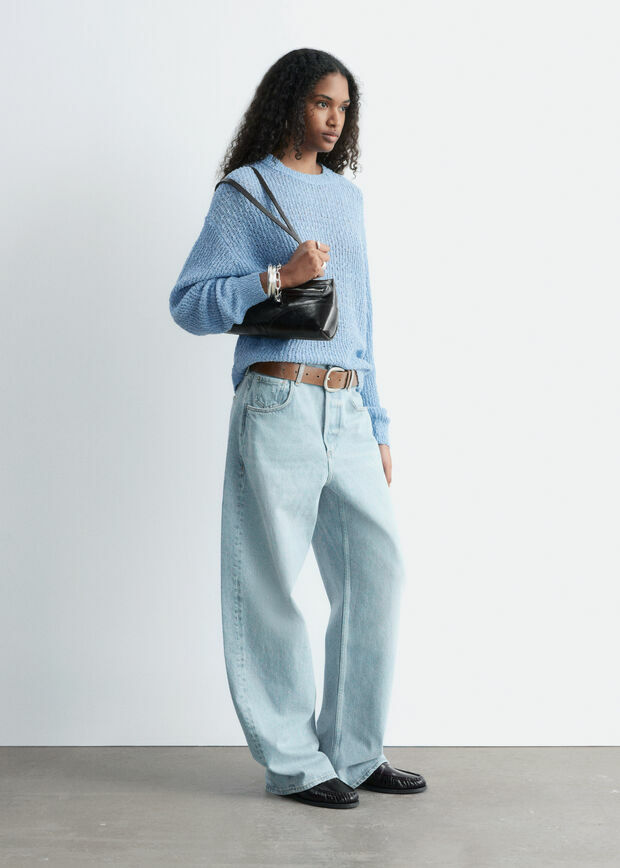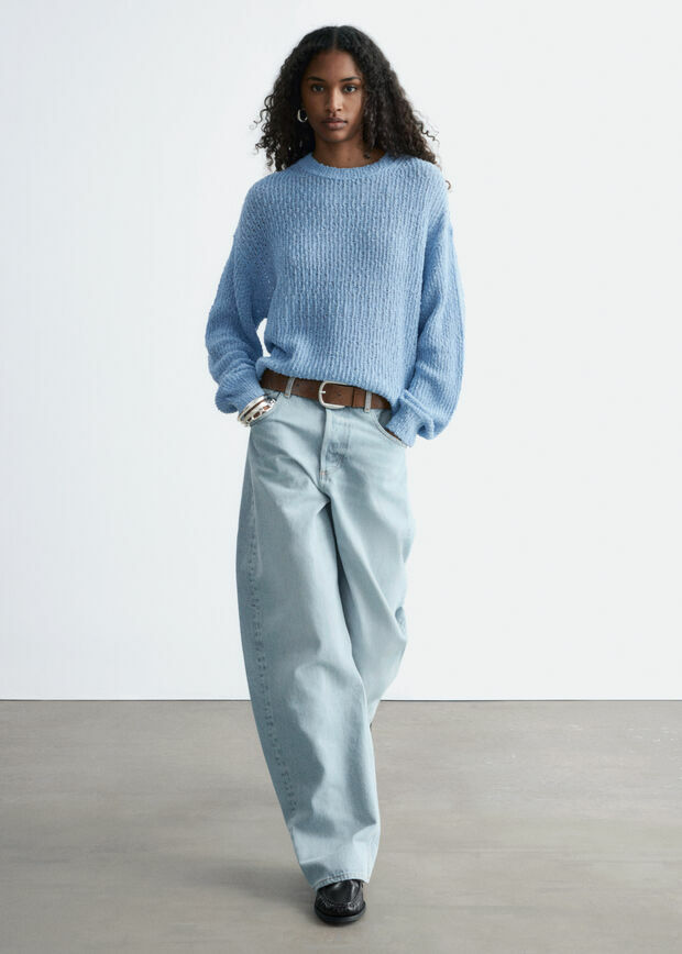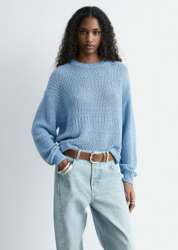 멀베리 실크 & 코튼 혼방 니트 소재의 스웨터예요. 살짝 탄탄한 텍스처가 특징이에요. 여유로운 실루엣과 클래식한 크루넥으로 레이어링하기에 좋답니다.