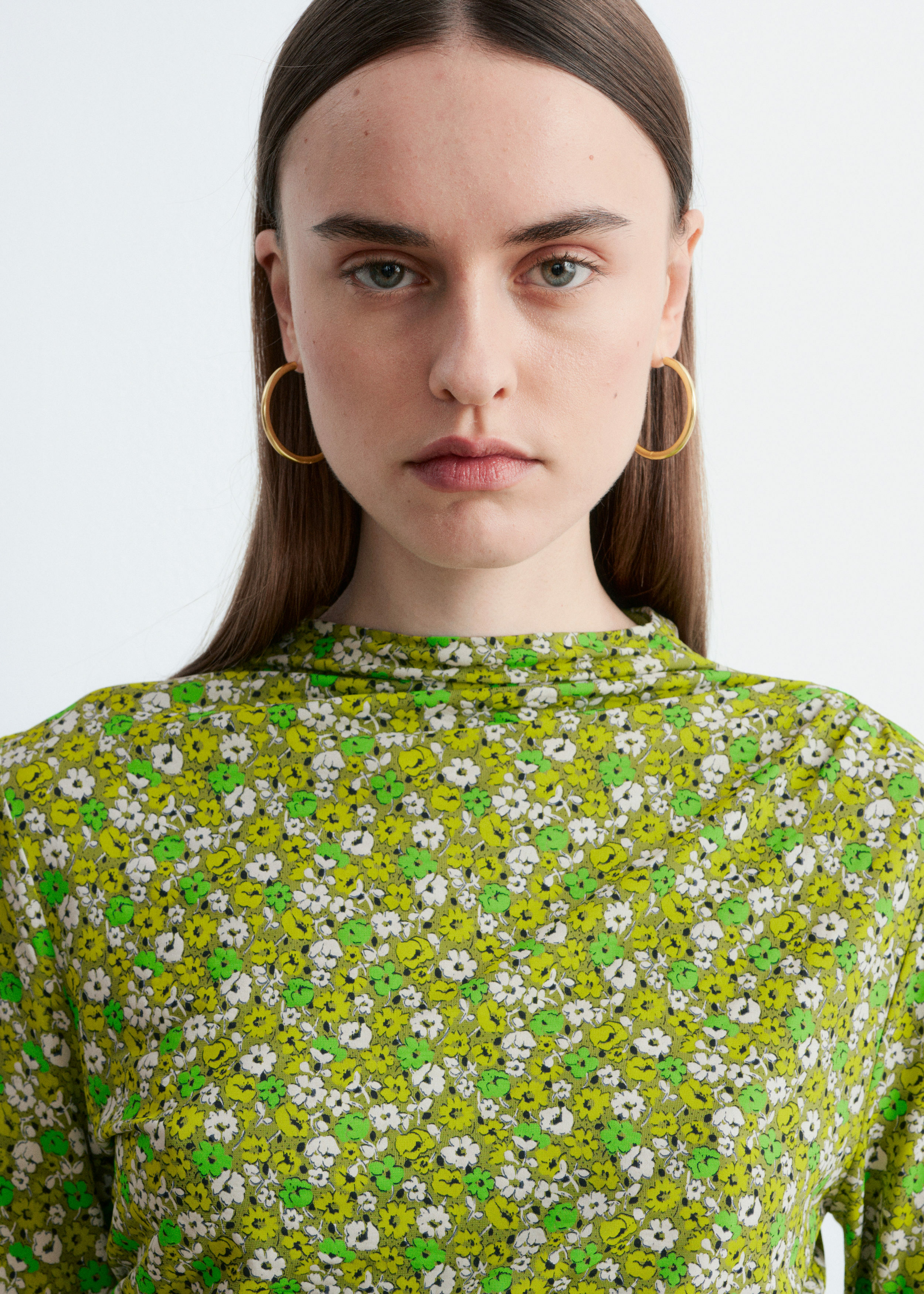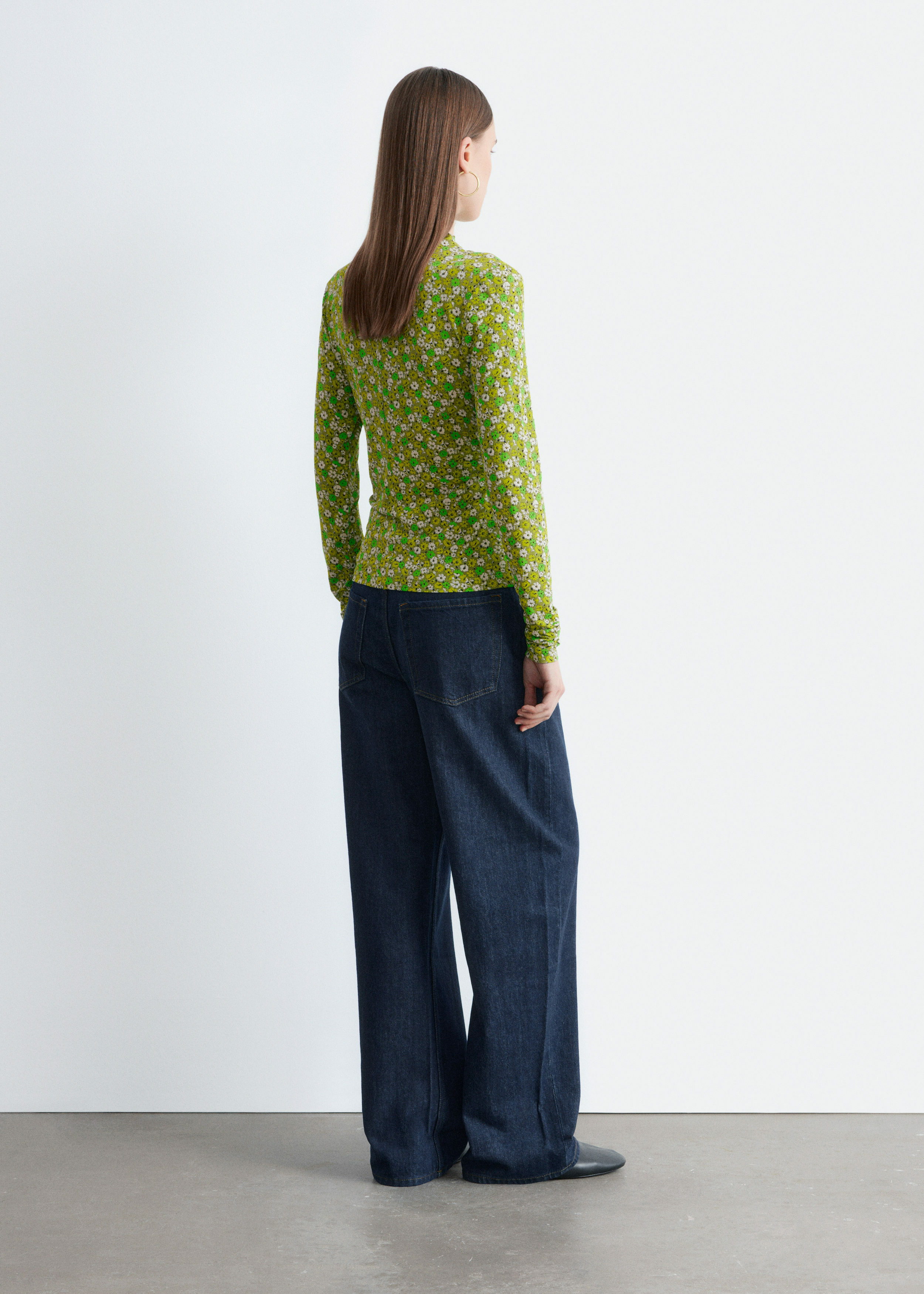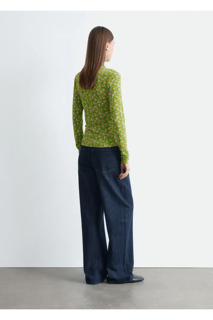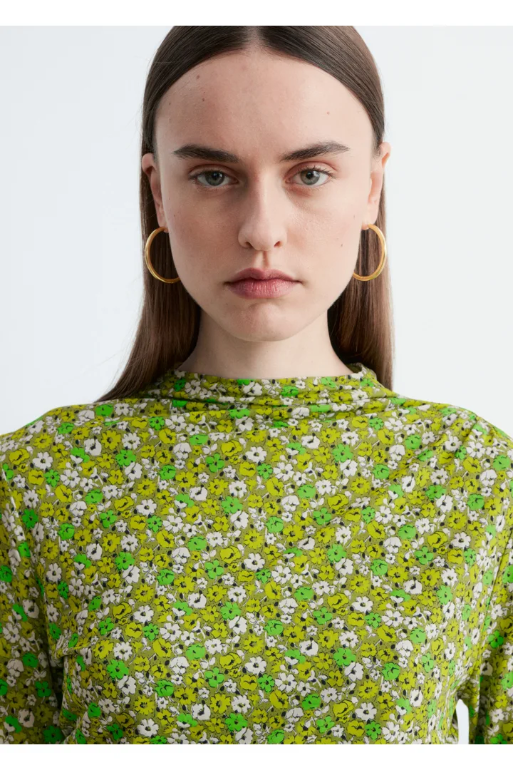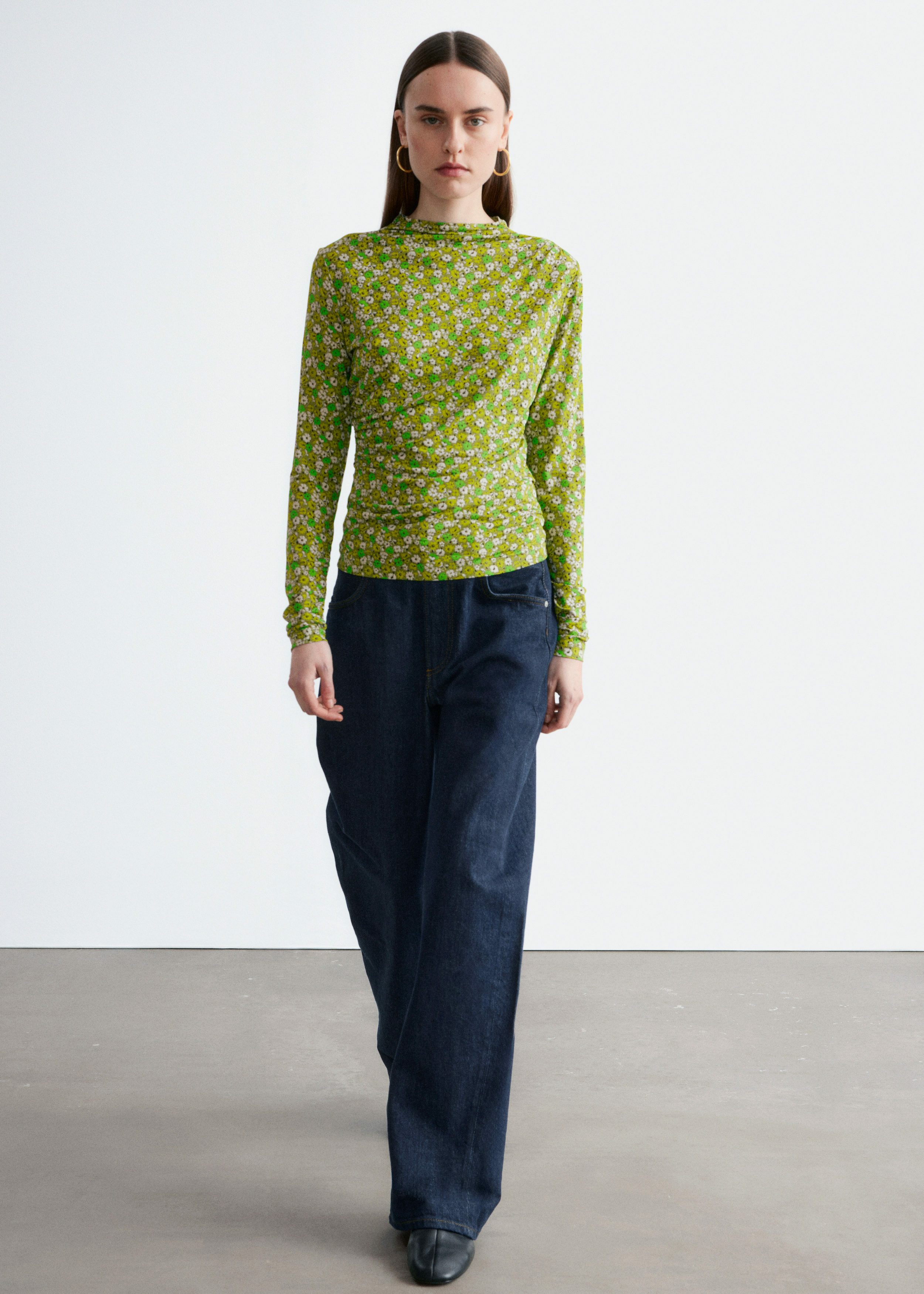 부드러운 저지 소재로 탄생한 롱 슬리브 탑이에요. 섬세한 모크 넥 디자인과 앞면의 은은한 드레이프 룩이 매력적이랍니다.