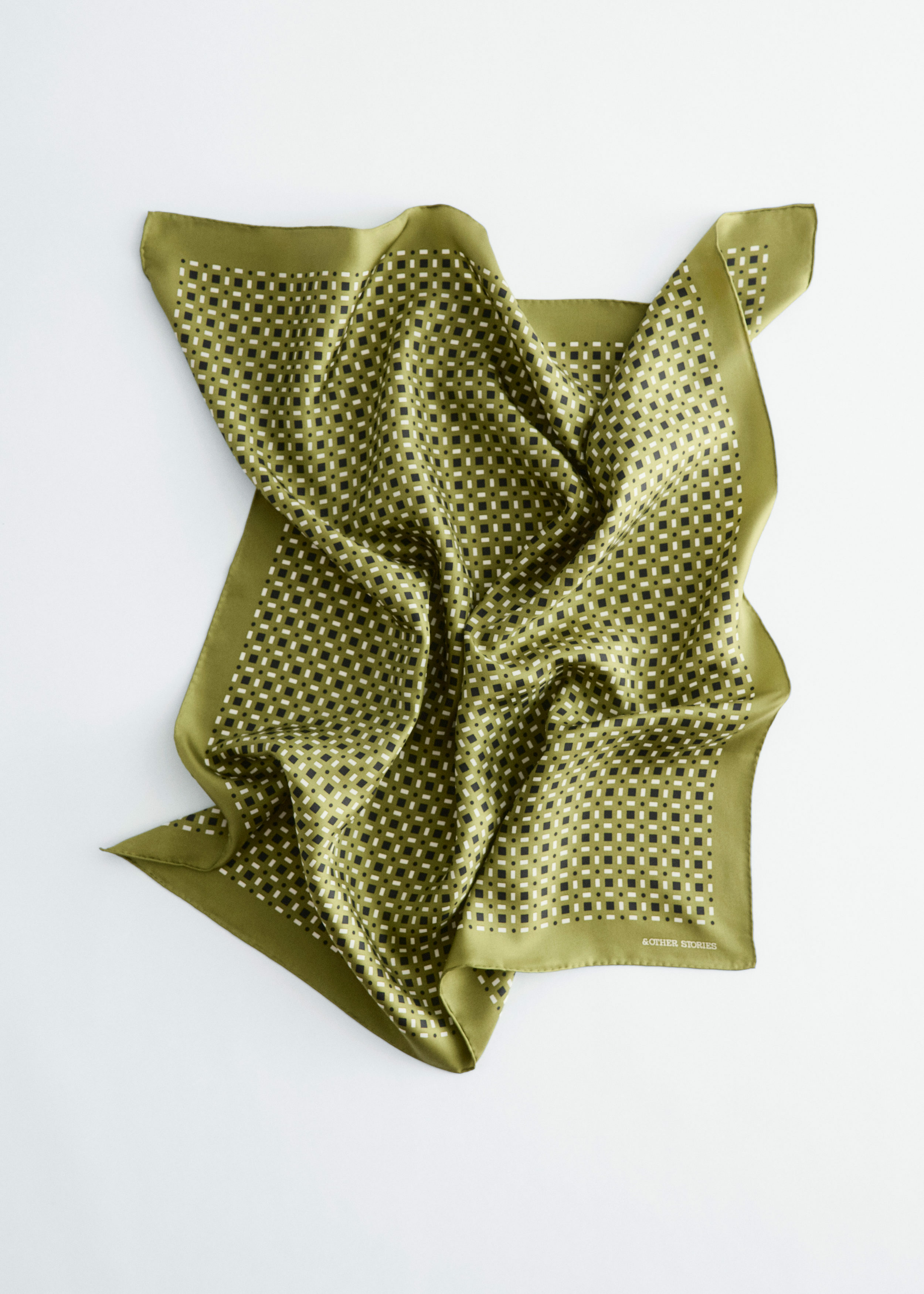 100% 멀베리 실크 소재의 스카프예요. 생동감이 느껴지는 기하학적 패턴이 매력적인 아이템이랍니다. 목에 두르거나 어깨에 걸쳐 연출하거나, 가방에 묶어 스타일링하는 등 다양하게 활용할 수 있어요.
