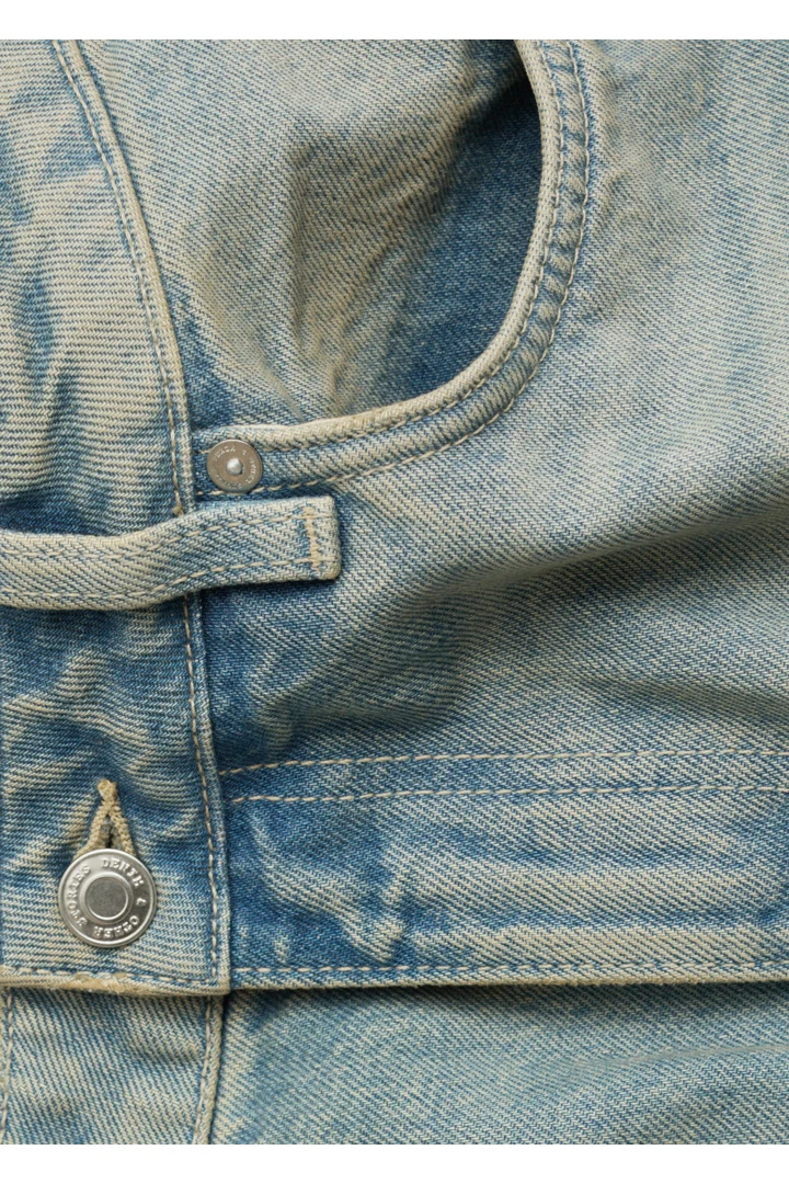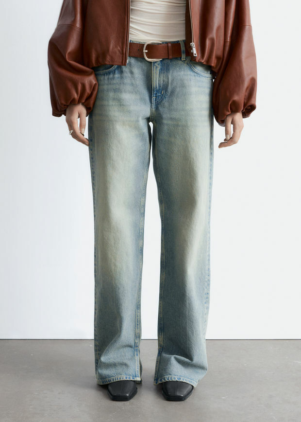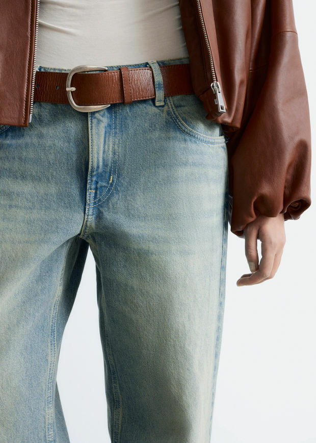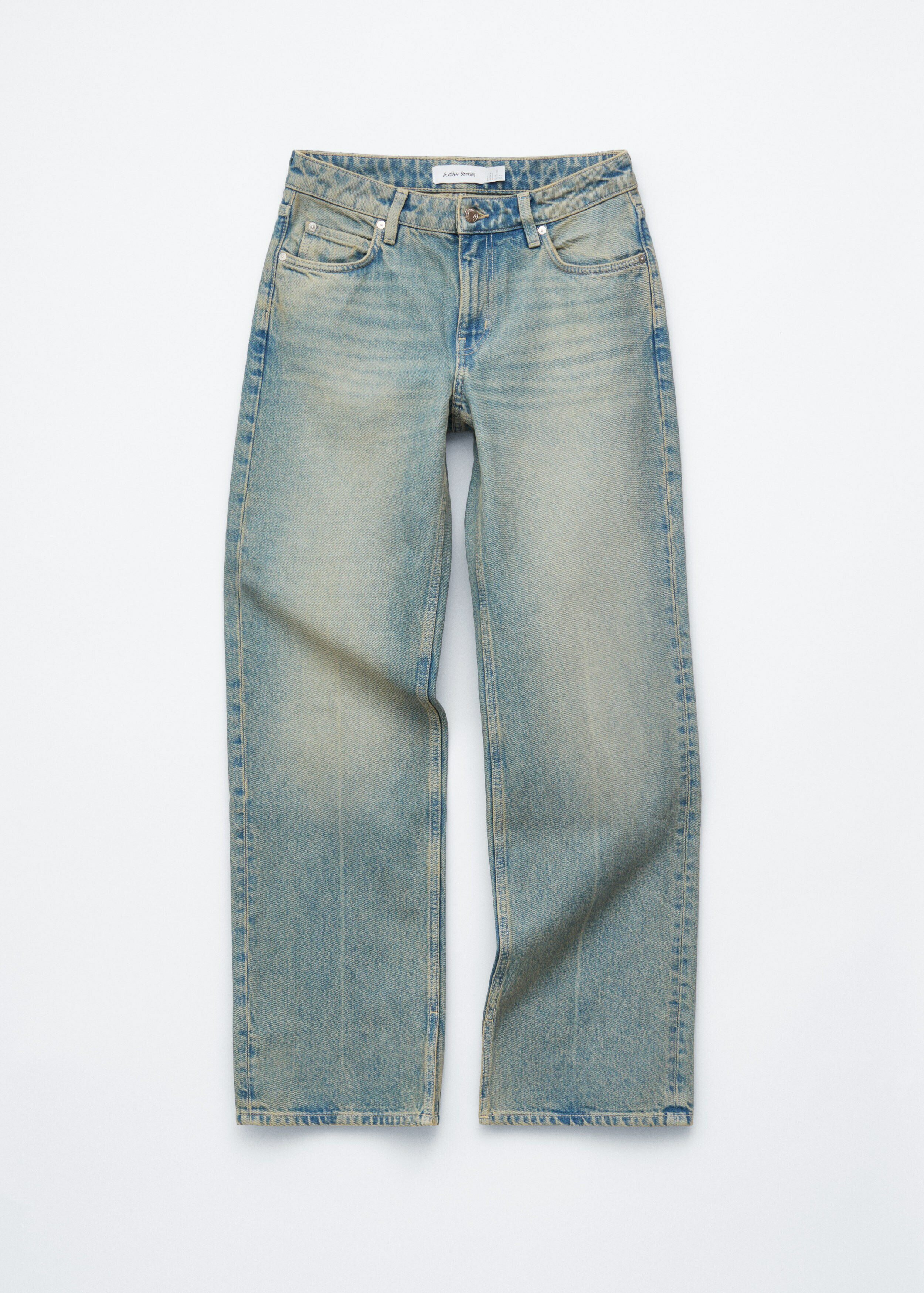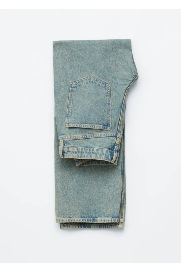 탄탄한 데님 소재로 탄생한 진이에요. 로우 웨이스트, 롱 스트레이트 레그, 클래식한 5 포켓 디자인, 지퍼 플라이와 단추, 벨트 고리가 자리해 있어요.