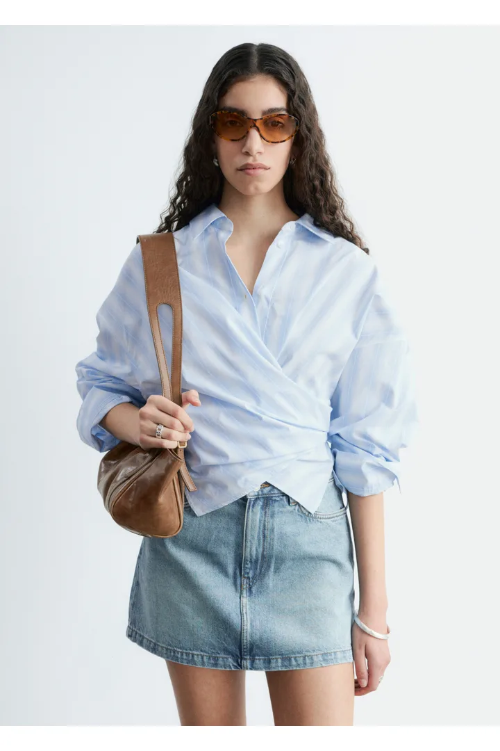 타이 웨이스트 코튼 셔츠